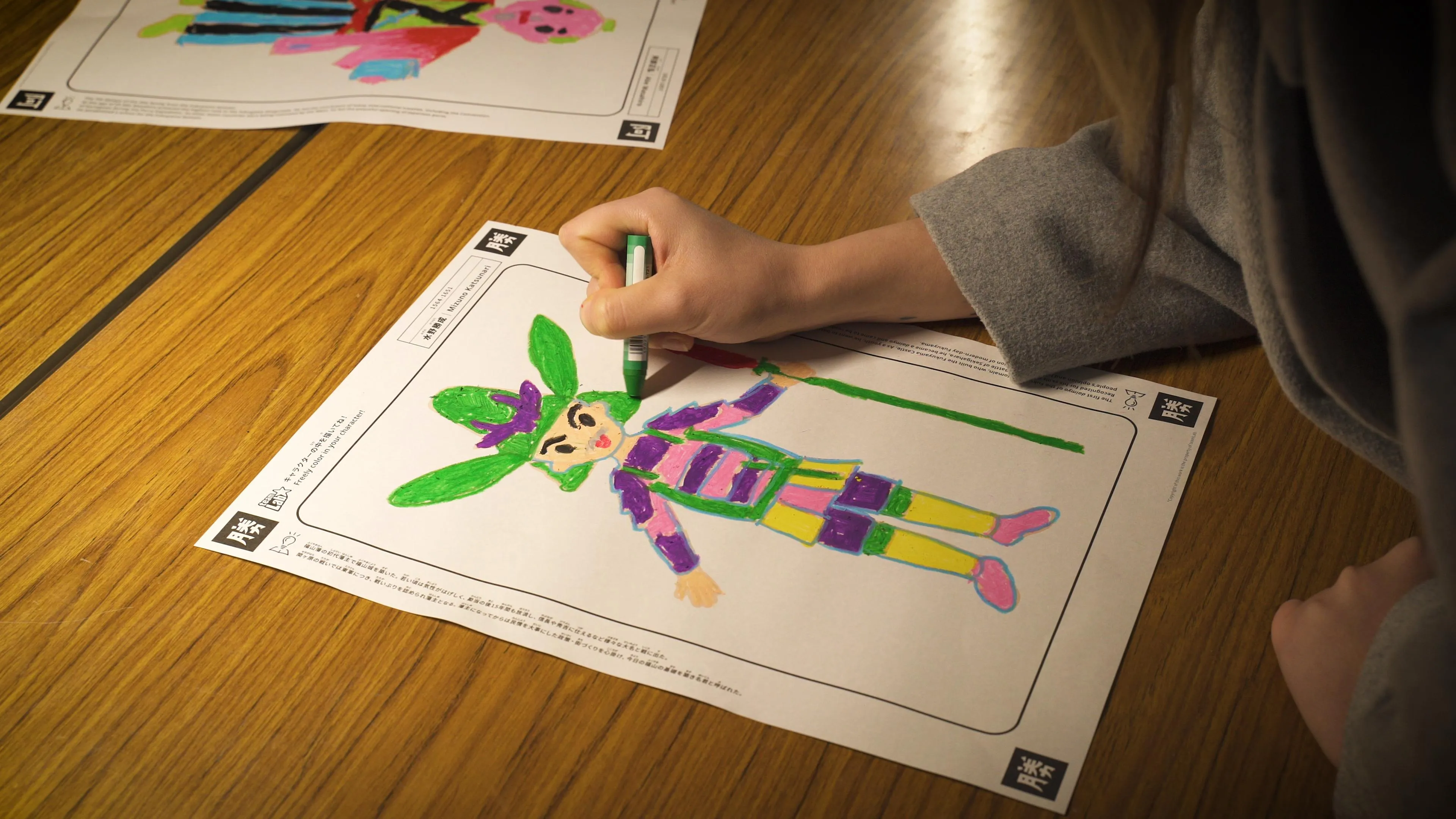 Color in a general on the paper provided, such as Mizuno Katsunari, Oda Nobunaga, Toyotomi Hideyoshi, Kuroda Nagamasa, Tokugawa Ieyasu, Abe Masahiro, Mori Motonari, Mori Terumoto. See the picture you have drawn come to life in the massive park in front of you.