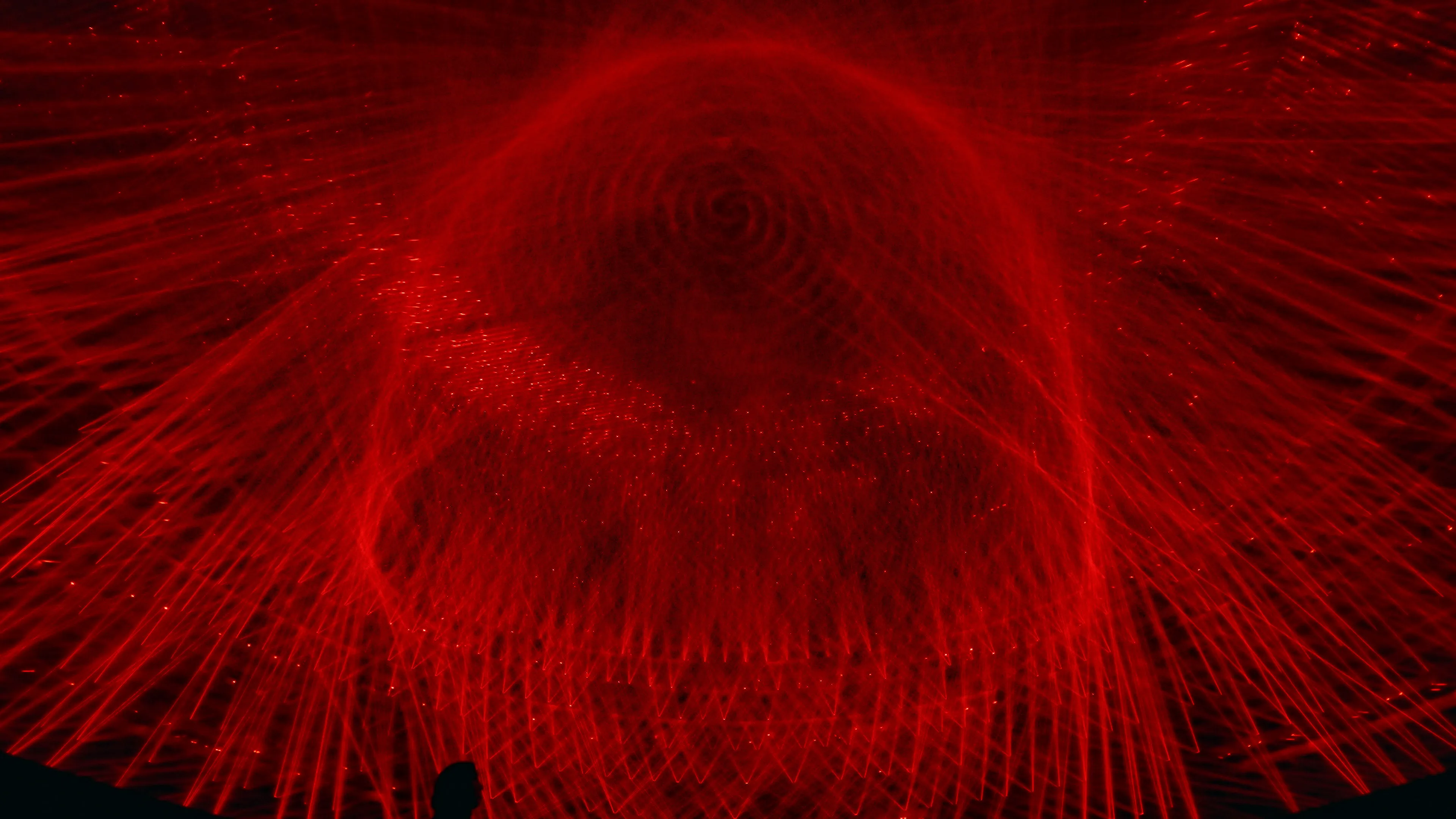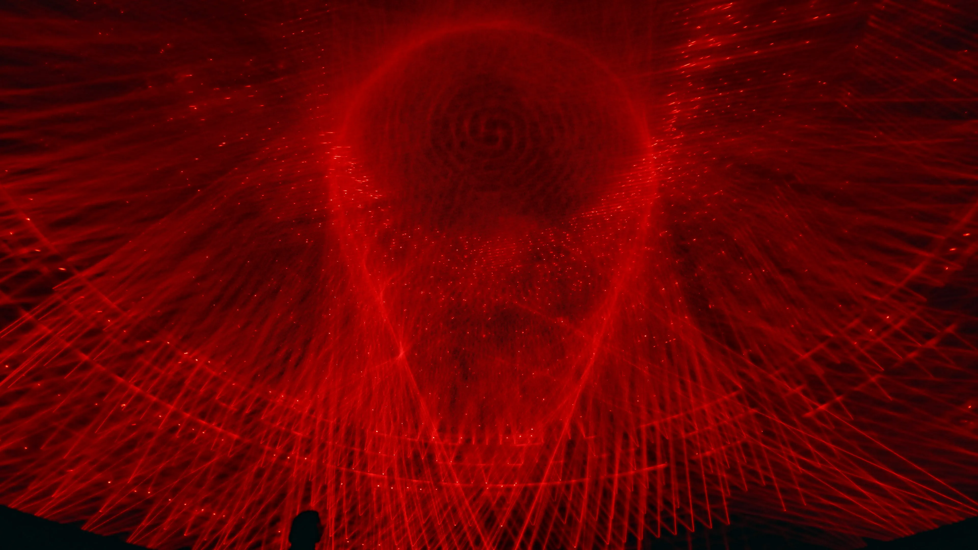 The artworks Light Vortex, Obverse and Reverse, Light Sculpture - Flow, and Absolute Front Torus, can be seen in the same space.