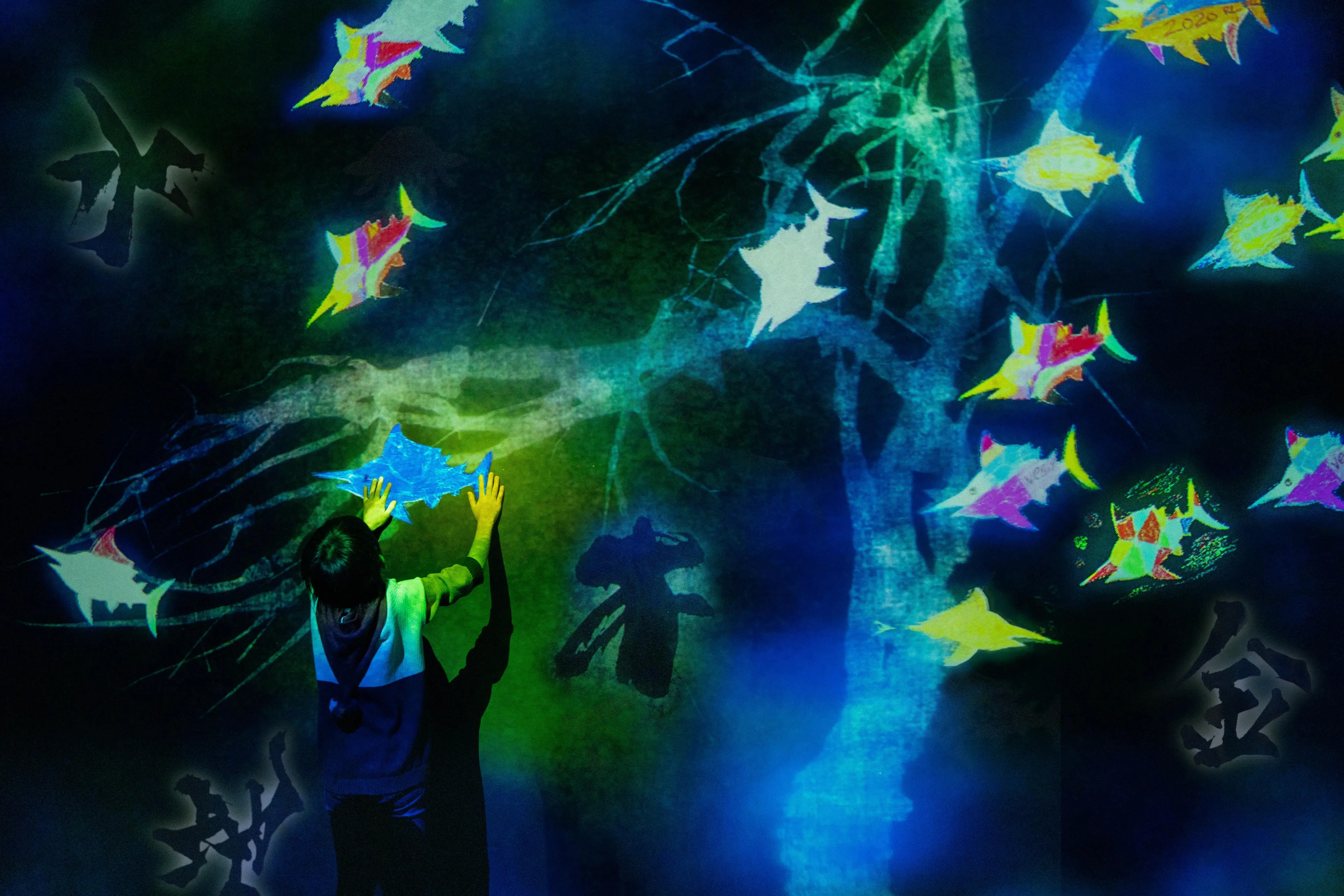 teamLab, 2020-, Interactive Digital Installation, Sound: Hideaki Takahashi, teamLab