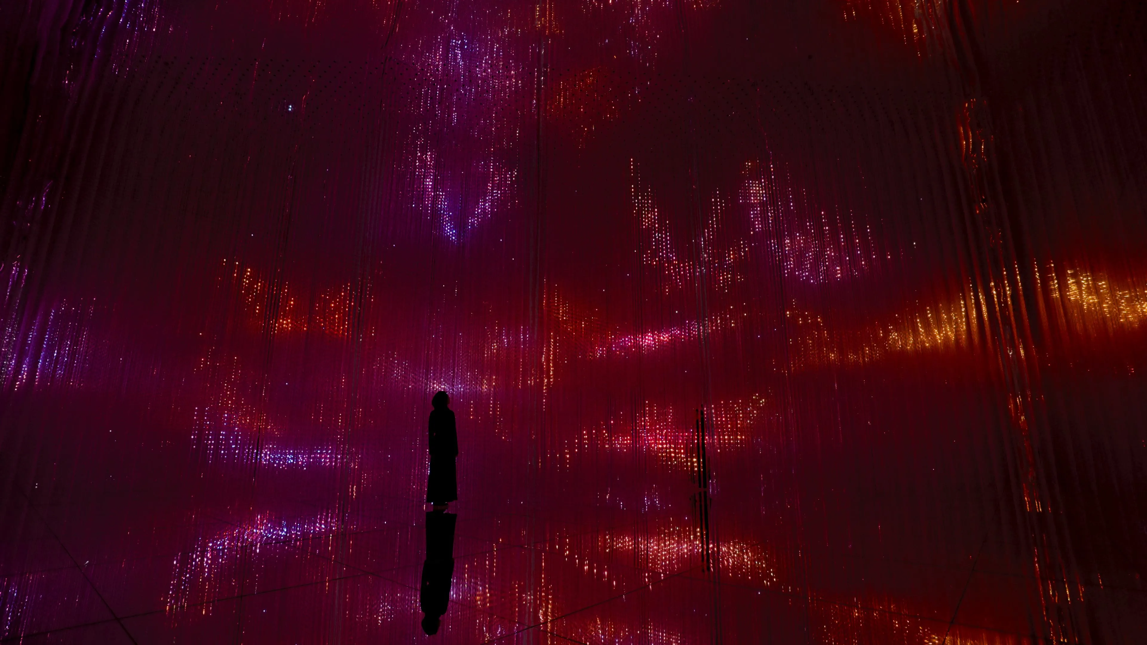 ・The exhibitions contain bright lights that may cause discomfort for people with photosensitive epilepsy, balance disorders, pregnant women or other medical conditions. Visitors suffering from these conditions should consult their physician prior to their museum visit and must assess their comfort level before entering exhibition rooms. Access to the museum remains at the discretion of the individual. Should special assistance be required, we will make ourselves available to take an alternative route, avoiding installations that might cause problems.