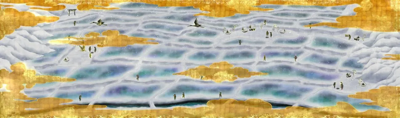 The scenery of Tashibunosho has been unchanged for thousands of years, and likewise the scenery of the artwork will continue in perpetuity largely unchanged. But just as the natural landscape is never exactly the same, even though it looks similar, the artwork will look different if looked at the following year. The appearance of the artwork at this moment exists only now; you will never be able to see it again. A new landscape is constantly being created.