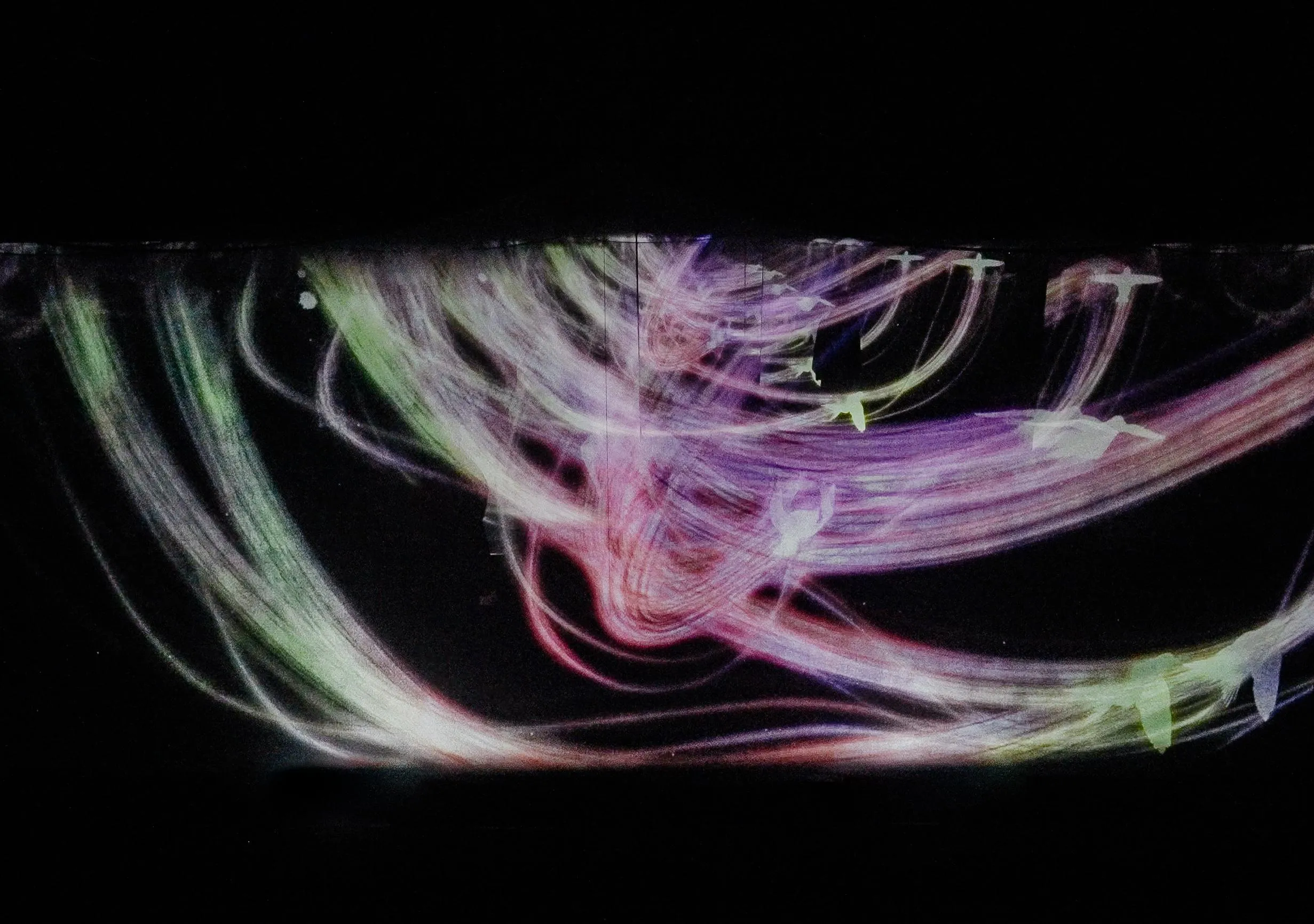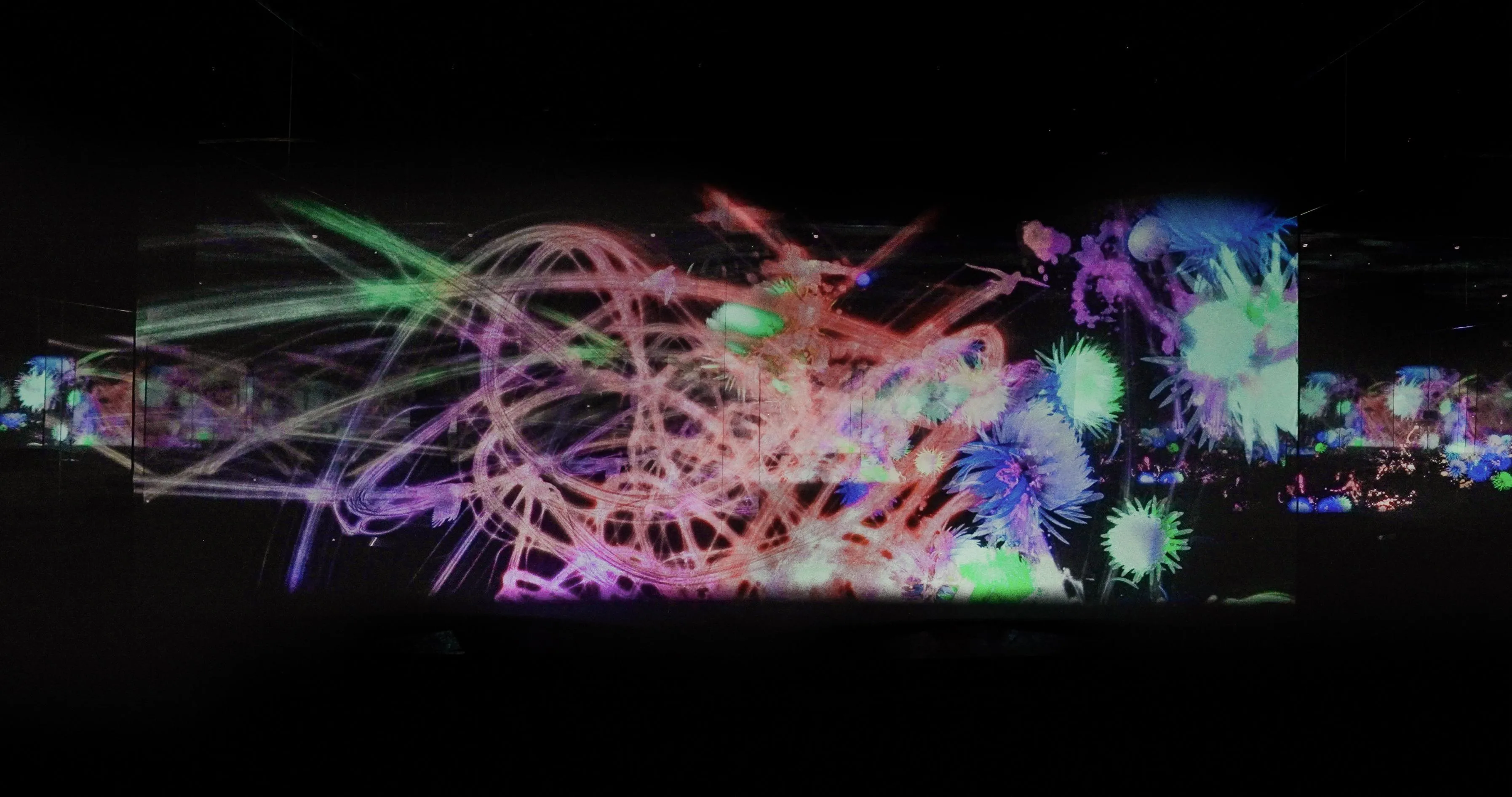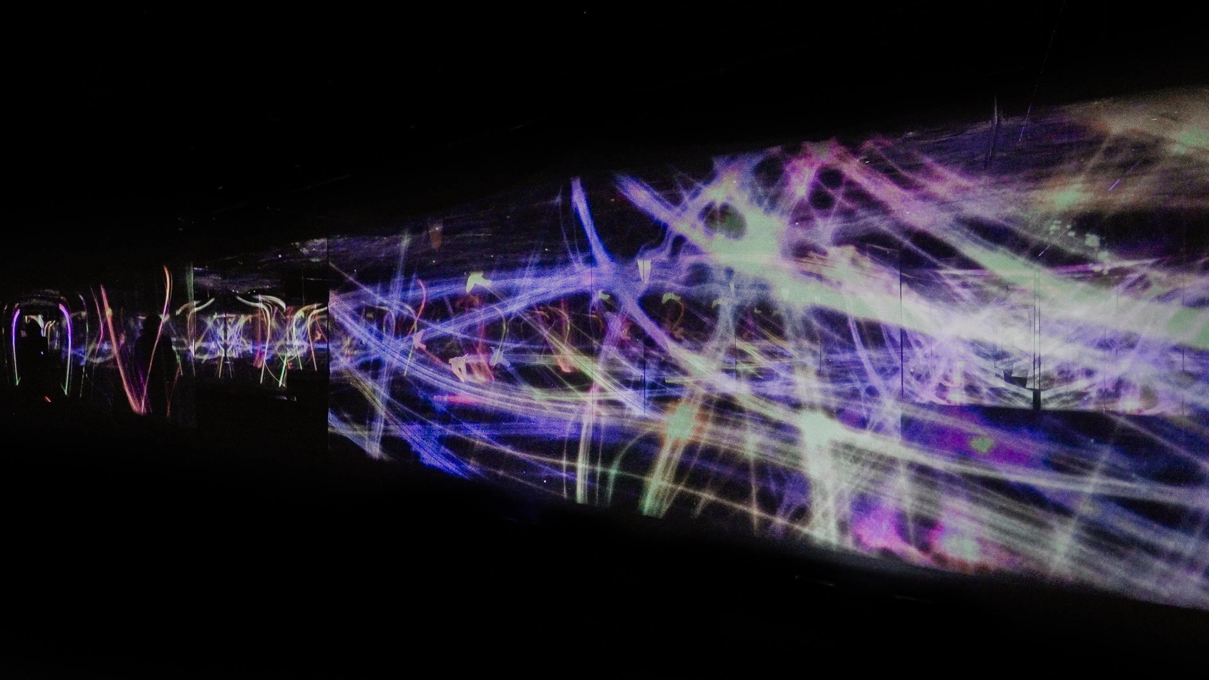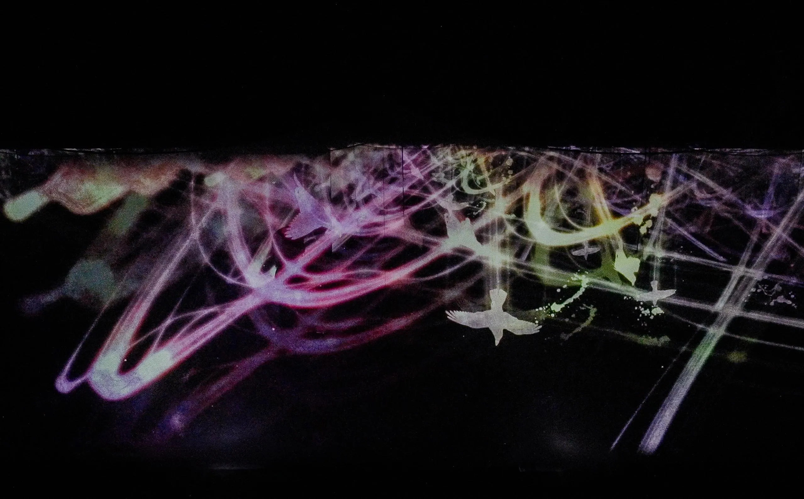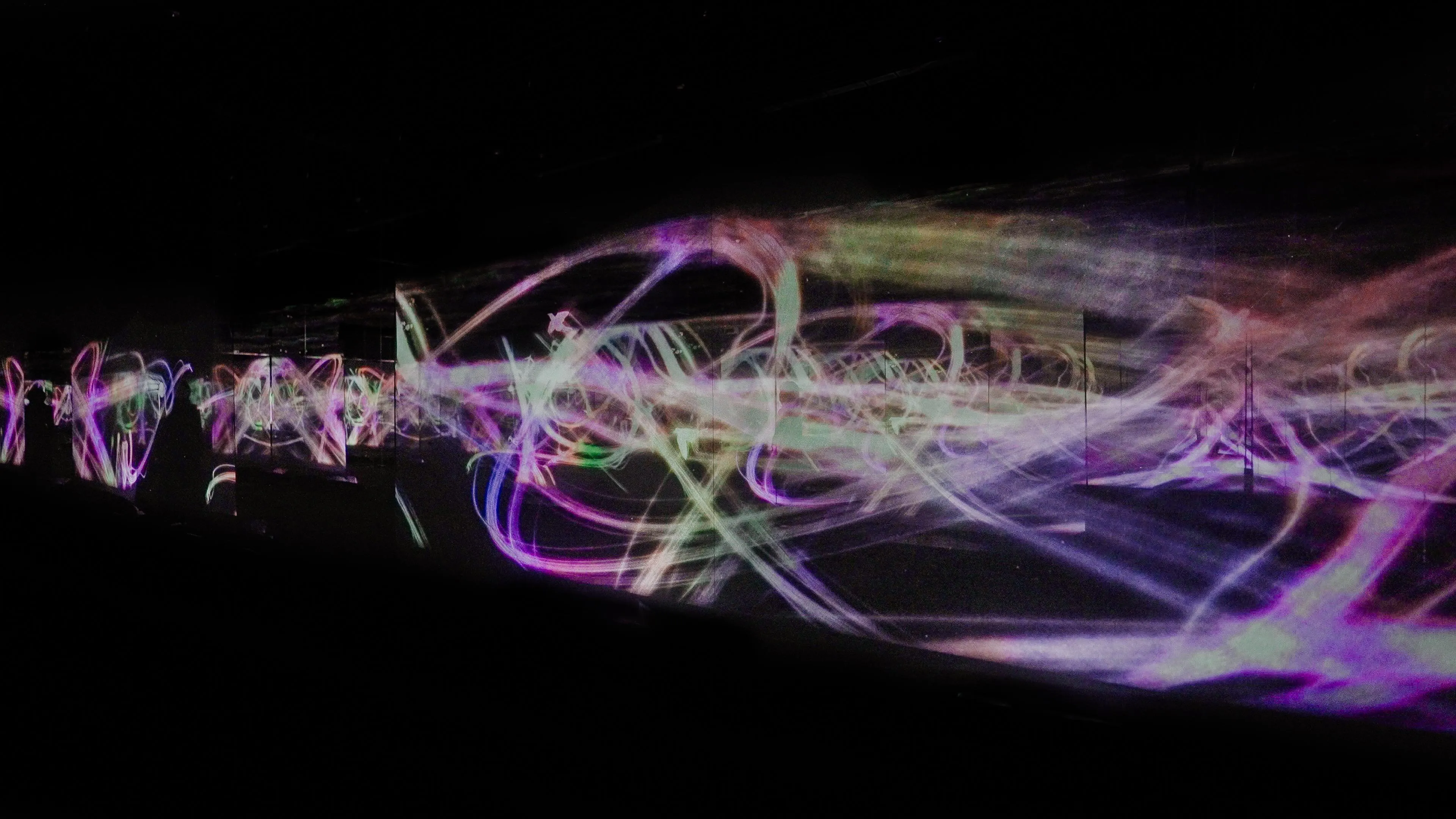 teamLab, 2018-, from the series Crows are chased and the chasing crows are destined to be chased as well, Division in Perspective – Light in Dark, 2014-, Installation, 4min 20sec, Sound: Hideaki Takahashi