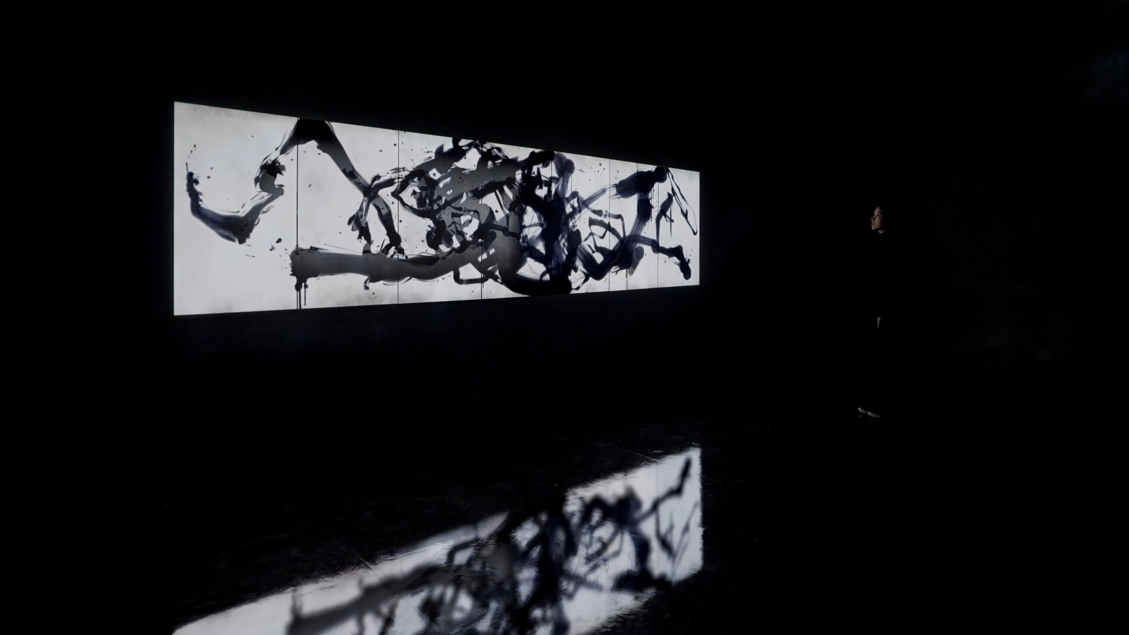 Spatial Calligraphy is a form of calligraphy drawn in space that teamLab has been exploring since it was founded. The artwork reconstructs calligraphy in three dimensional space to express the depth, speed and power of the brush stroke, and that calligraphy is then flattened using the logical structure of space that teamLab calls Ultrasubjective Space. The calligraphy shifts between two and three dimensions.
