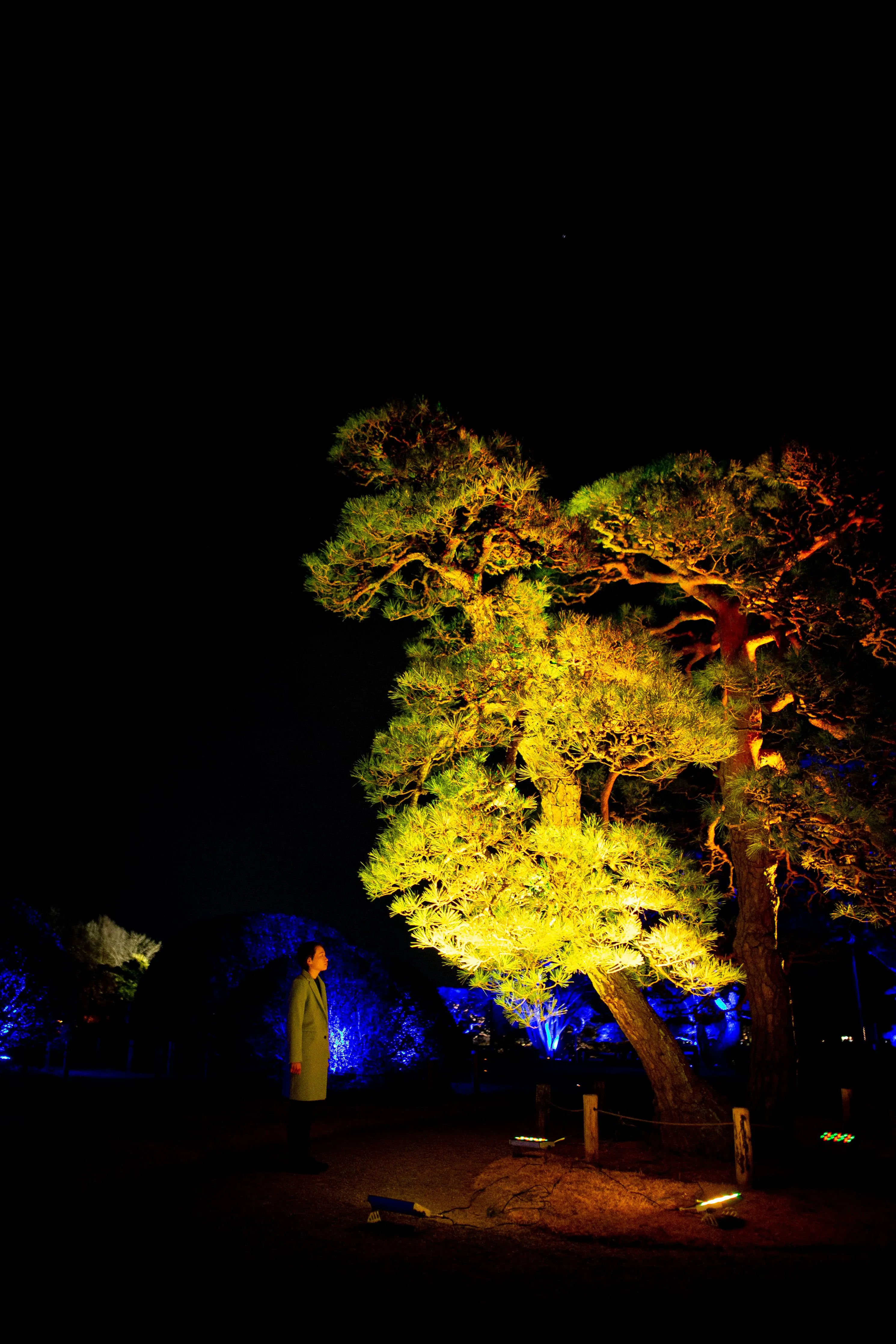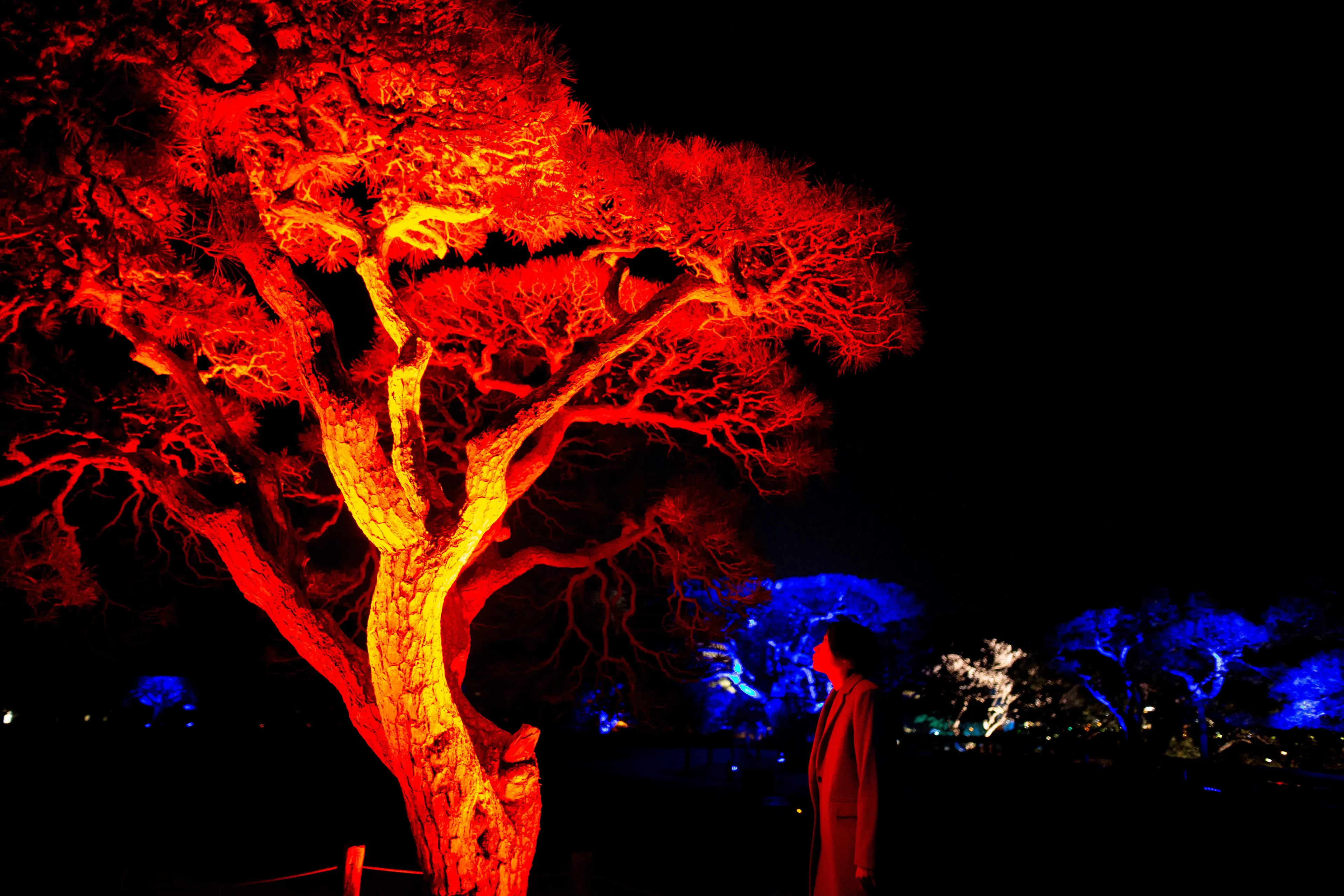 When people approach and stand still near the trees, the light changes color, and a tone specific to that color resonates out. The light of the tree radiates outward and is transmitted to the surrounding trees one by one, as the sound is continuously emitted. If a wave of light comes from the other side, it signifies the presence of people there. People gain a heightened sense of awareness of the existence of other people in the same space.