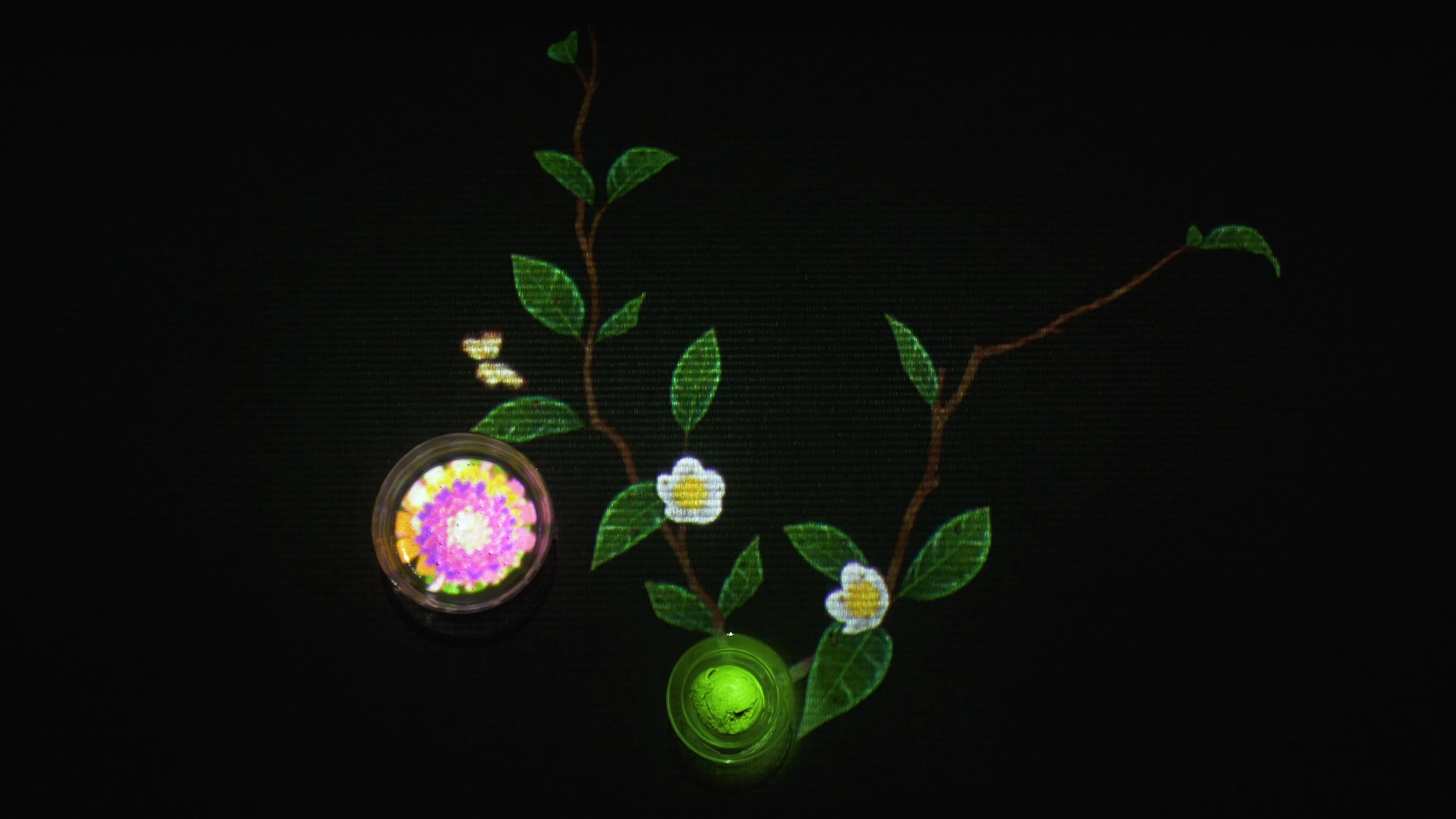 Butterflies are born from the tea branches. These butterflies fly to the flowers blooming inside people’s teacups.