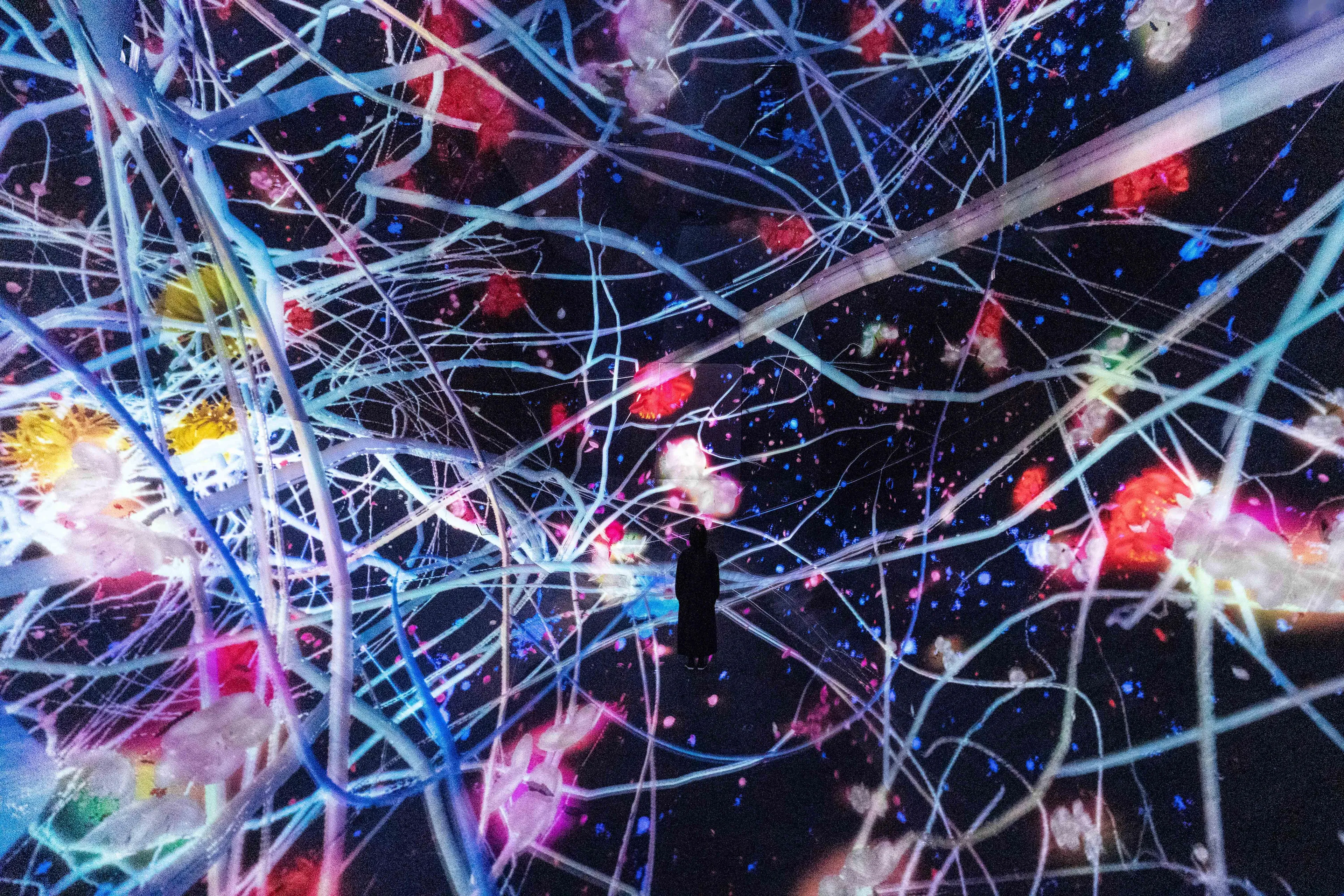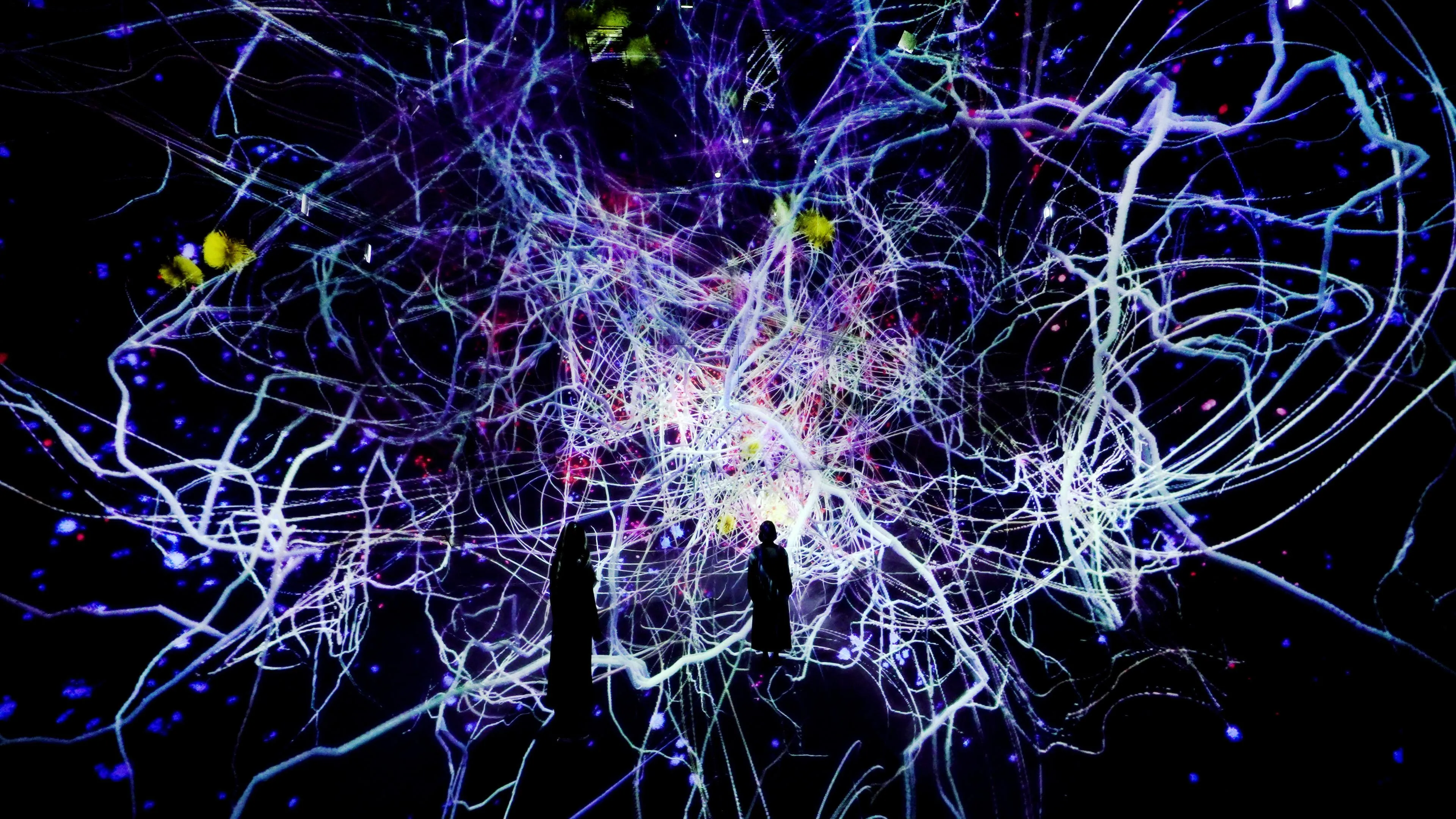 When people enter the artwork space, the artwork becomes one with the people and begins to move. Traces form in front of the people from their feet, eventually creating a single, long line as the artwork space and people move together as one. The world of the artwork transcends physical space, and the boundaries between people and the artwork world disappear.