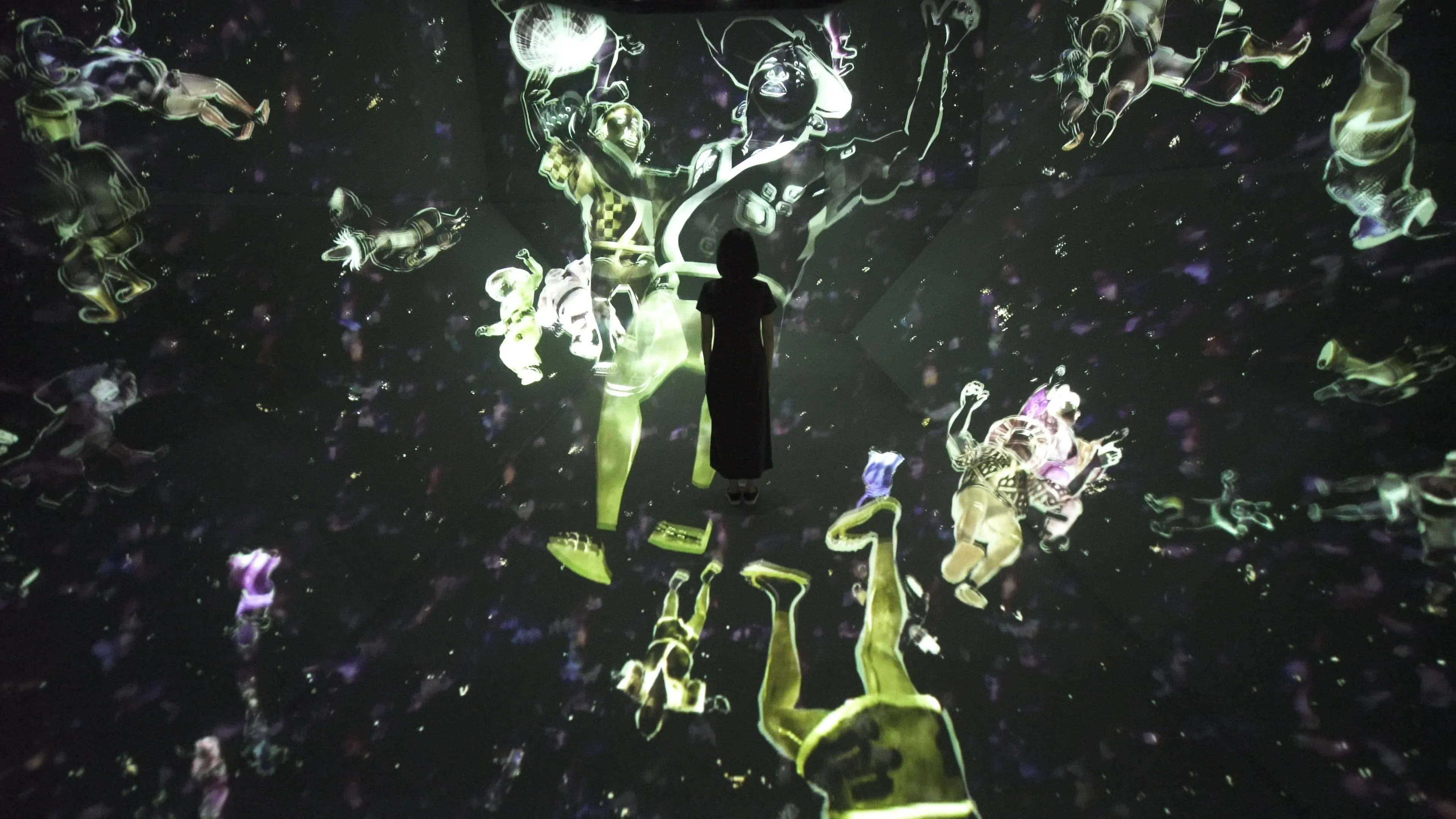 The work begins when the figures of Walk, Walk, Walk enter the Cosmic Void. The work ends when the figures leave the space and disappear.