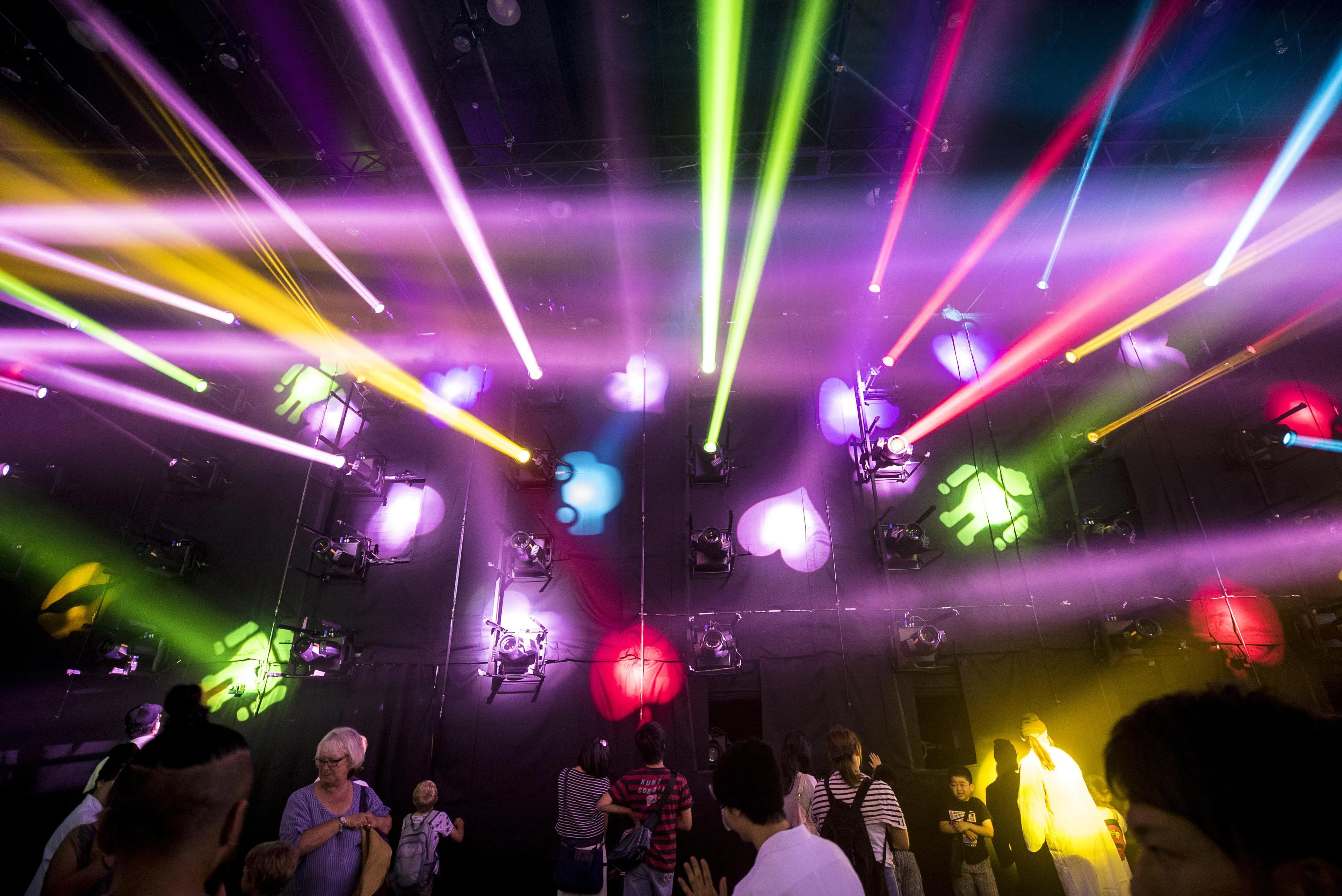In making things that combines science, technology, design and art, one of the IT companies most notable in Japan now for doing so is teamLab. “Learn! Amusement Park of the Future”, a project created by them for children, was held in various parts of Japan, garnering rave reviews. In this project, children are encouraged to move their bodies in front of the latest technology-leading device to experience the creation of an art space. Sketch Aquarium is one representative attraction of the project.Against the wall of a dim hall is an undersea world of swaying seaweeds and beautiful coral reef. Paper drawings of sharks, jellyfish, and squids, among others are prepared for them to use crayons to colour as they wish. By scanning their works, the creatures that they have just designed will start to appear in the sea on the wall, swimming around freely. The fish respond to touches and it is possible to make them change their swimming direction and feed them. Besides the children, the accompanying adults also become engrossed, colouring the fish themselves, pointing to them and teaching after they are scanned in, enjoying each other’s works, and so forth, making the scene bustle with life. A never before seen virtual aquarium filled with colourful fish swimming has finally appeared.