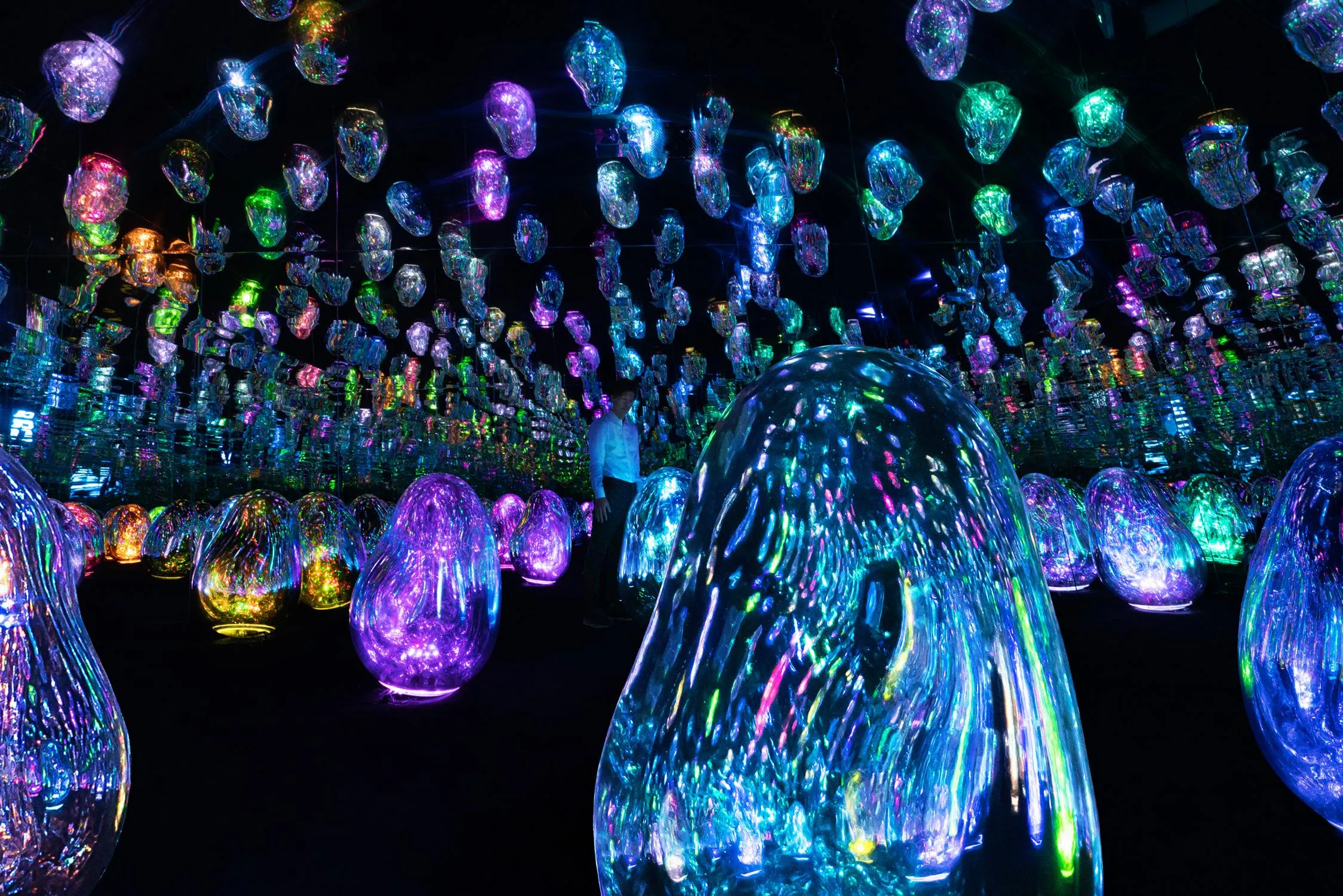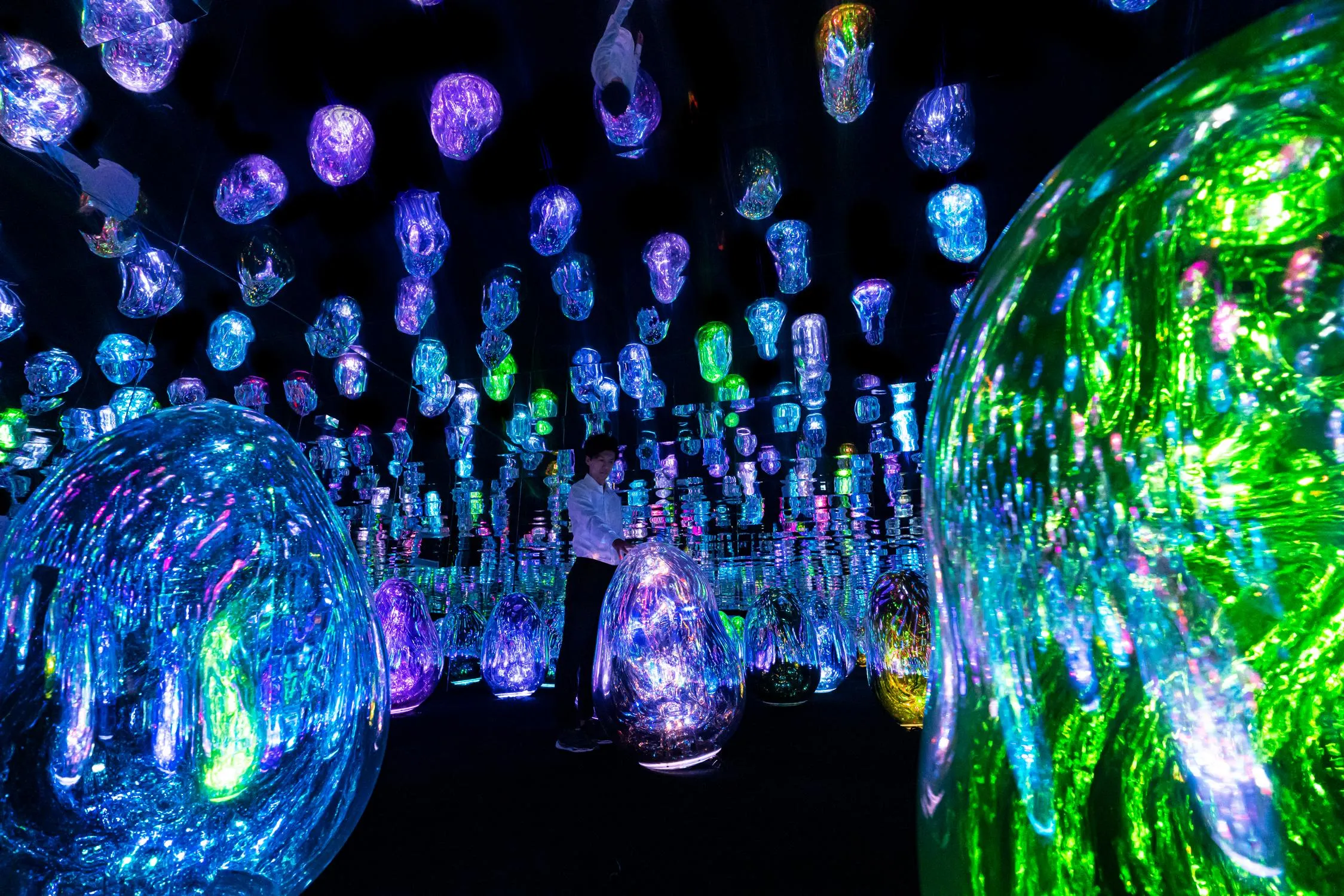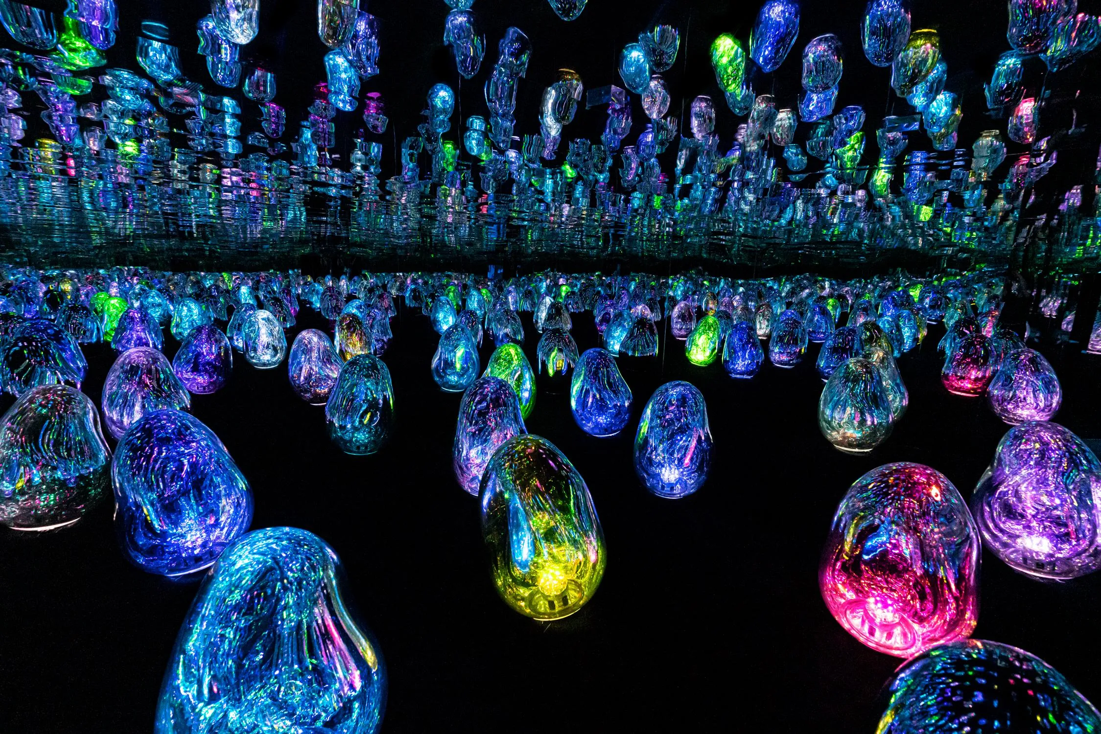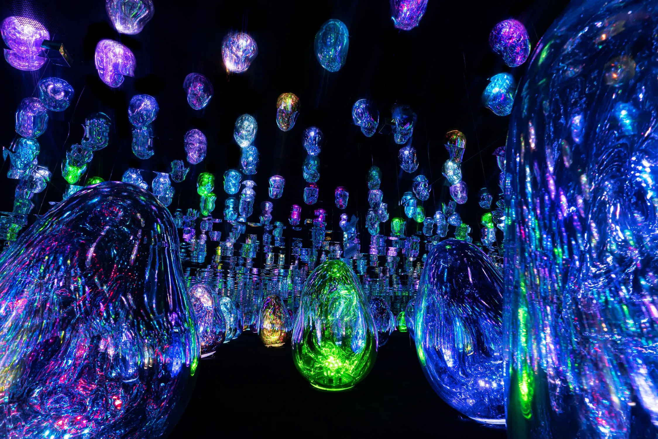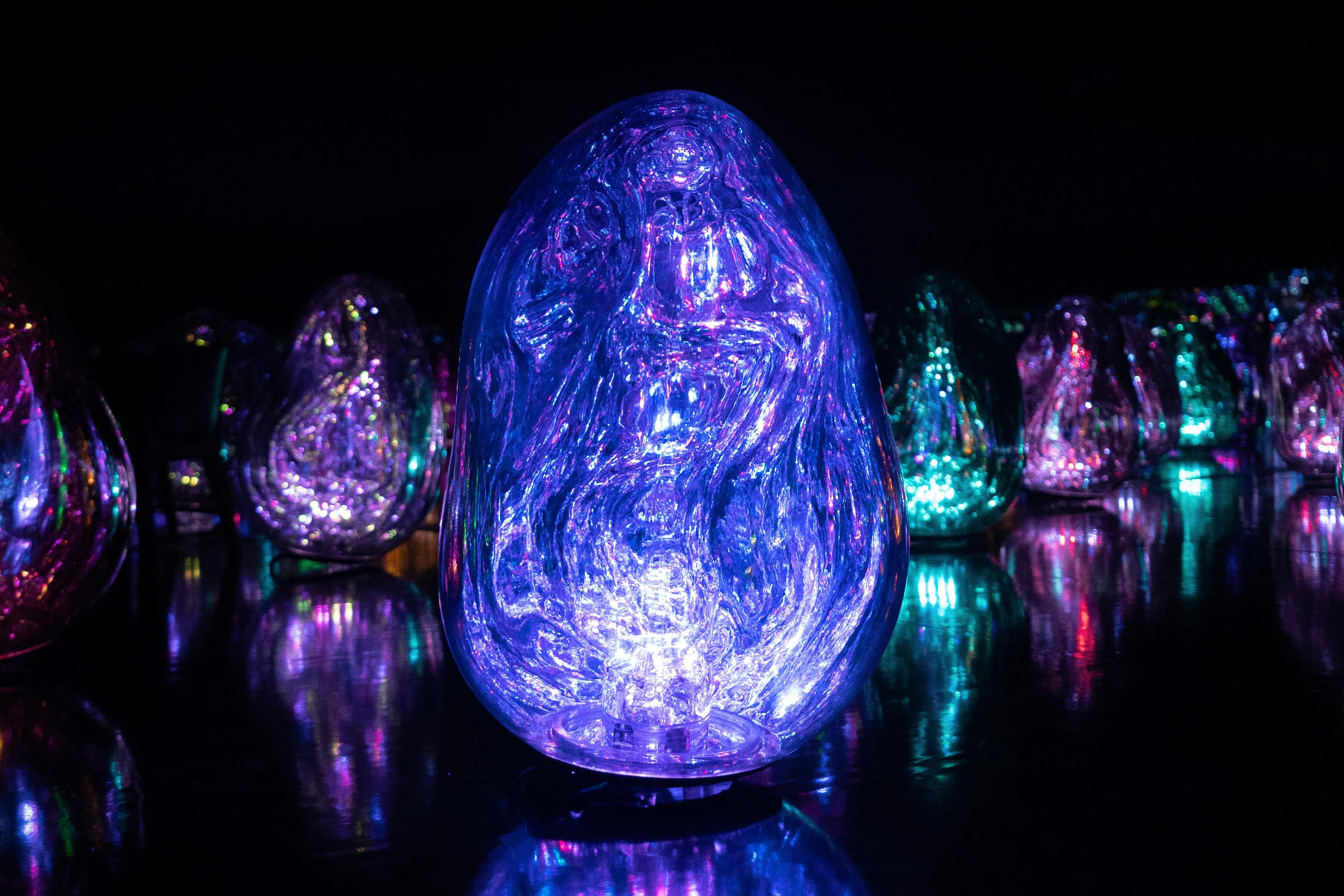teamLab is experimenting with the concept of color. The ovoids can change into a total of 61 newly-defined Solidified Light Colors.