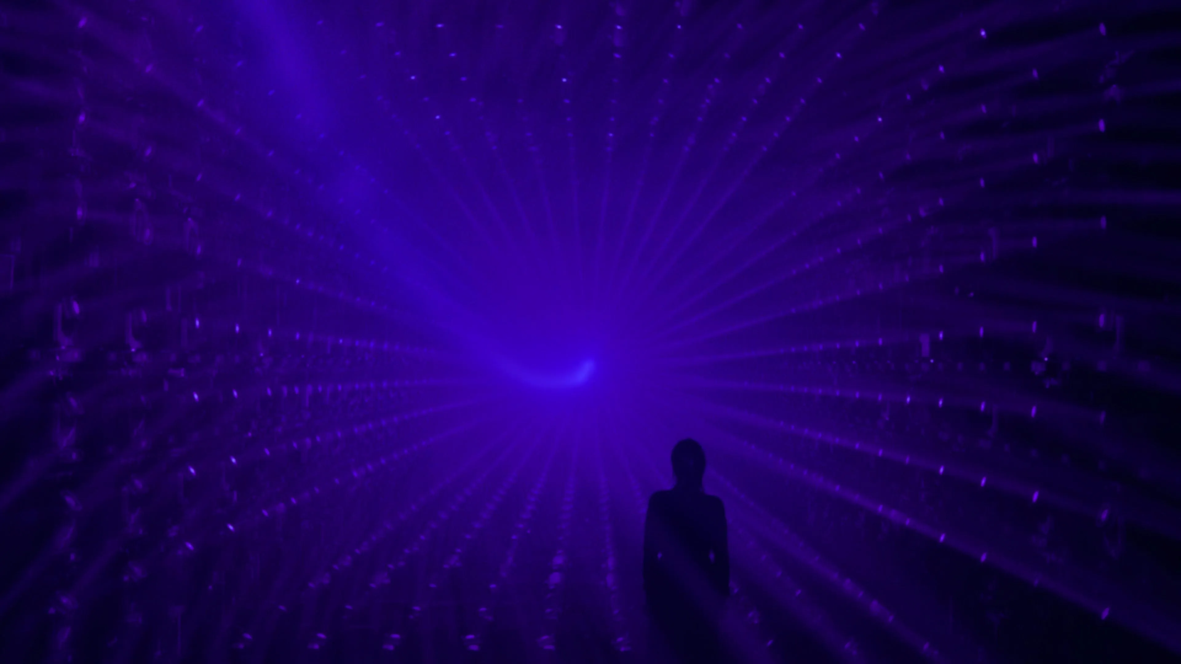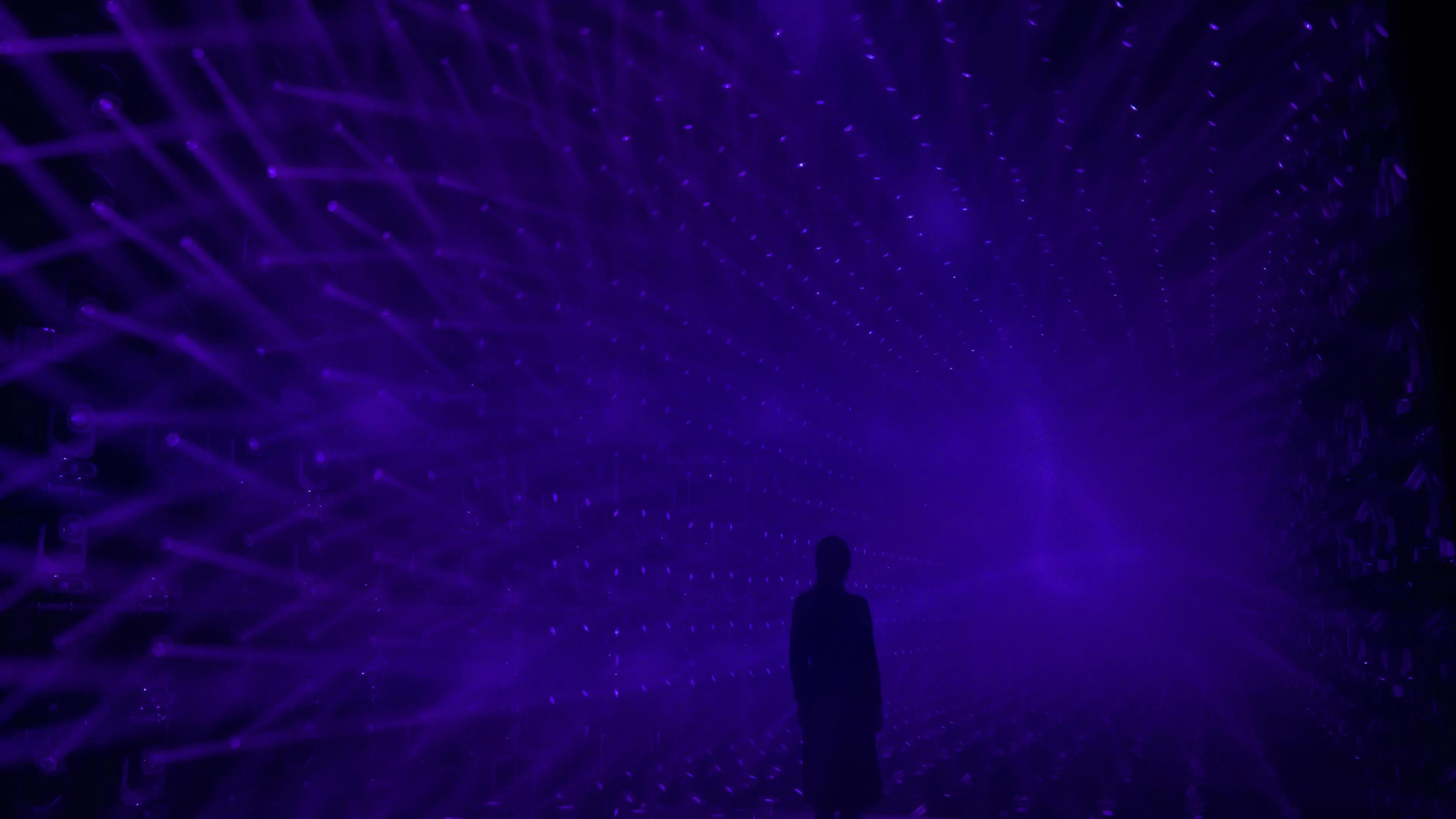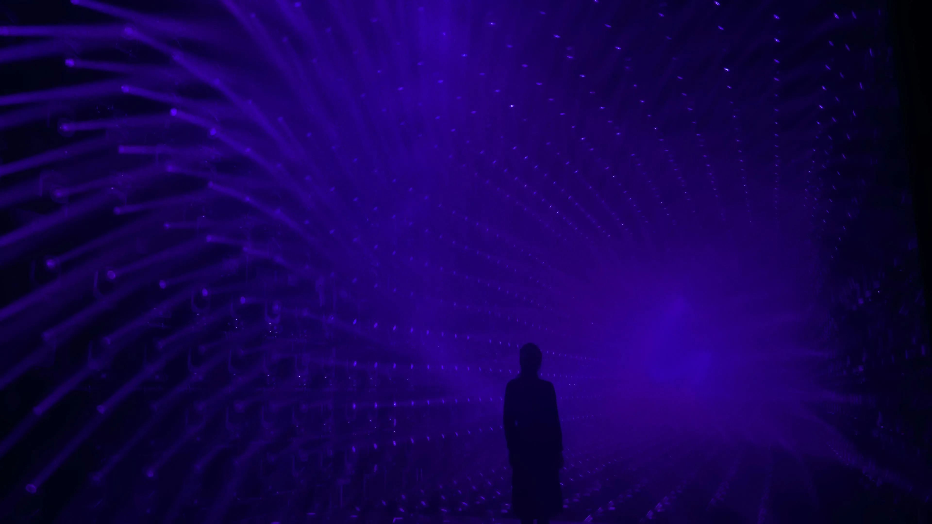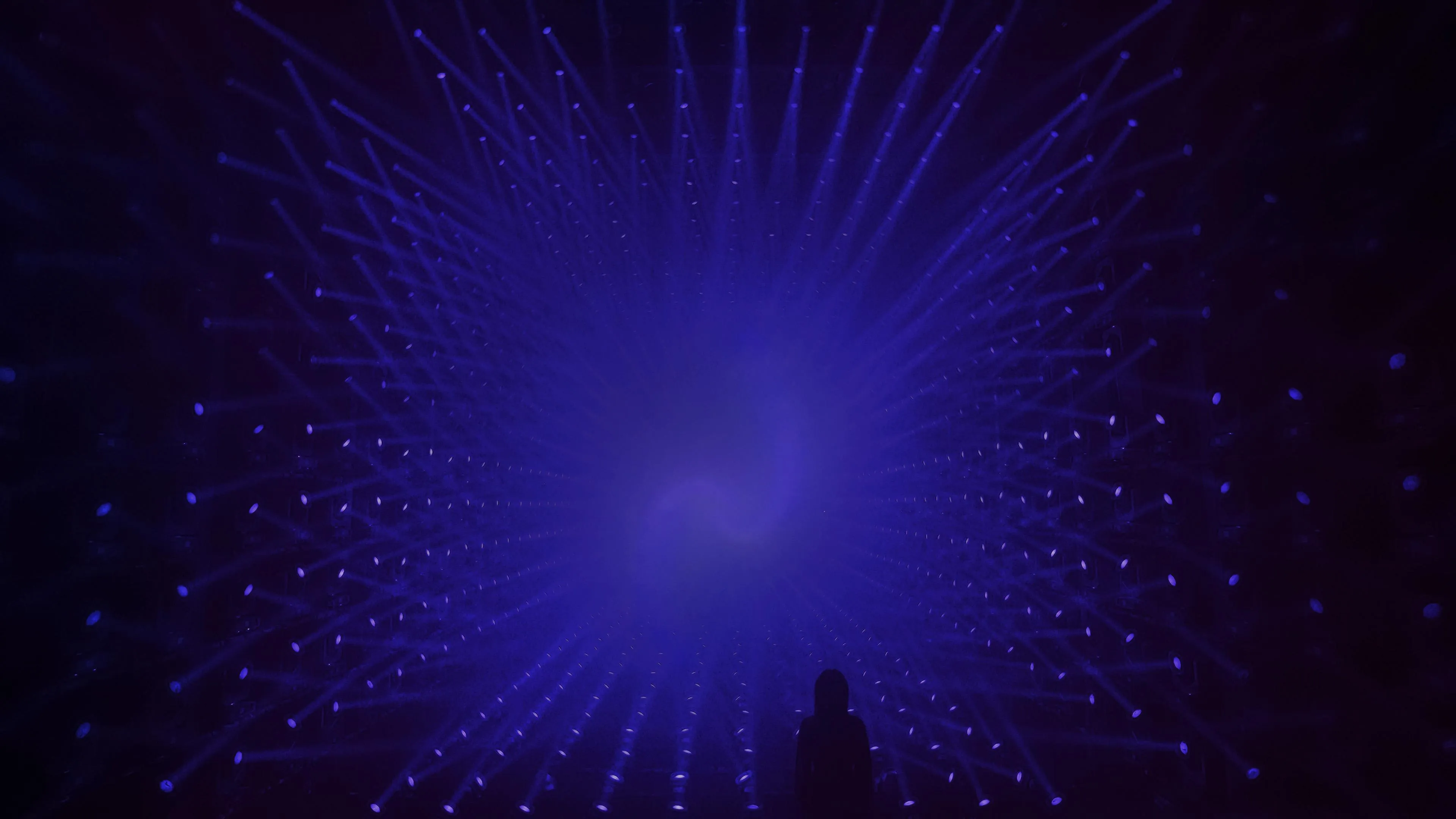 A sculpture made of ordered light that continues to flow outward.