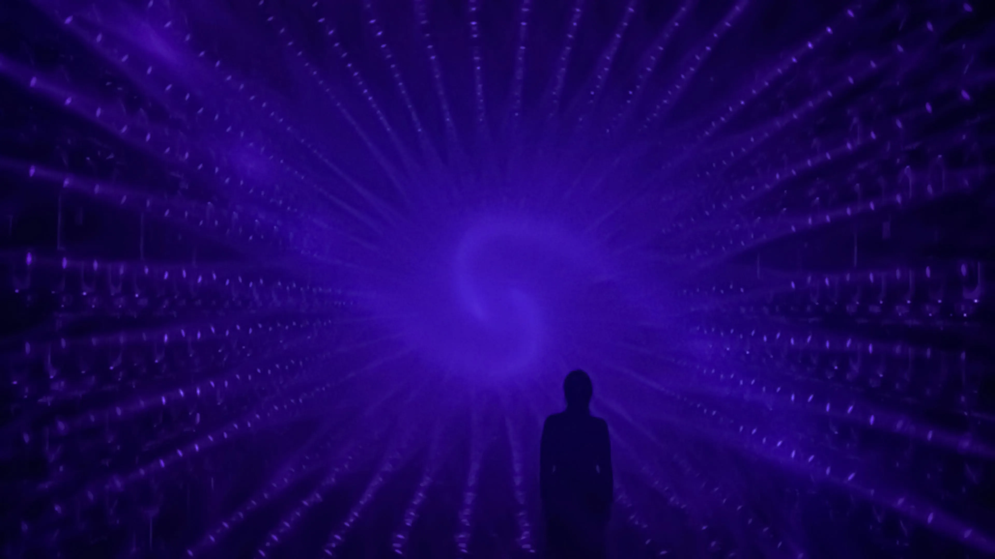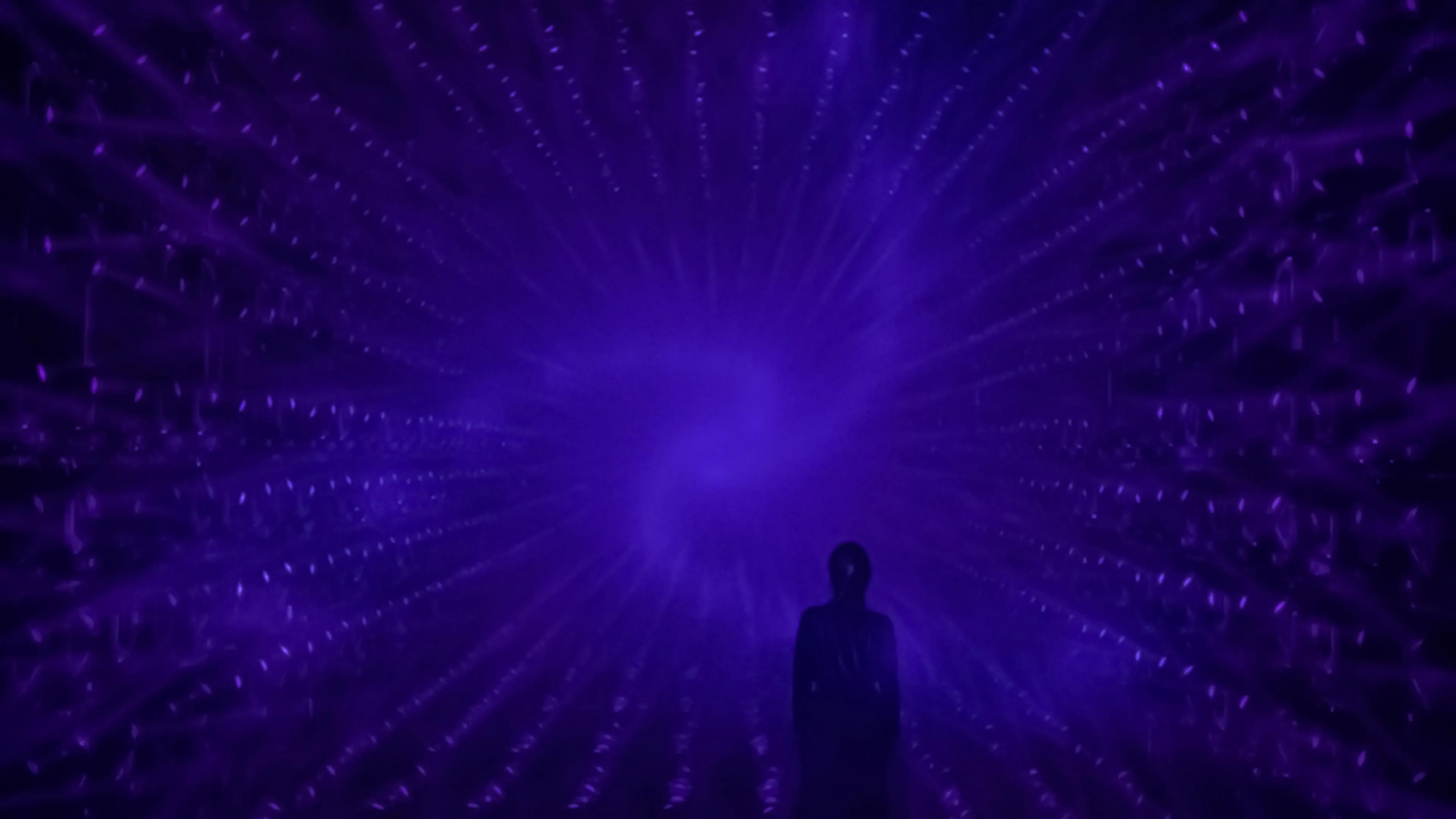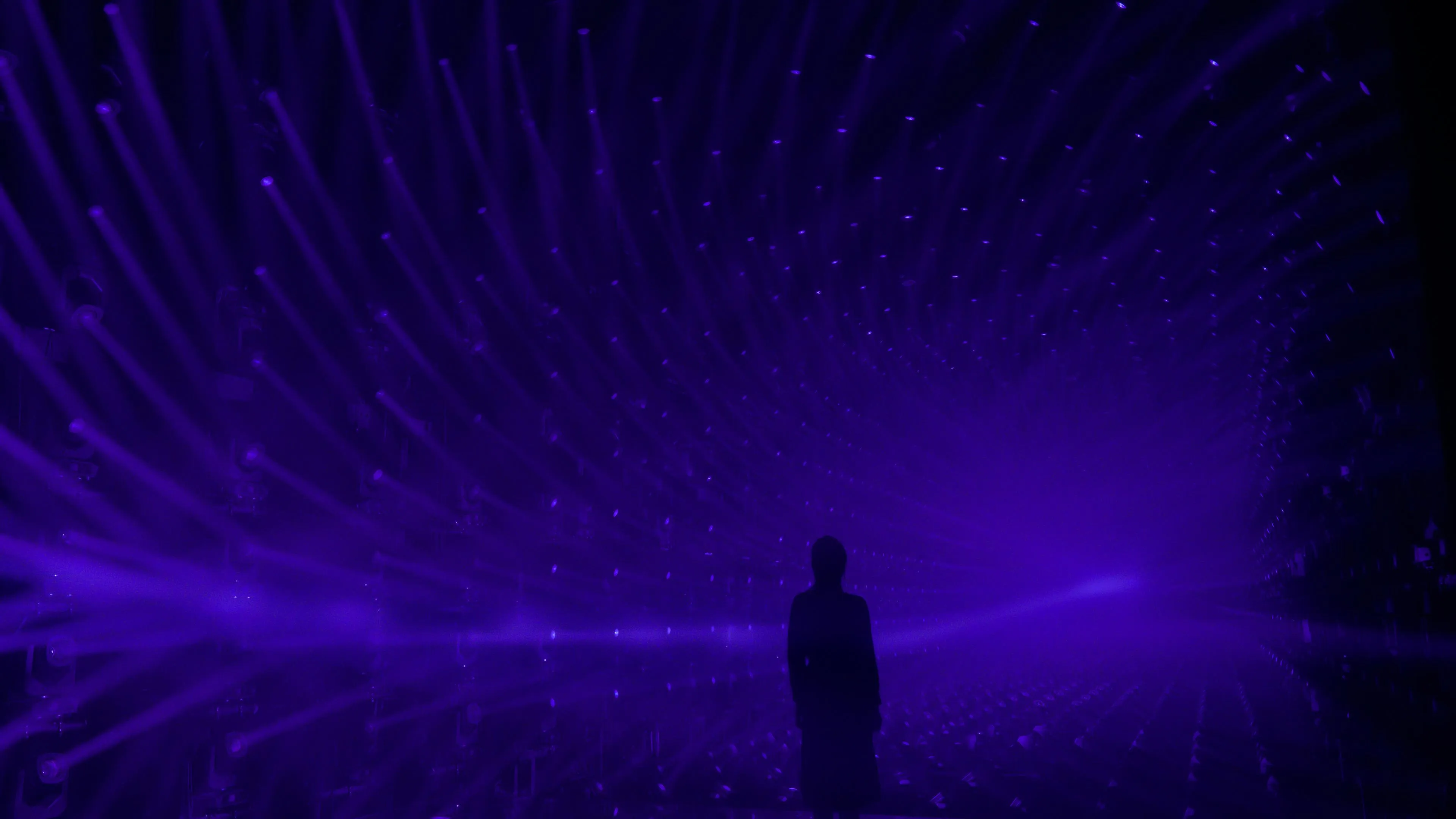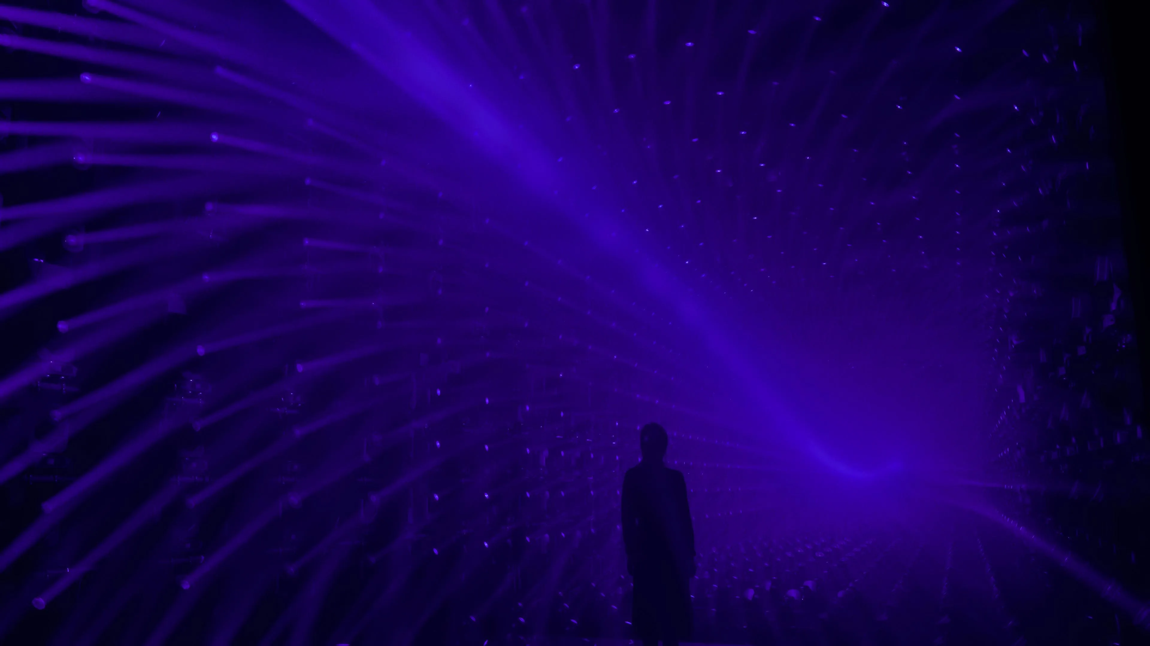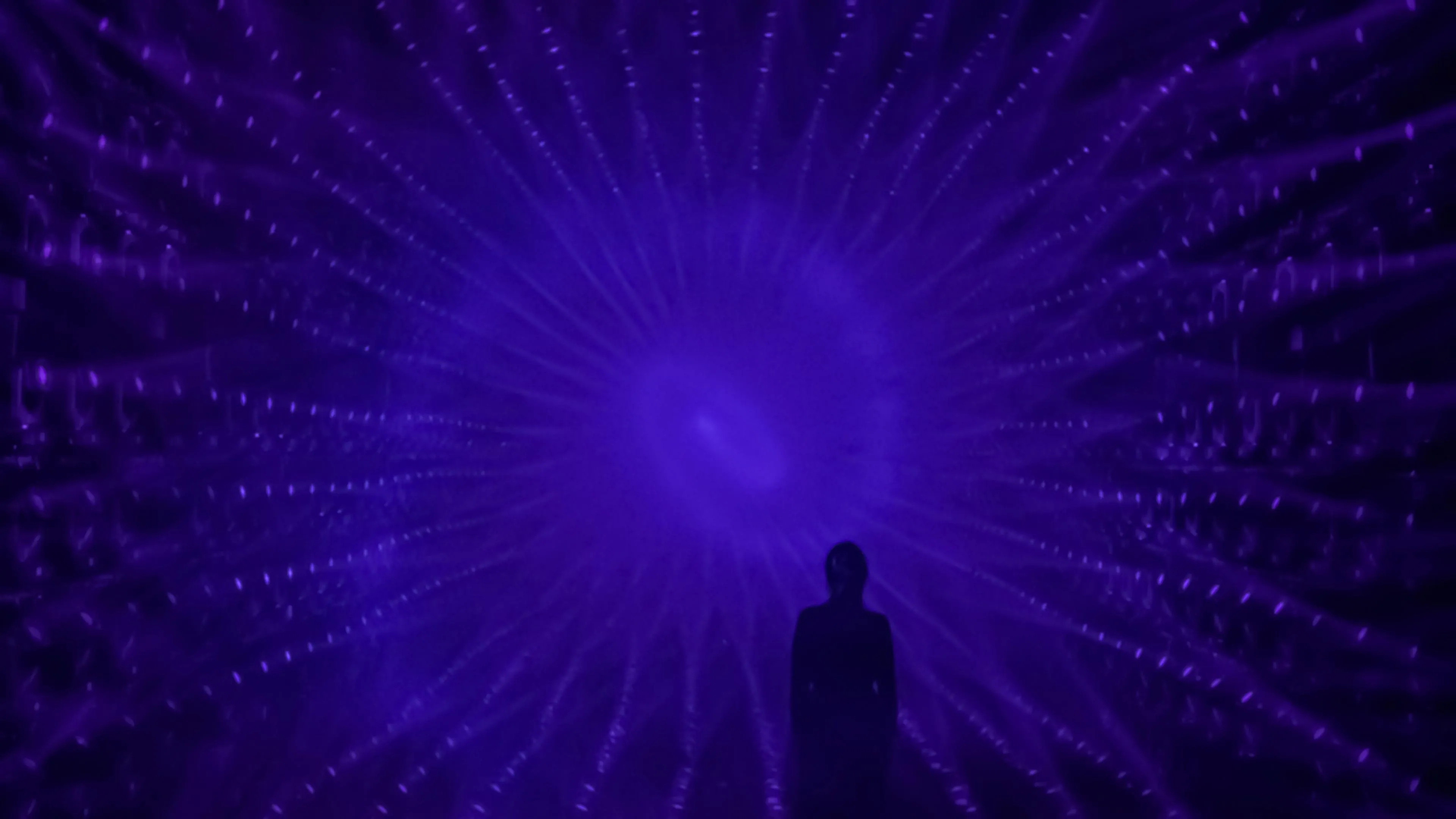 A sculpture made of ordered light that continues to flow outward.