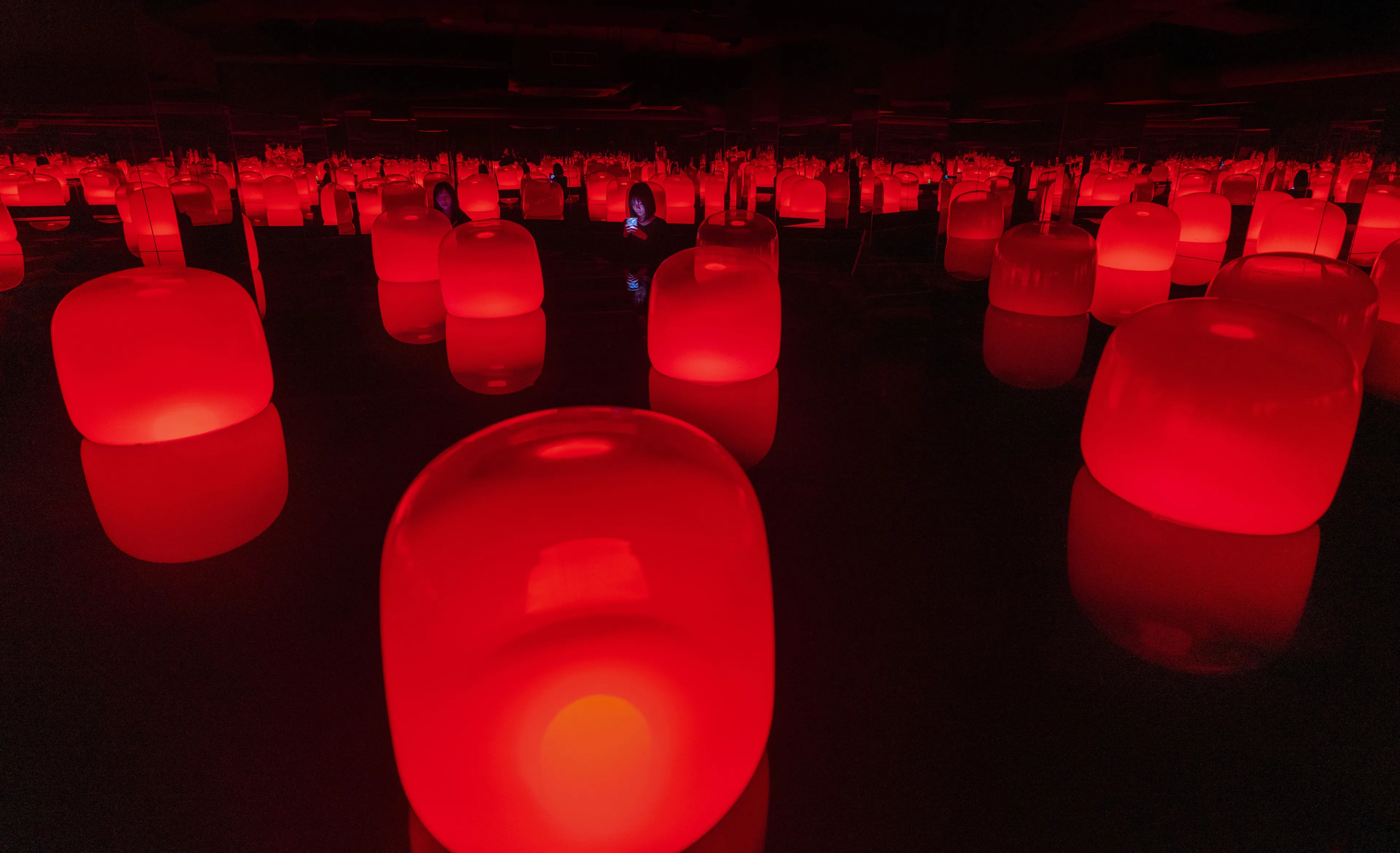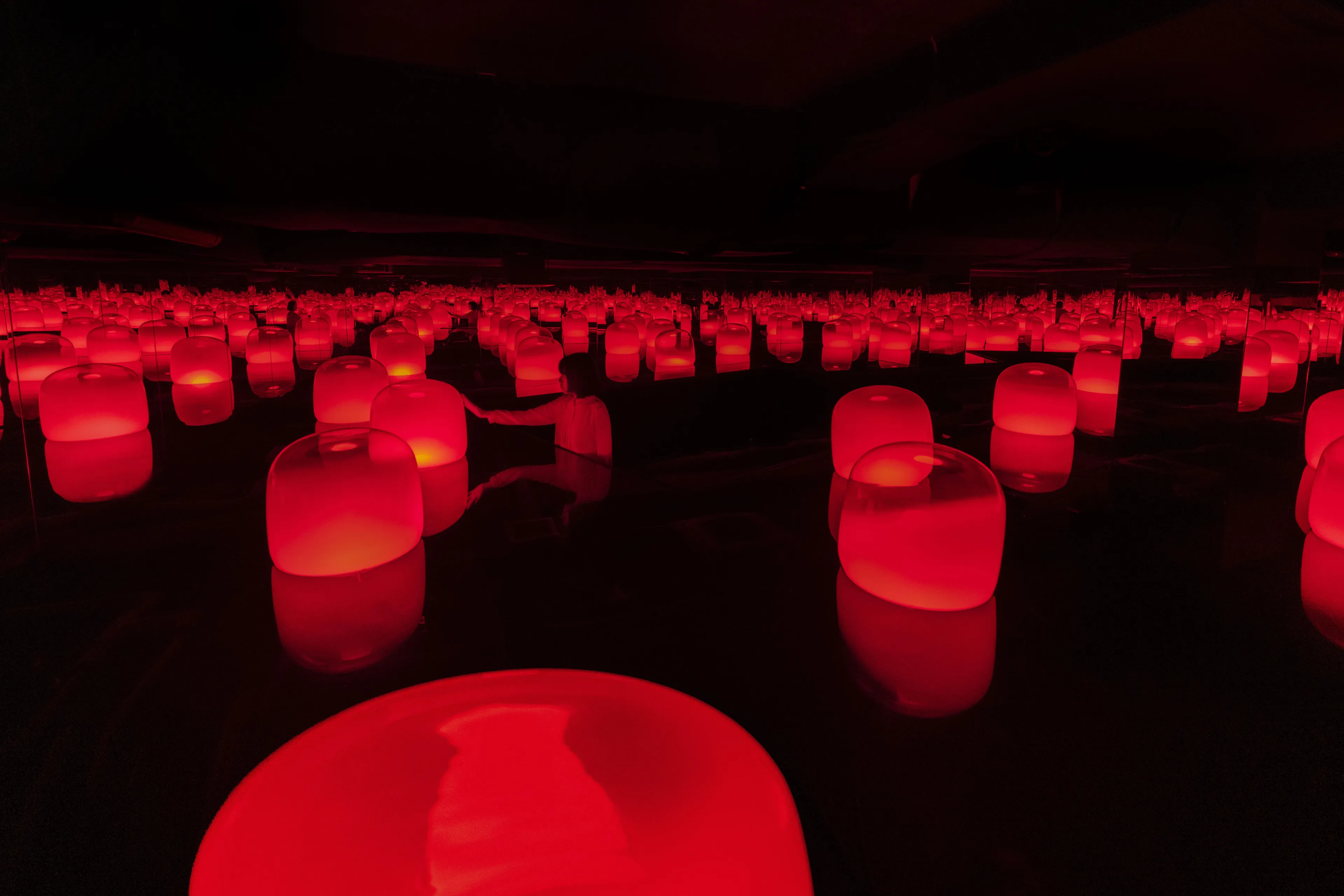 teamLab, 2021, Interactive Installation, Murano Glass, LED, Endless, Sound: Hideaki Takahashi + teamLab, Production Support: Hirohito Saito (OryZa Design), Shinya Yoshida (SYD INC.)