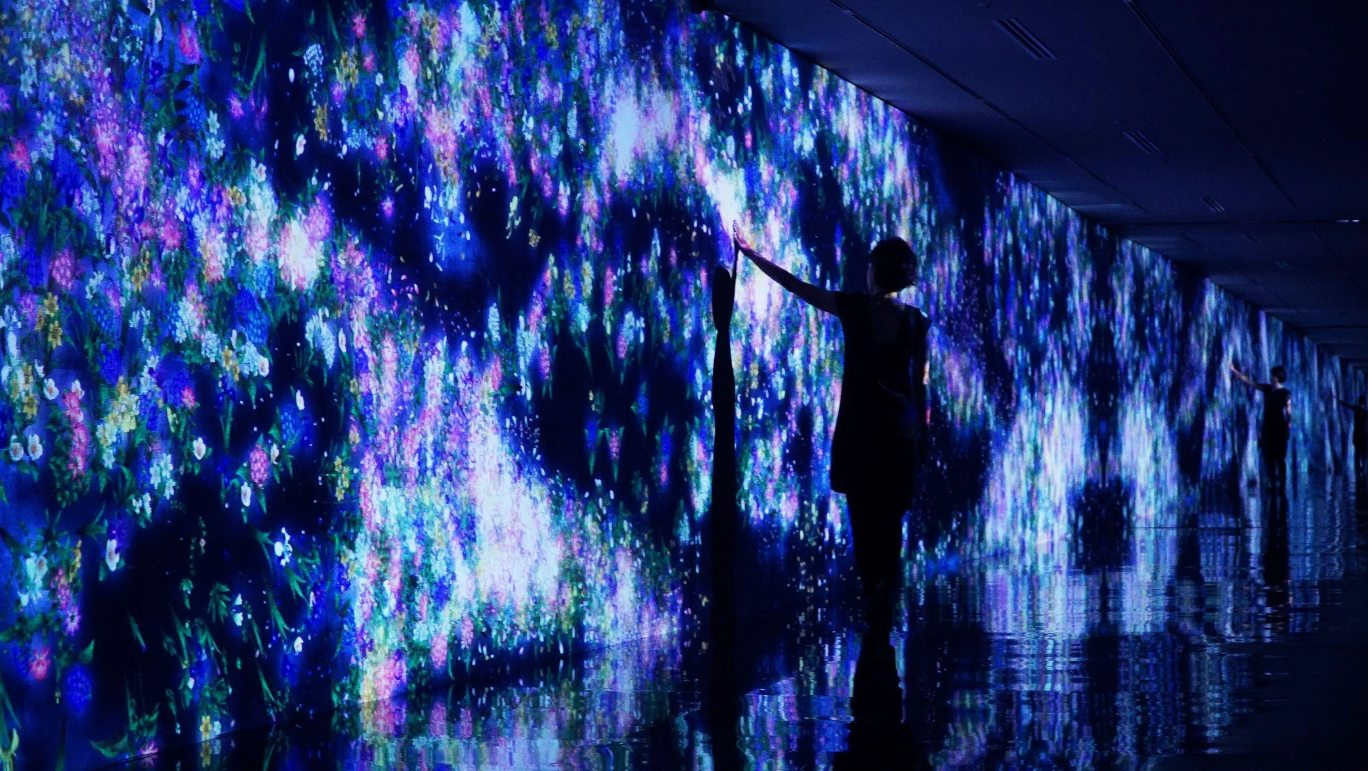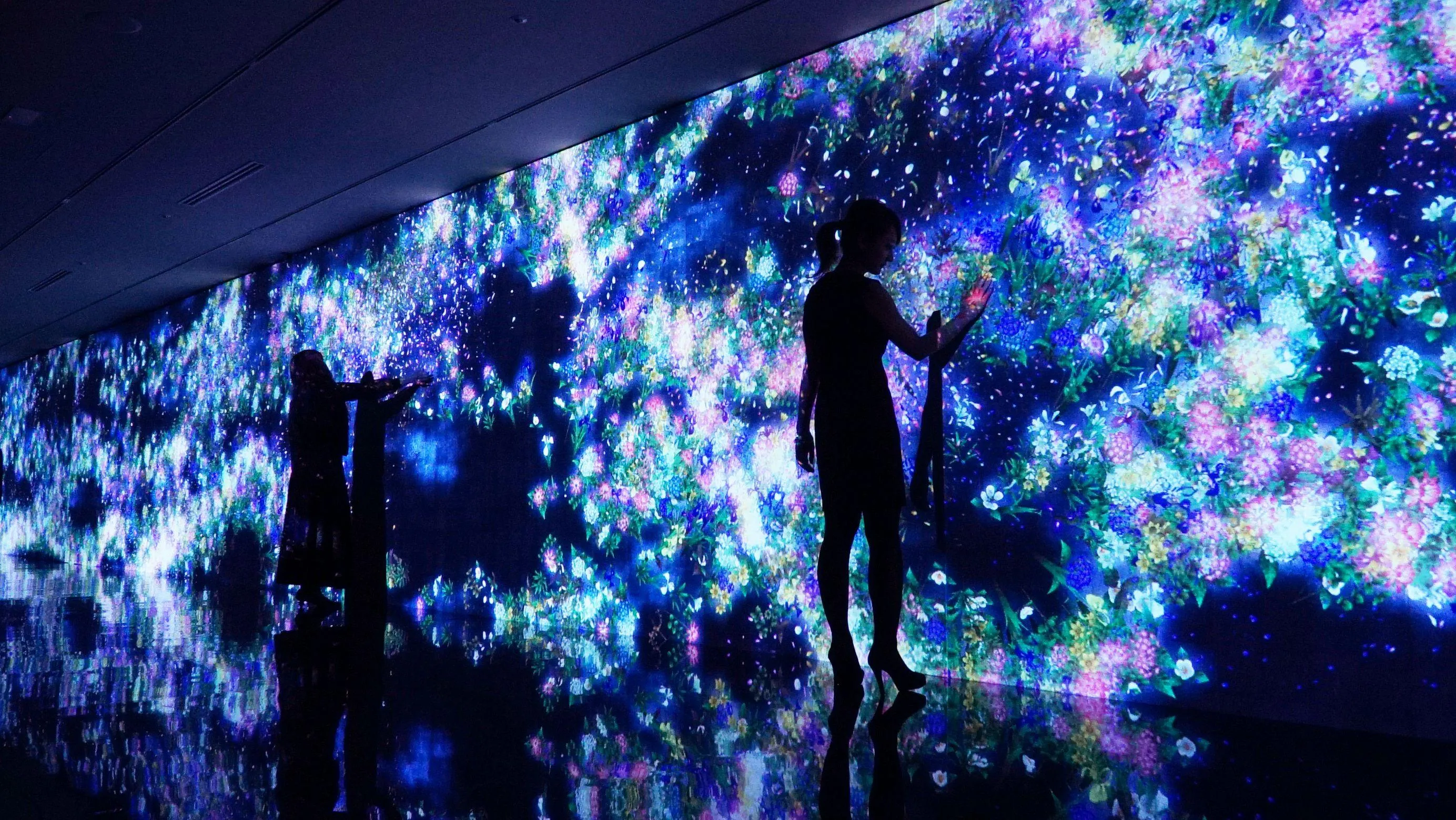 This is an art installation that depicts flowers of Tokyo blooming in an infinitely expanding space.