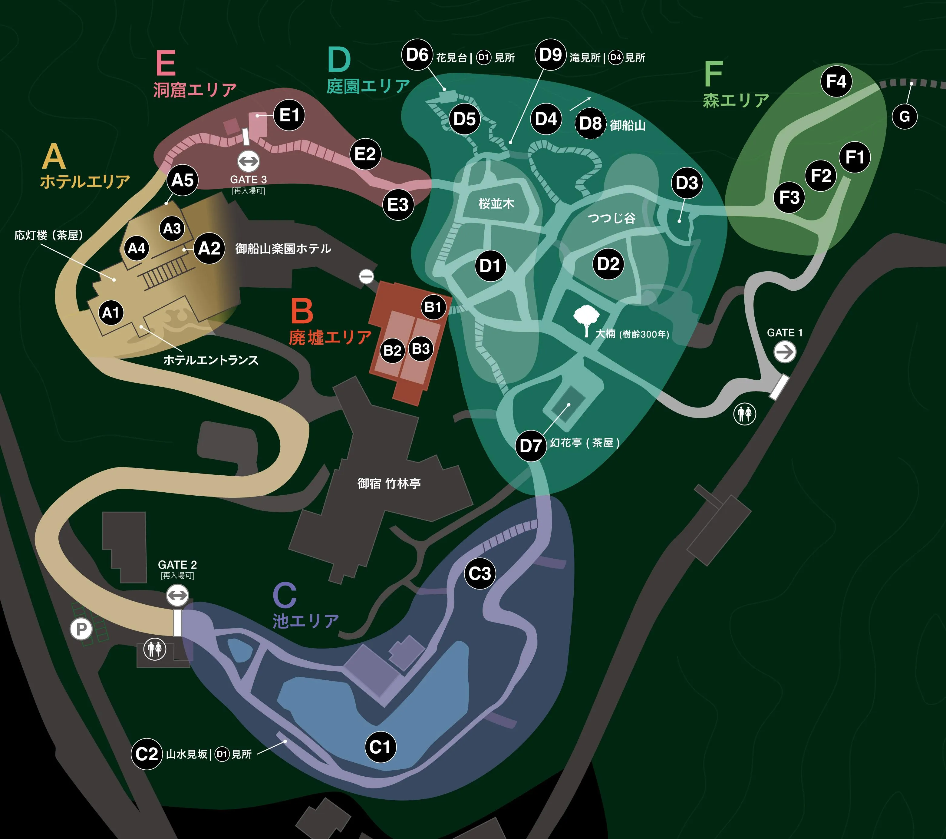 園内には急勾配の坂や階段、悪路がございますので、安全のため動きやすい服や靴でご来場ください。