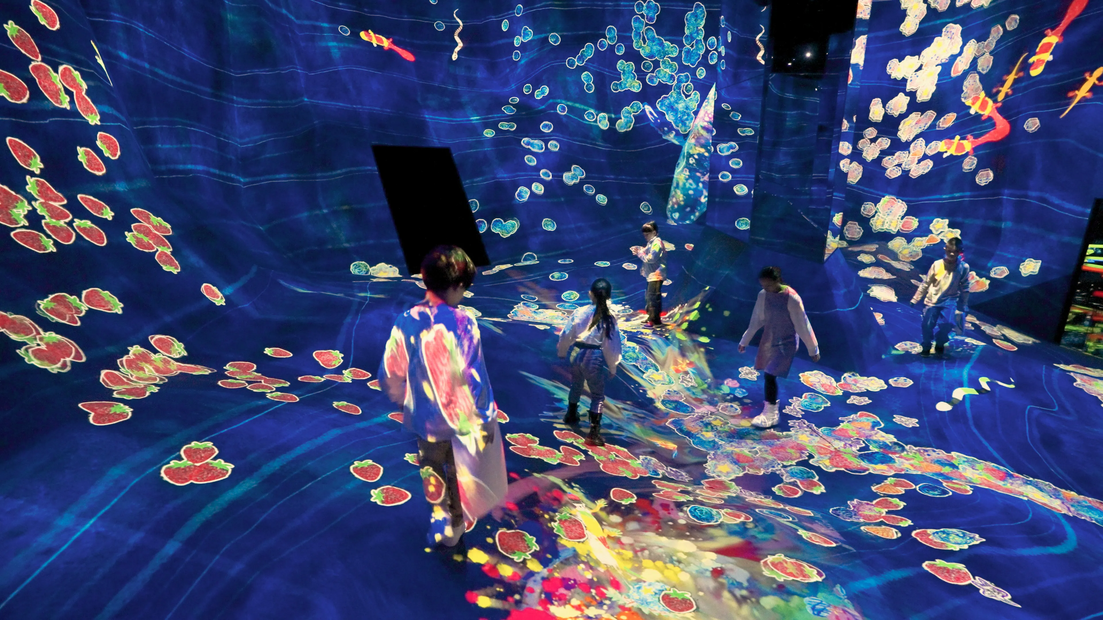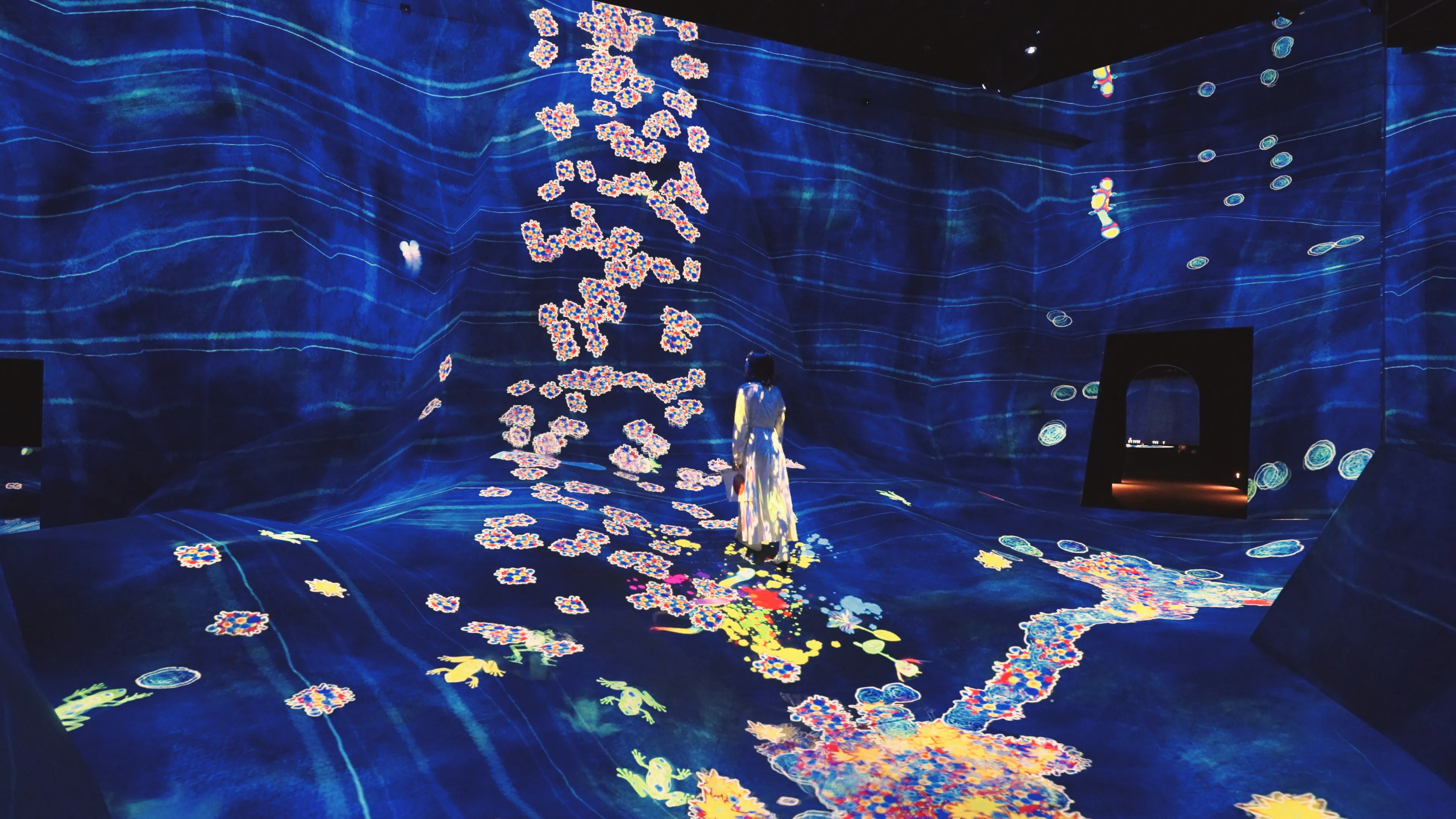 紙に自由に絵を描く。すると、描いた絵が粒となってたくさん流れ落ちて滝となる。やがて、他の人が描いた粒と混じって落ちてくる。そして、地形に沿って流れ込んでいく。