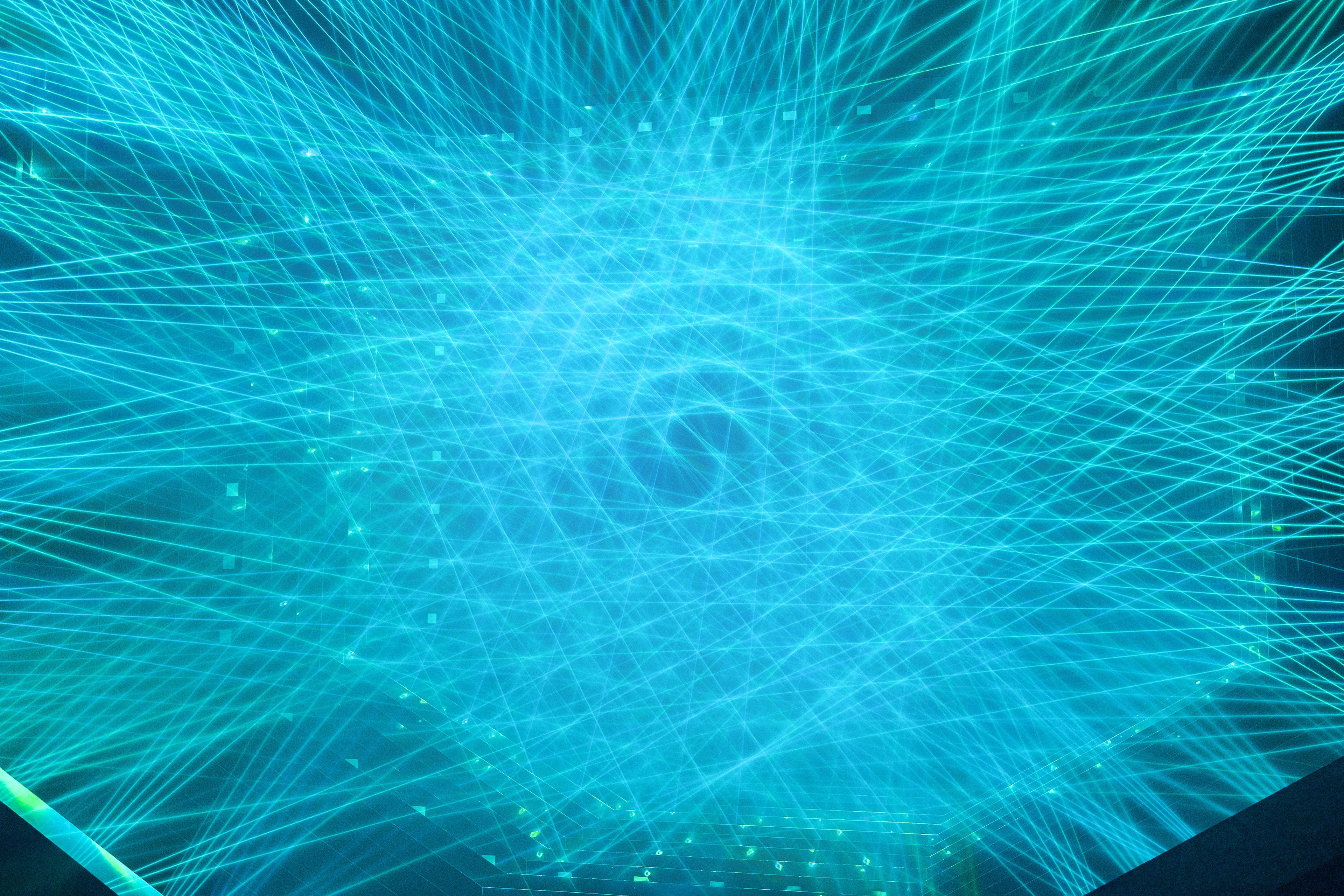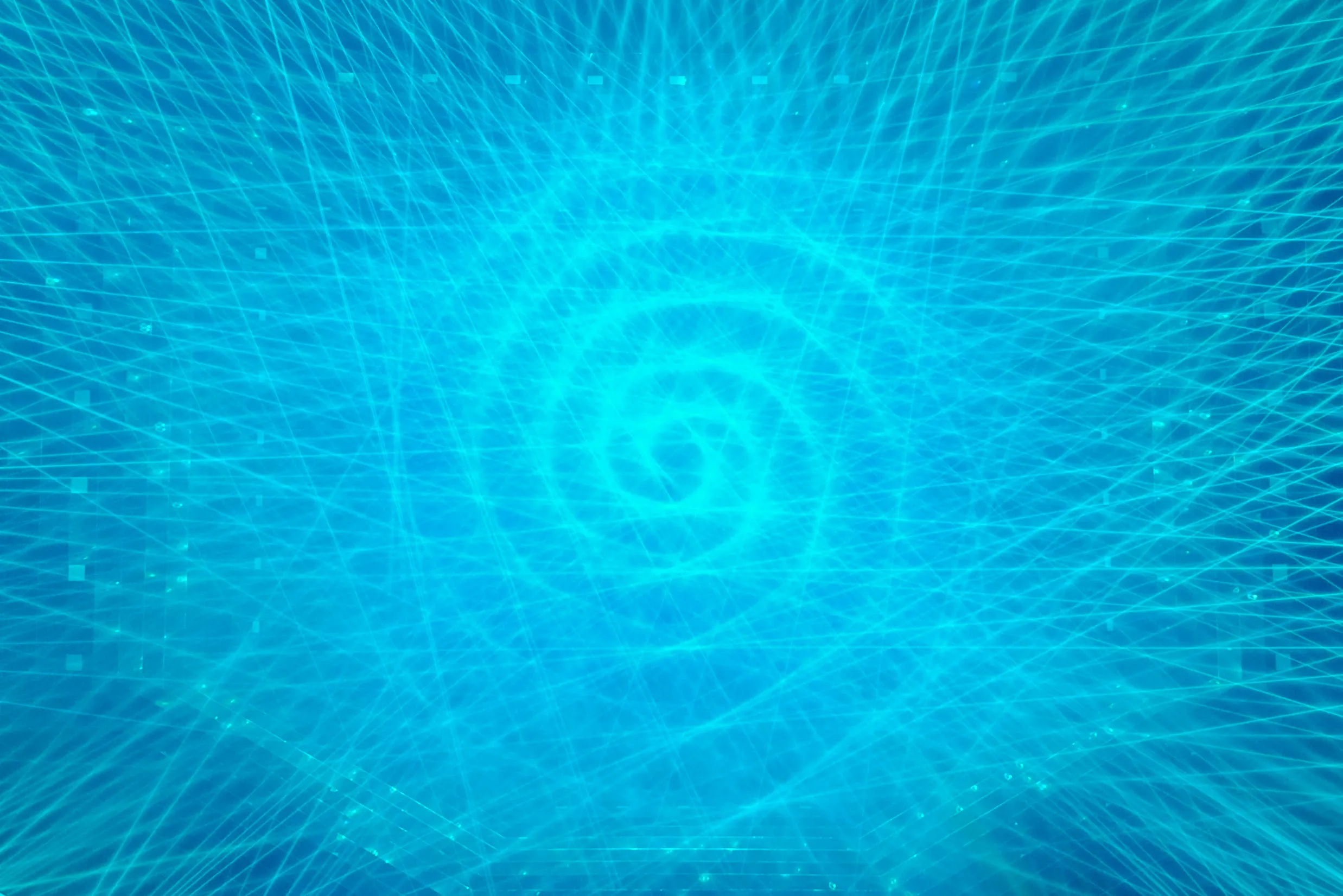 外部から内部へ、そして内部から外部へと流れ続ける光の集合が中心部分に秩序を形成し、生命的宇宙が現れる。