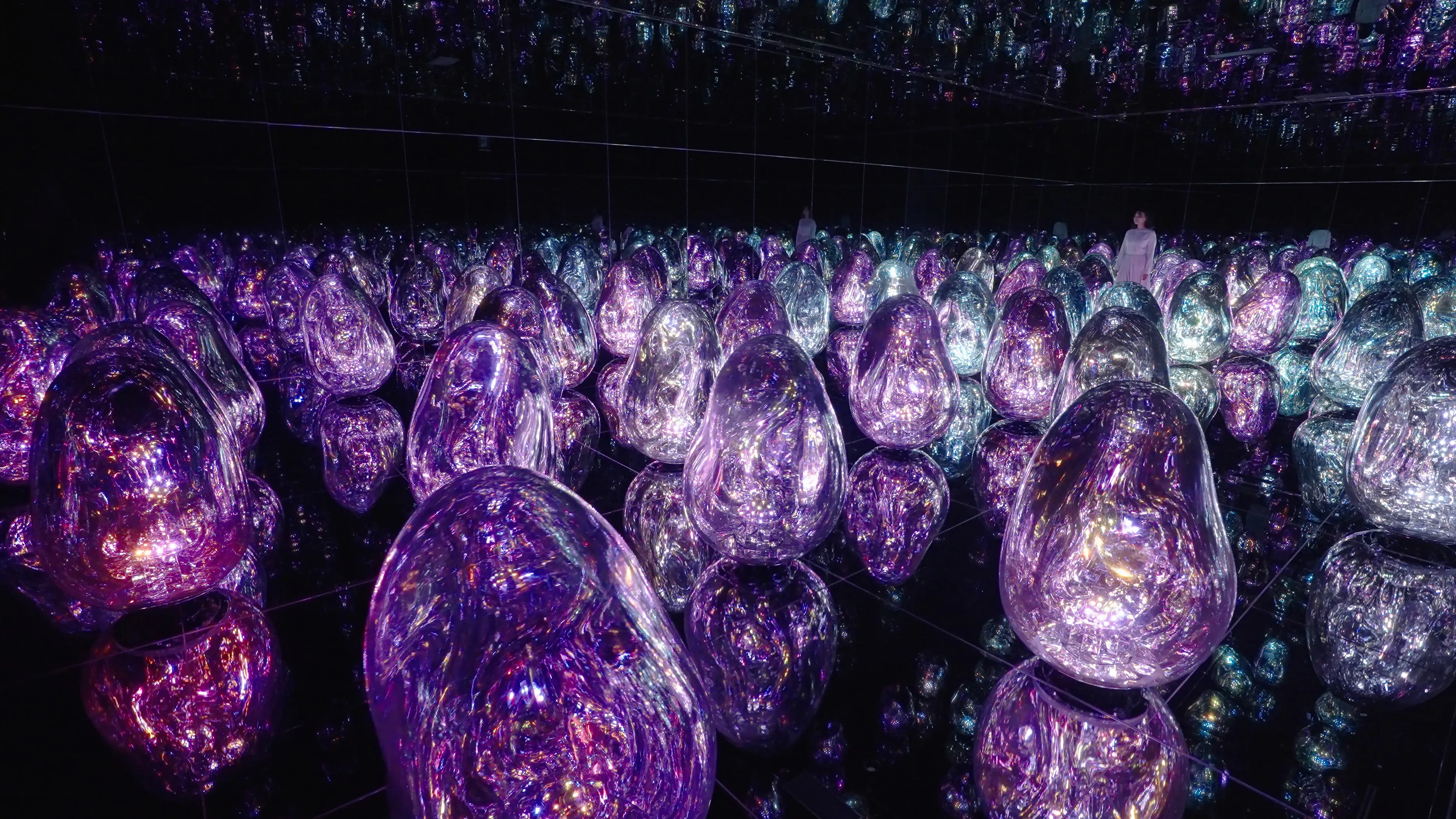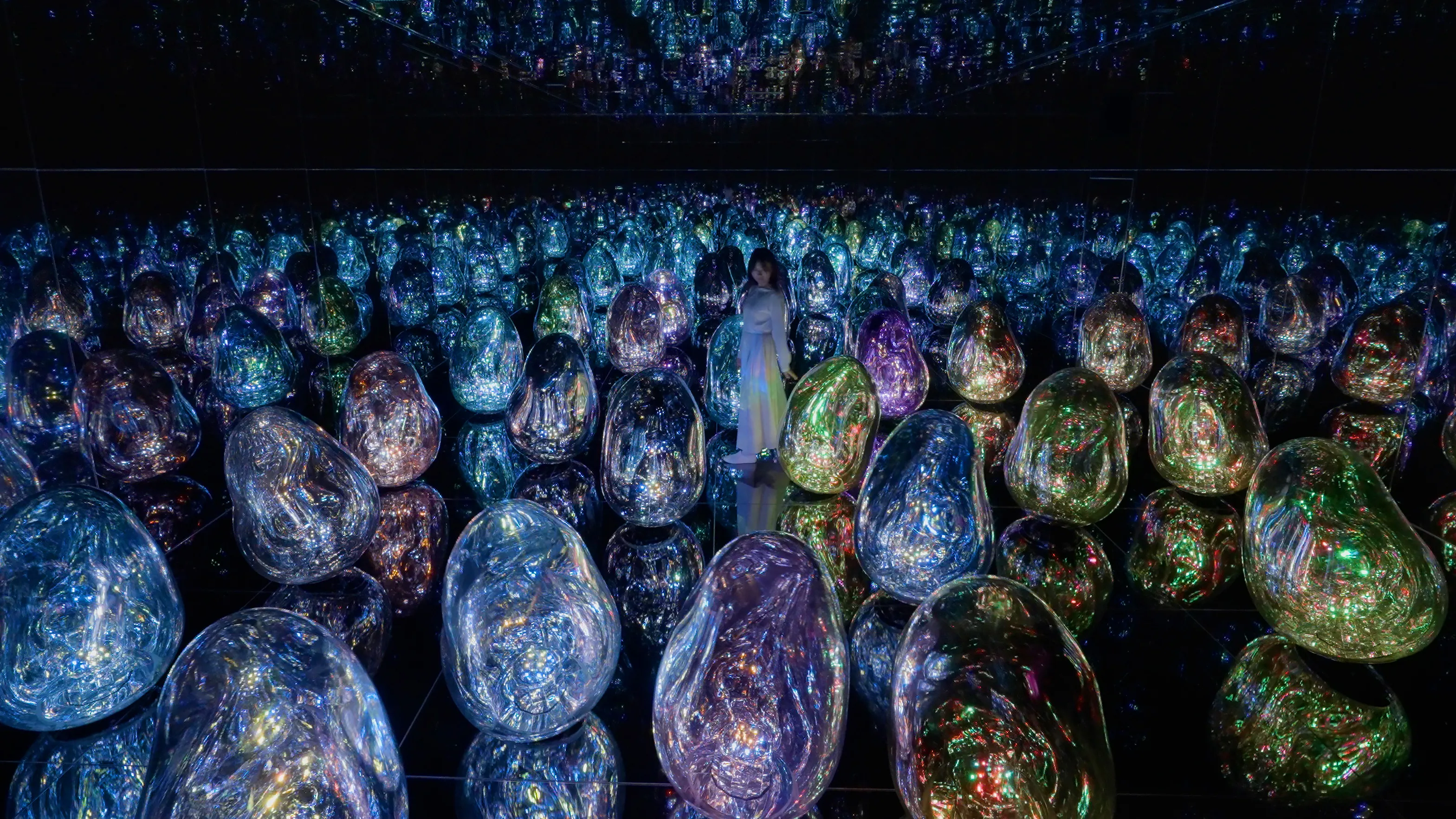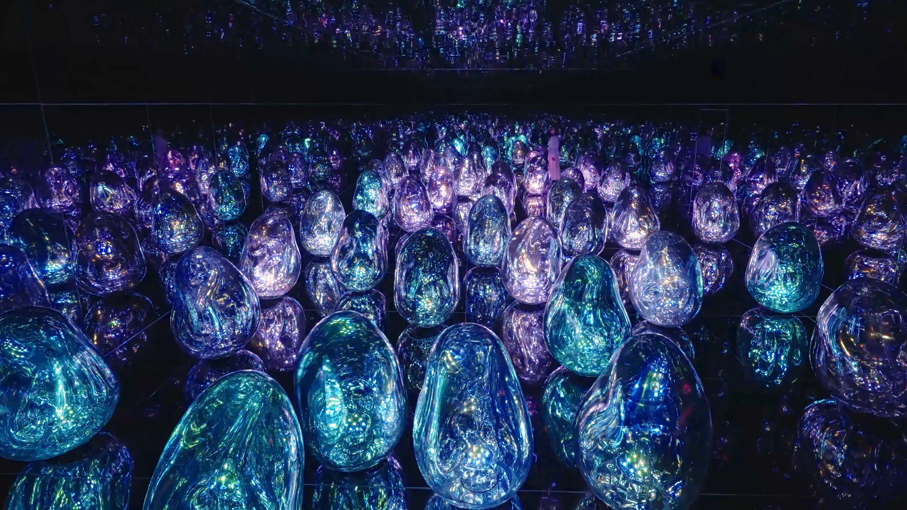 チームラボは色の概念を更新することを試みている。ovoid(卵形体)は「固形化された光の色」と名付けられた新しい概念の色、32色で変化していく。
