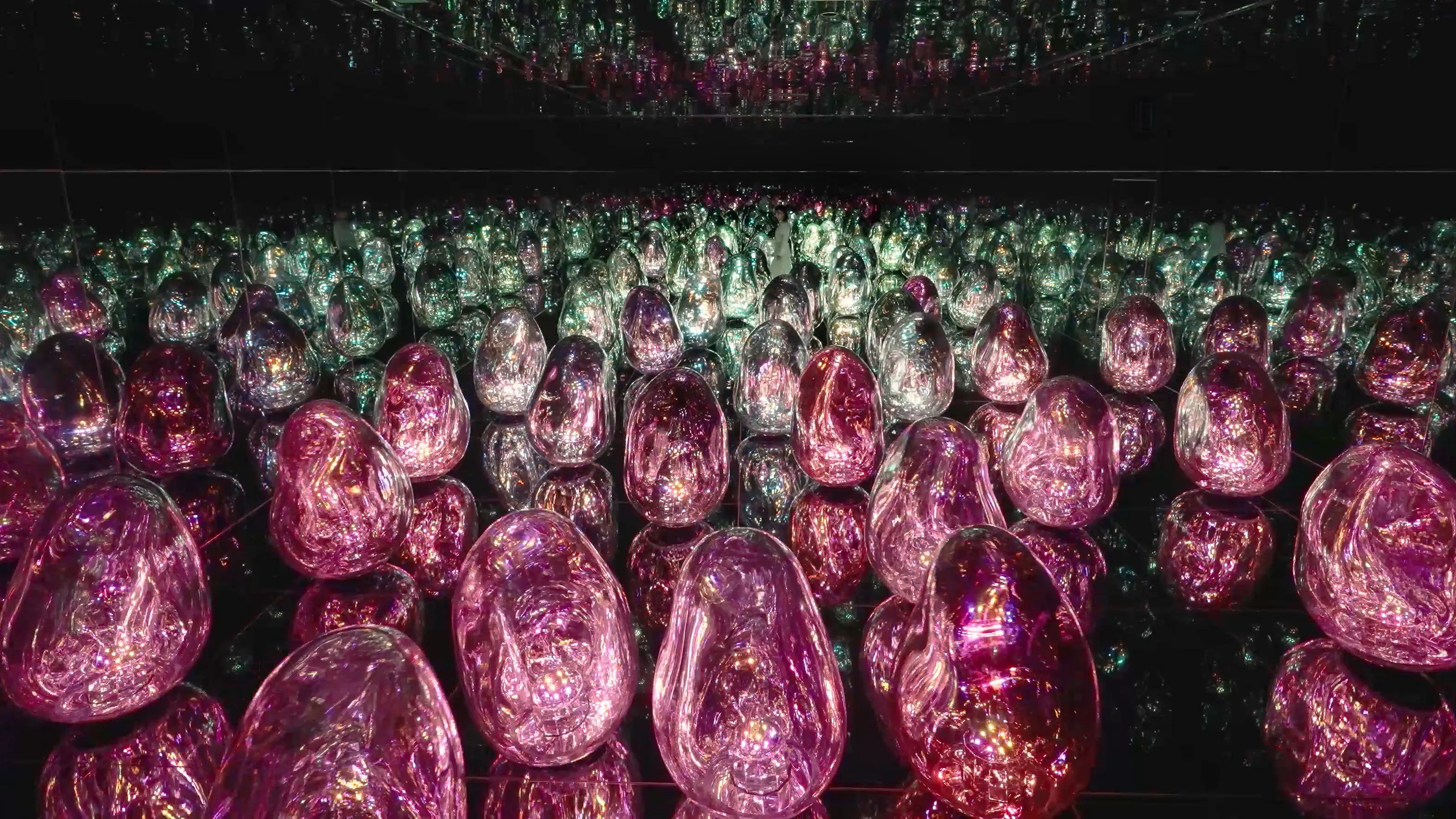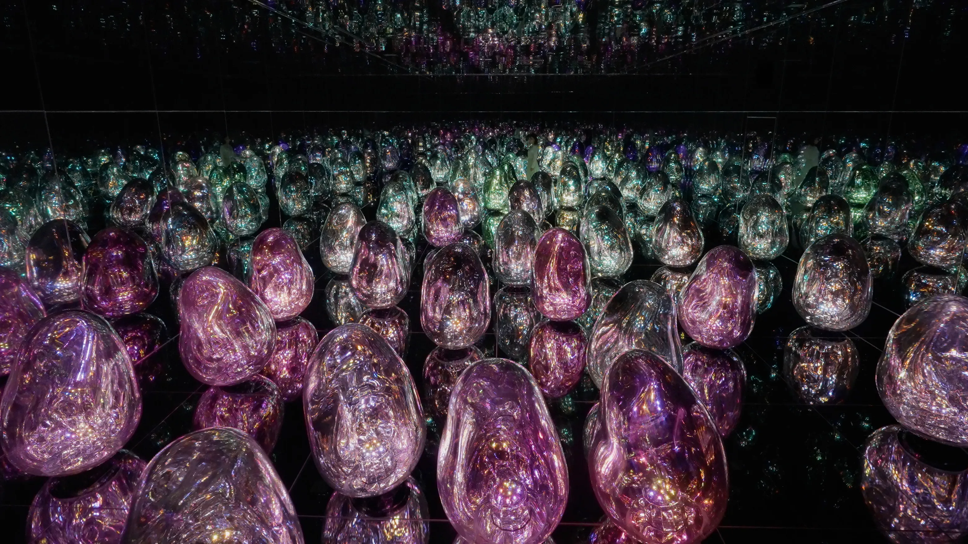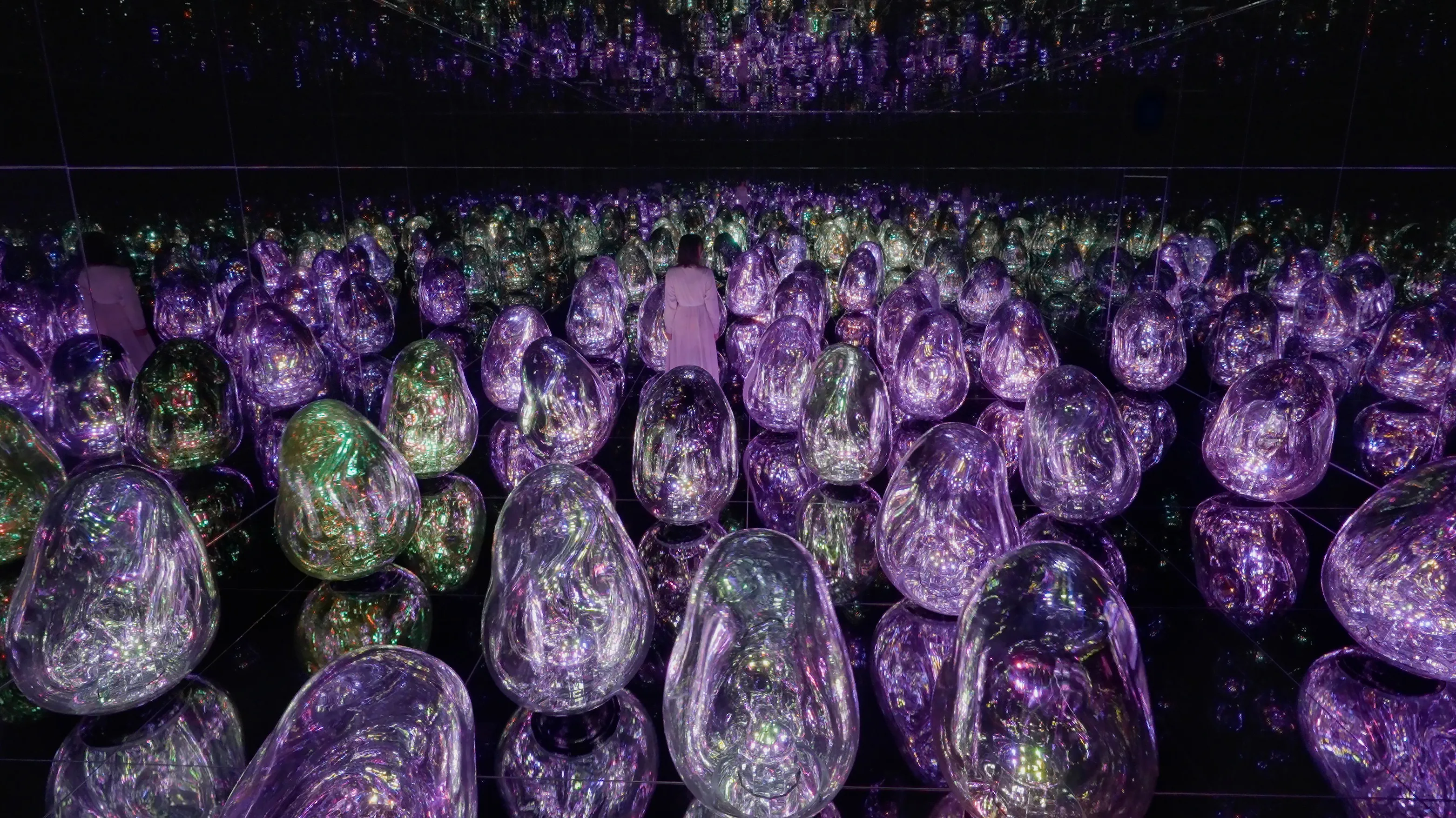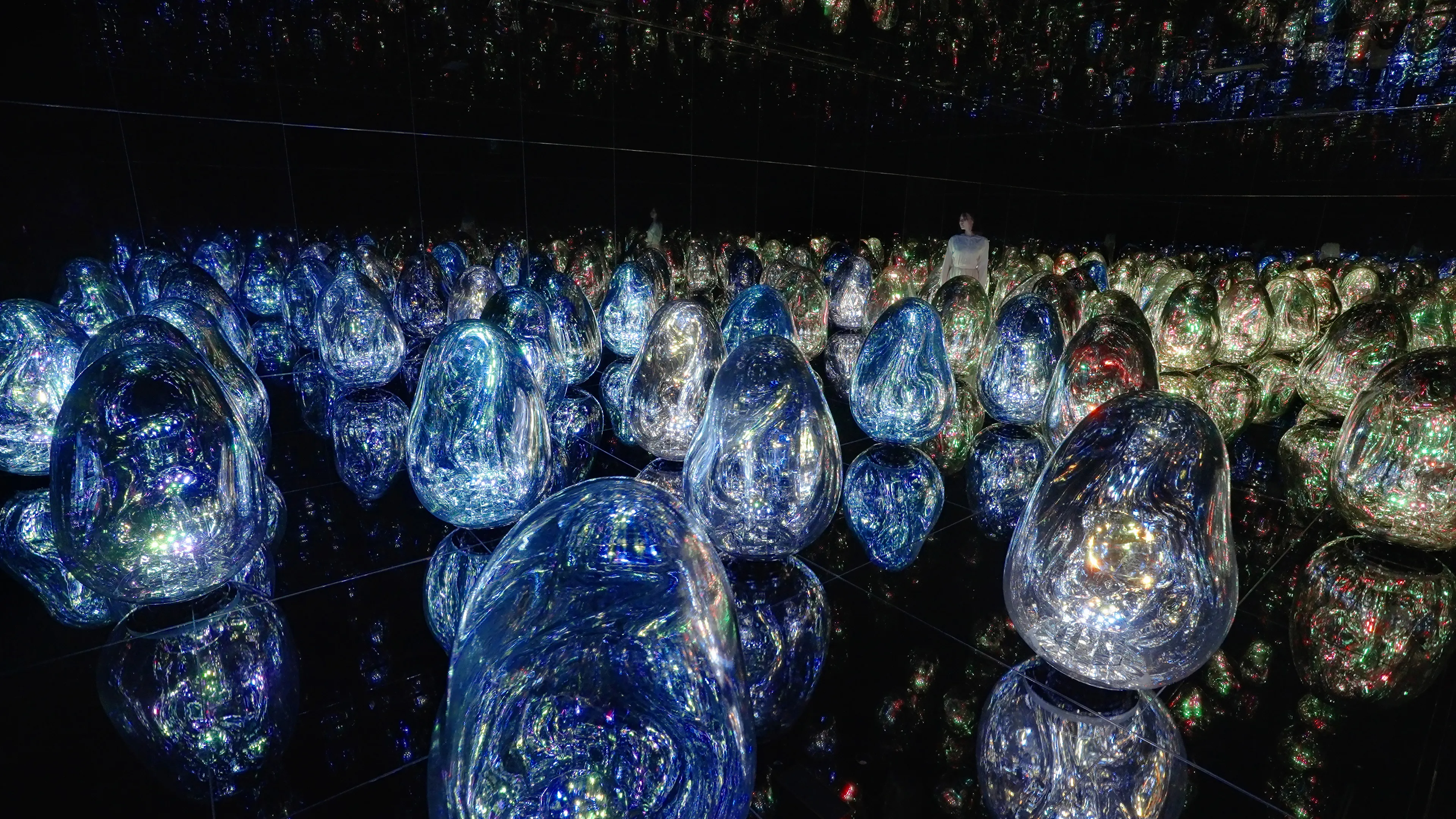 チームラボは色の概念を更新することを試みている。ovoid(卵形体)は「固形化された光の色」と名付けられた新しい概念の色、32色で変化していく。