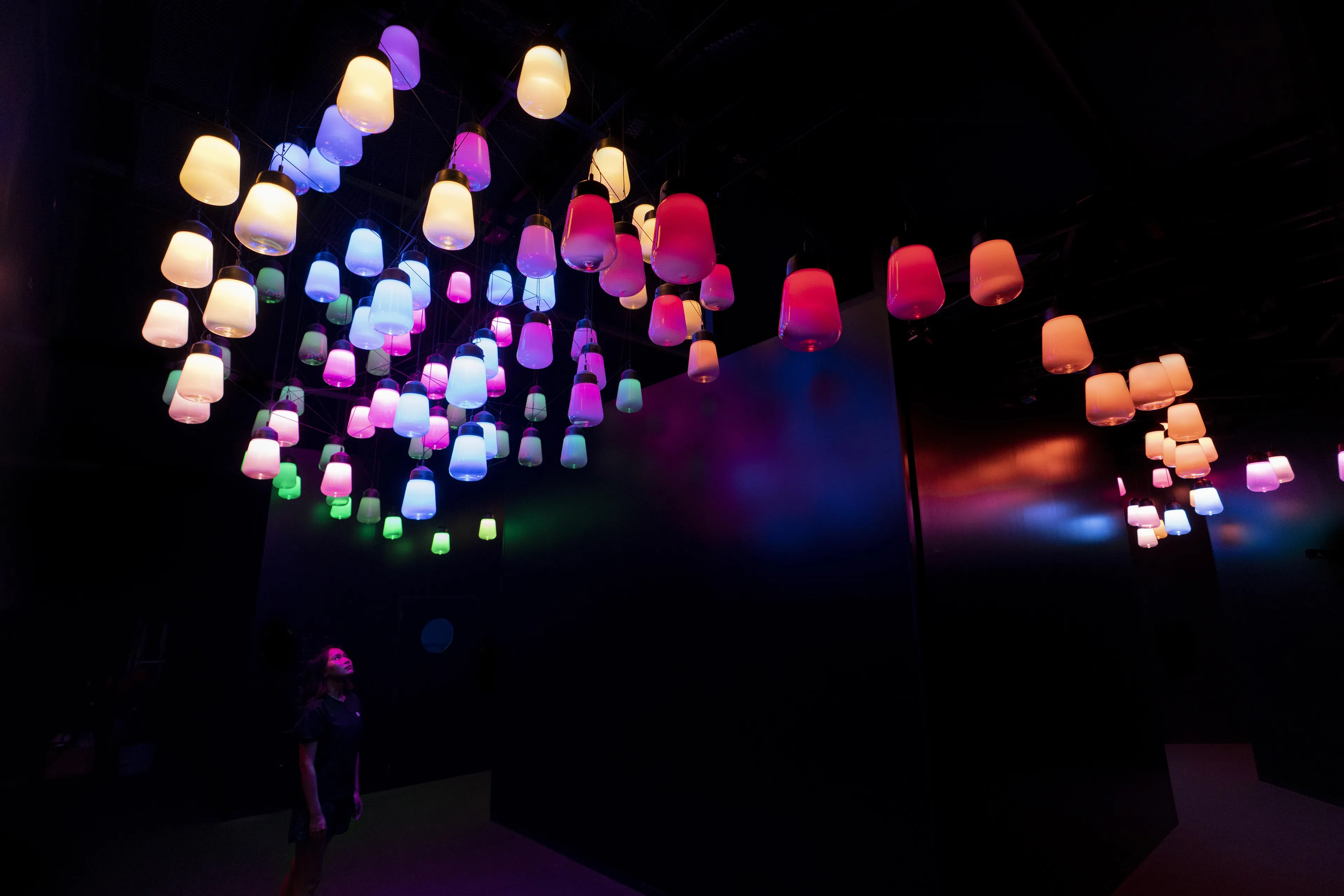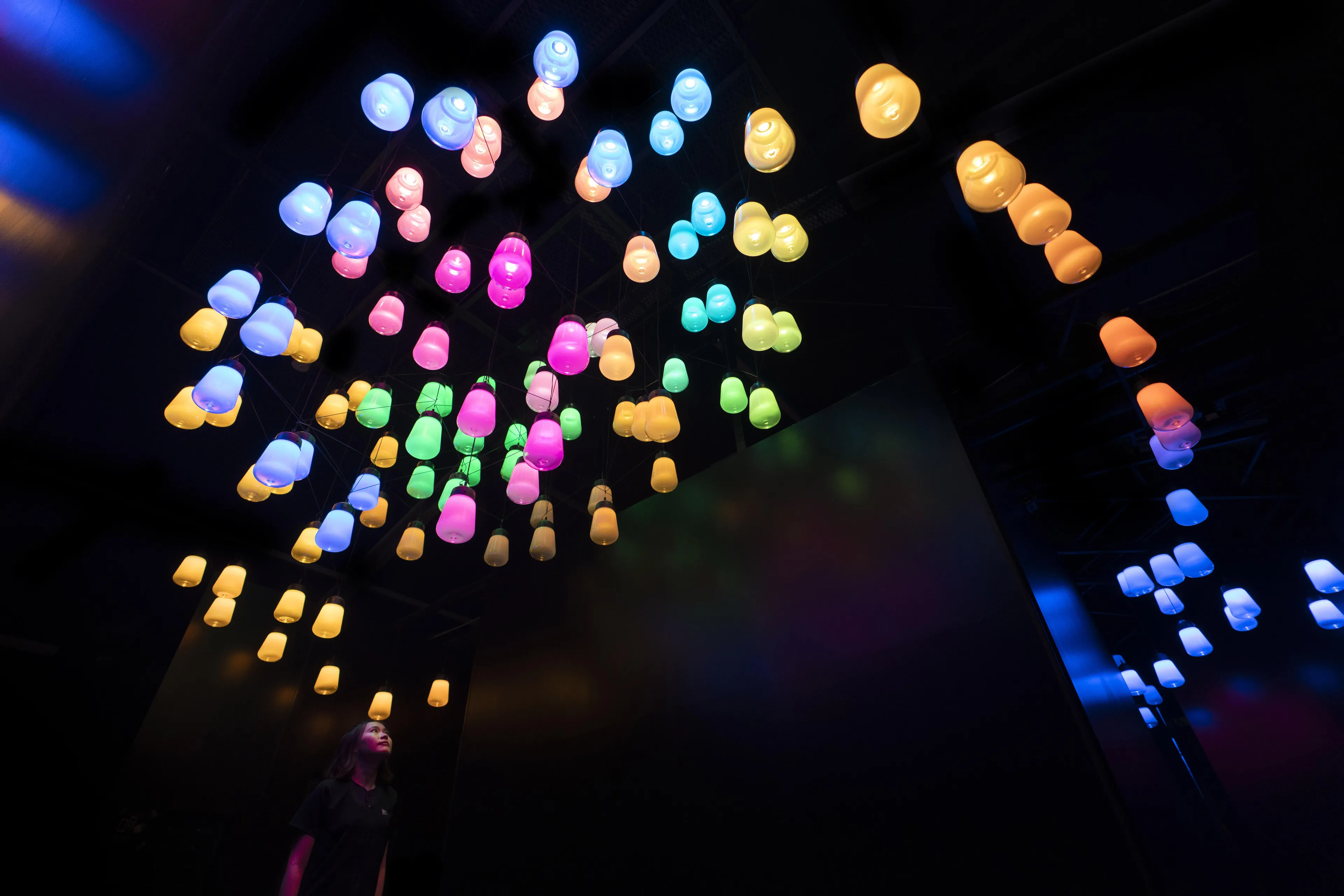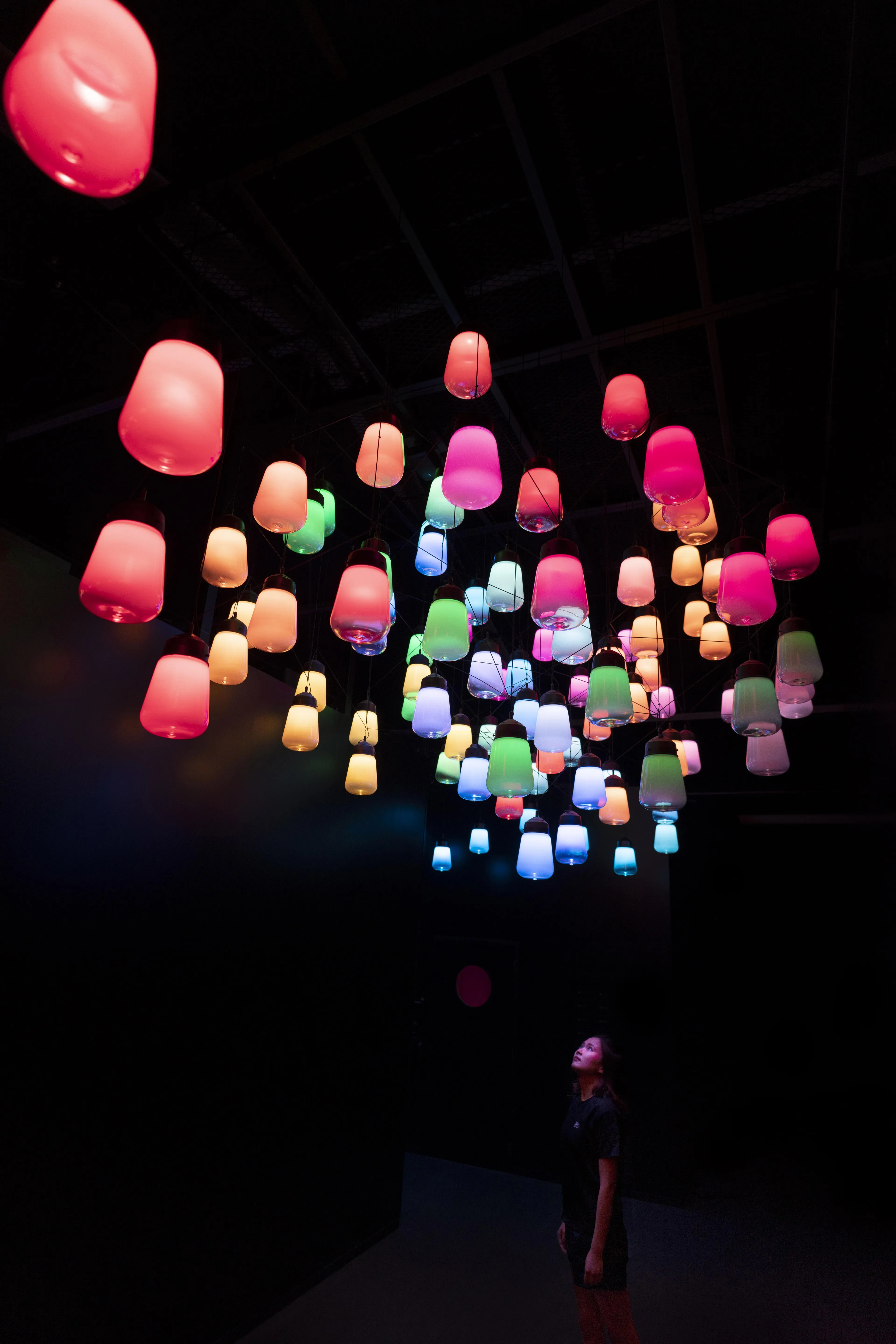 これは、空間が固定化されていることを前提とした静的な美しさではなく、人々がこのランプに近づくことによって生まれる動的な美しさとも言える。それは、デジタルテクノロジーによって変化そのものを自由に設計でき、人の存在による空間の変化や動きを受け入れた新しい時代の空間のありようである。