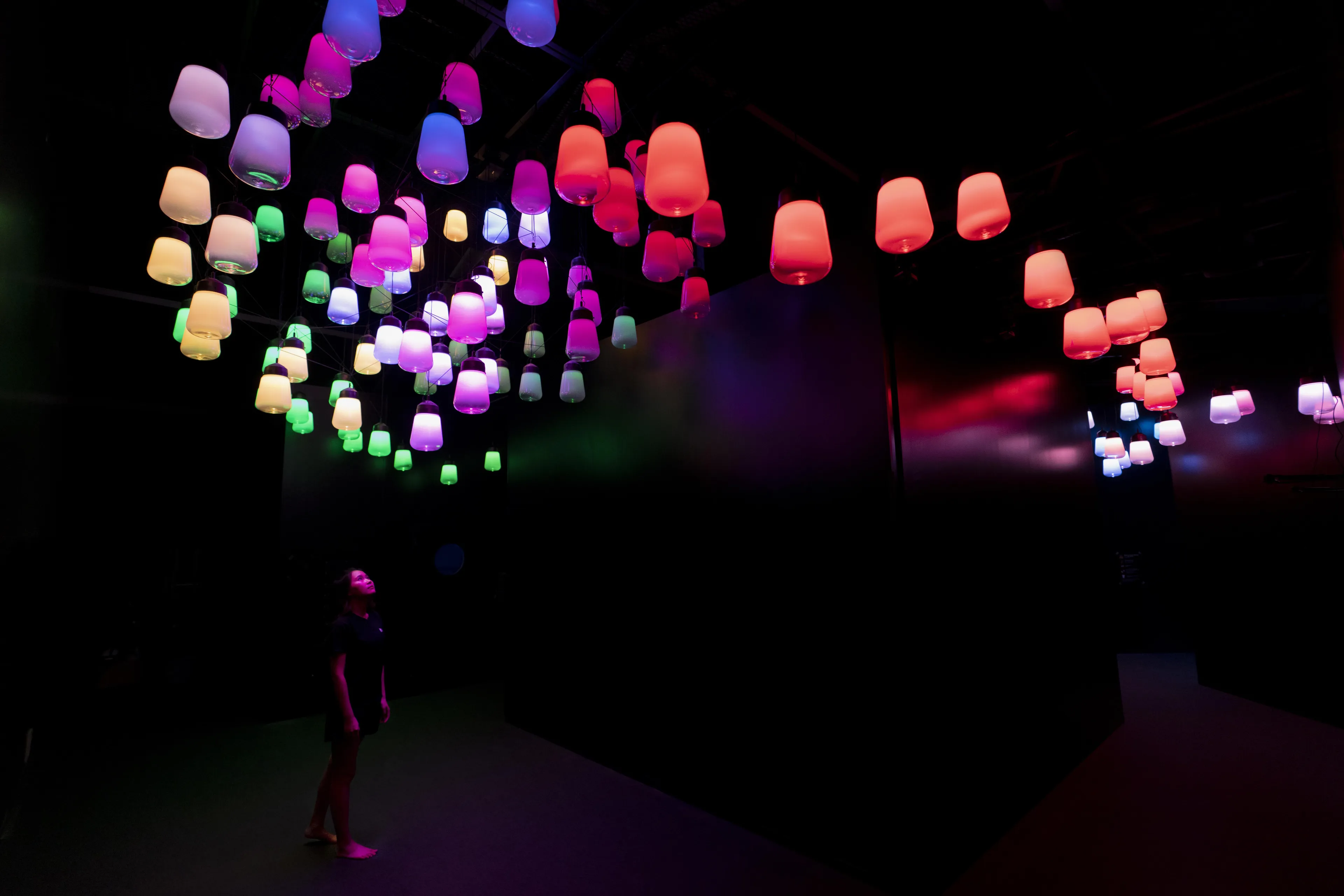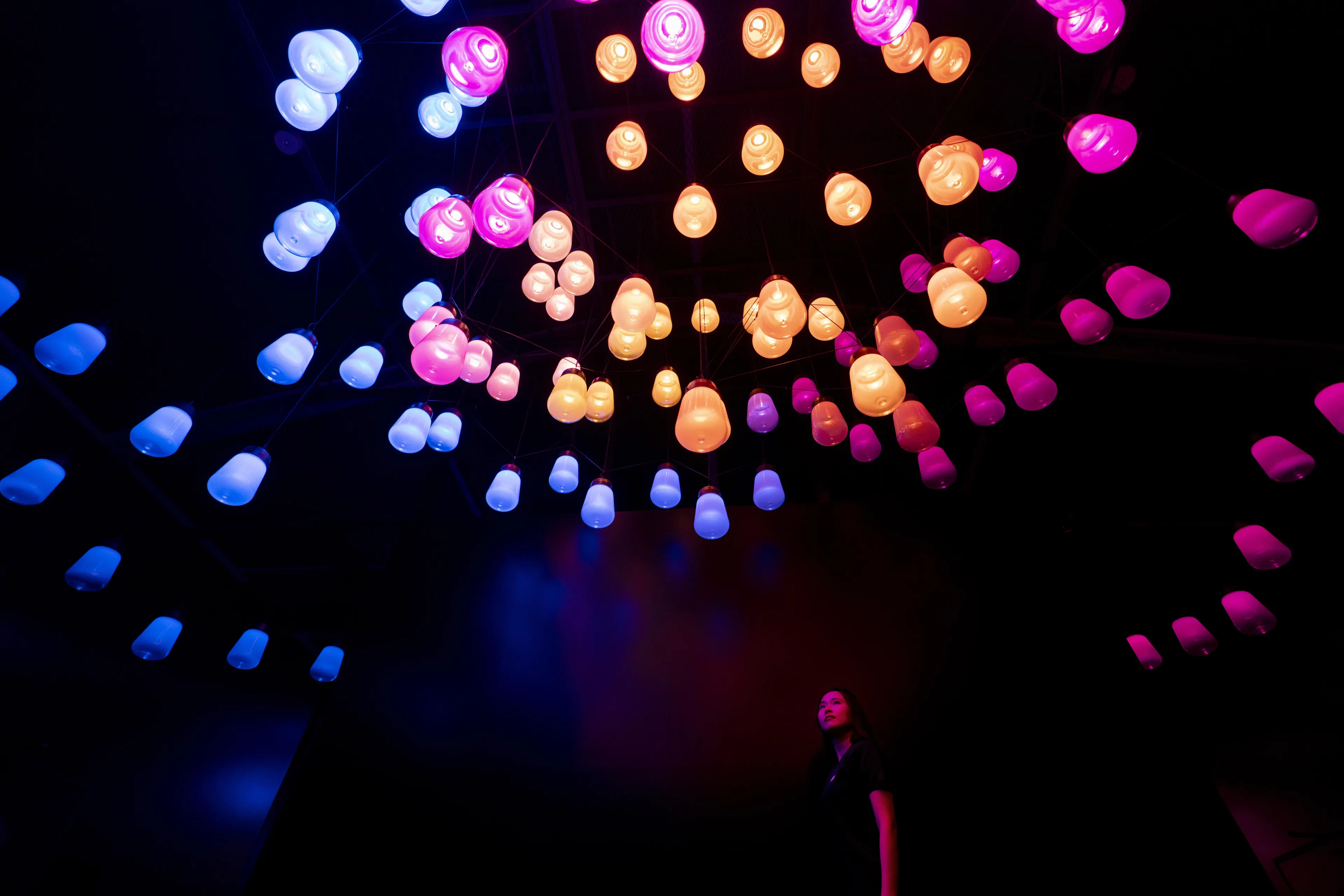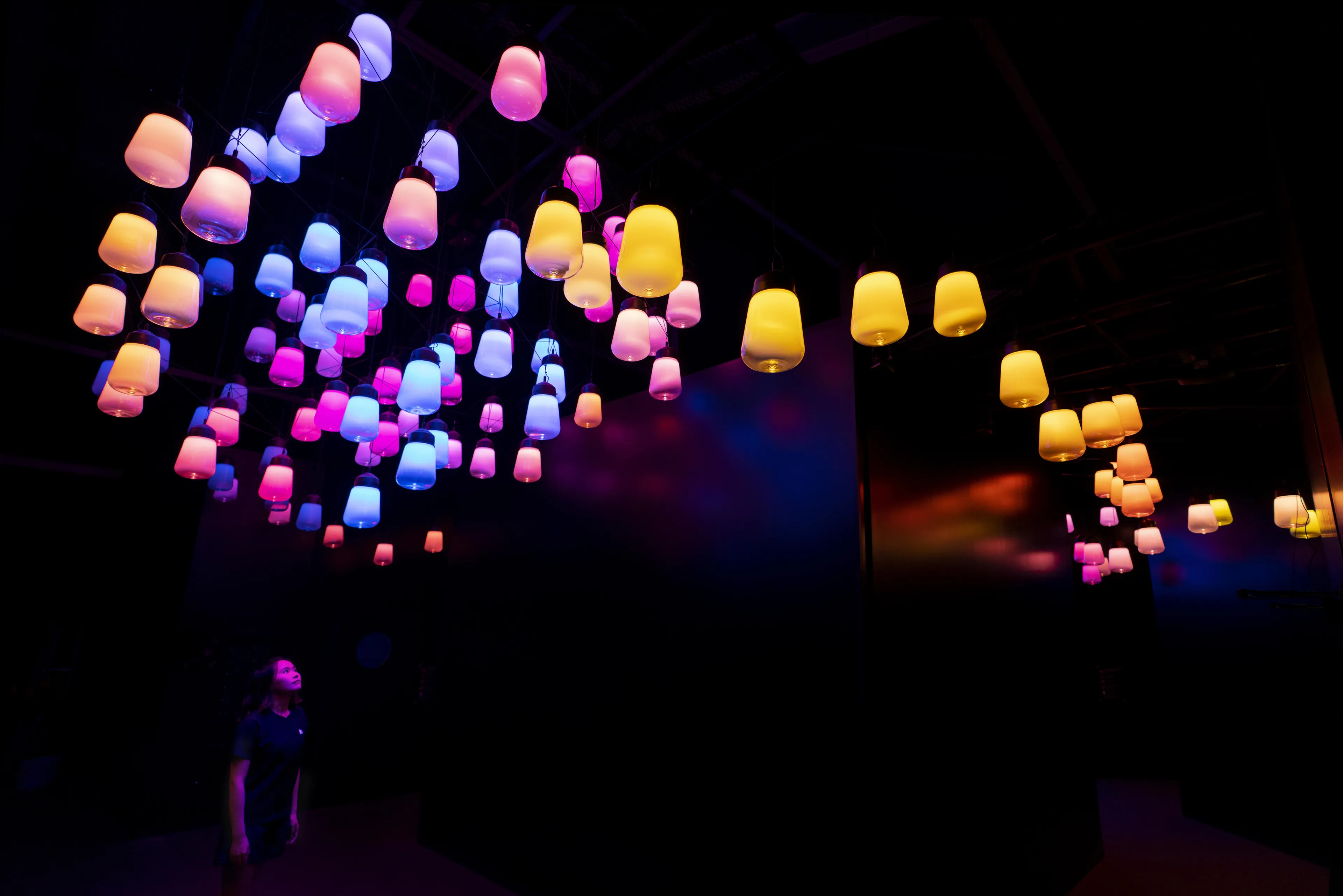 これは、空間が固定化されていることを前提とした静的な美しさではなく、人々がこのランプに近づくことによって生まれる動的な美しさとも言える。それは、デジタルテクノロジーによって変化そのものを自由に設計でき、人の存在による空間の変化や動きを受け入れた新しい時代の空間のありようである。