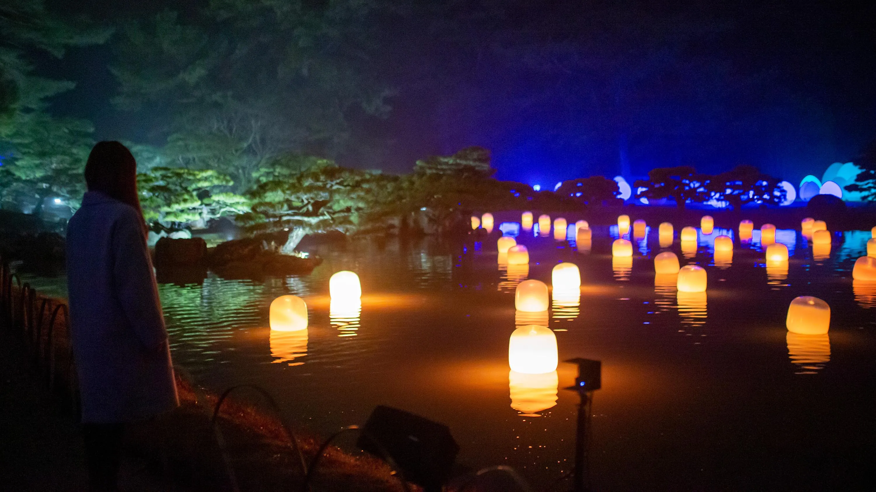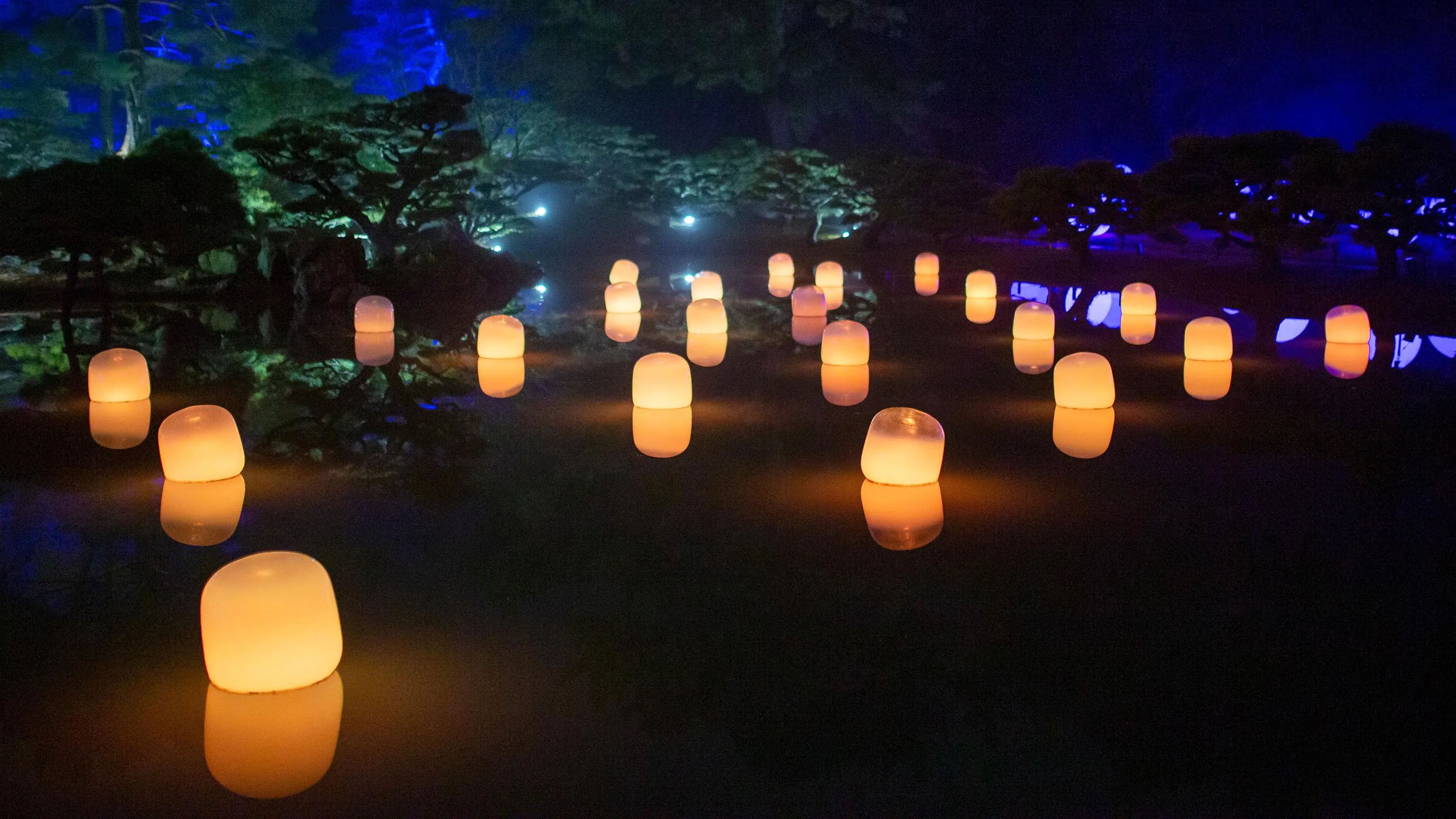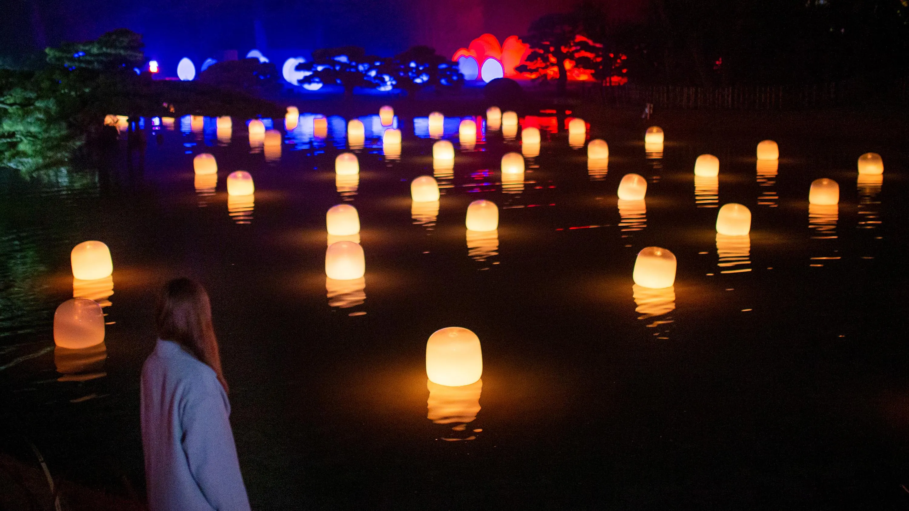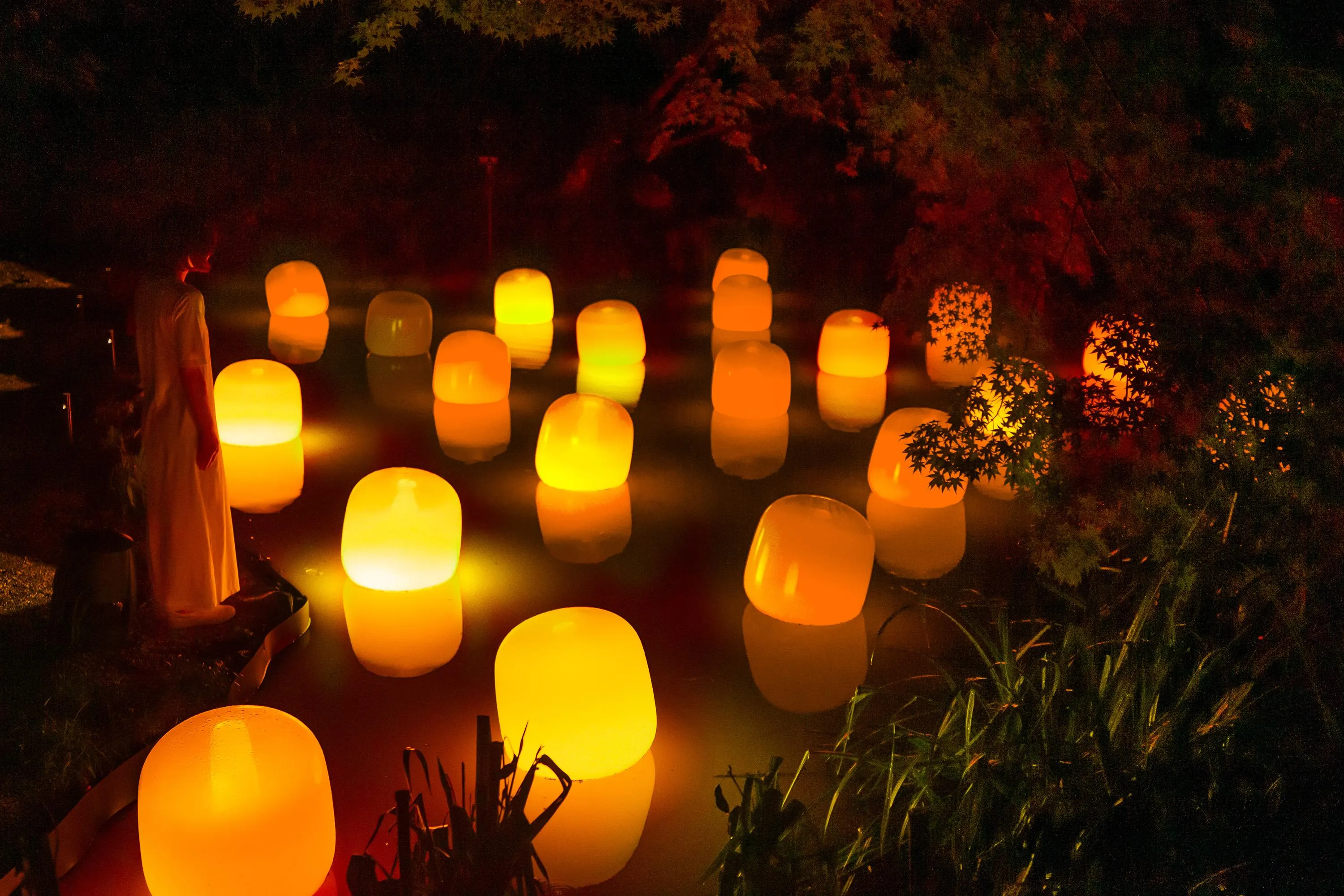 水面に浮かぶランプは、それぞれ自律し浮遊している。人がランプの近くで立ち止まっていると、もしくは風に吹かれて傾くと、強く輝き音色を響かせる。そのランプの光は、隣のランプに次々伝播し、音色を響かせながら、連続していく。伝播していく光は、必ず、全てのランプを一度だけ強く輝かせ、全てのランプに伝播する。人々はきっと、同じ空間にいる他の人々の存在を感じるだろう。