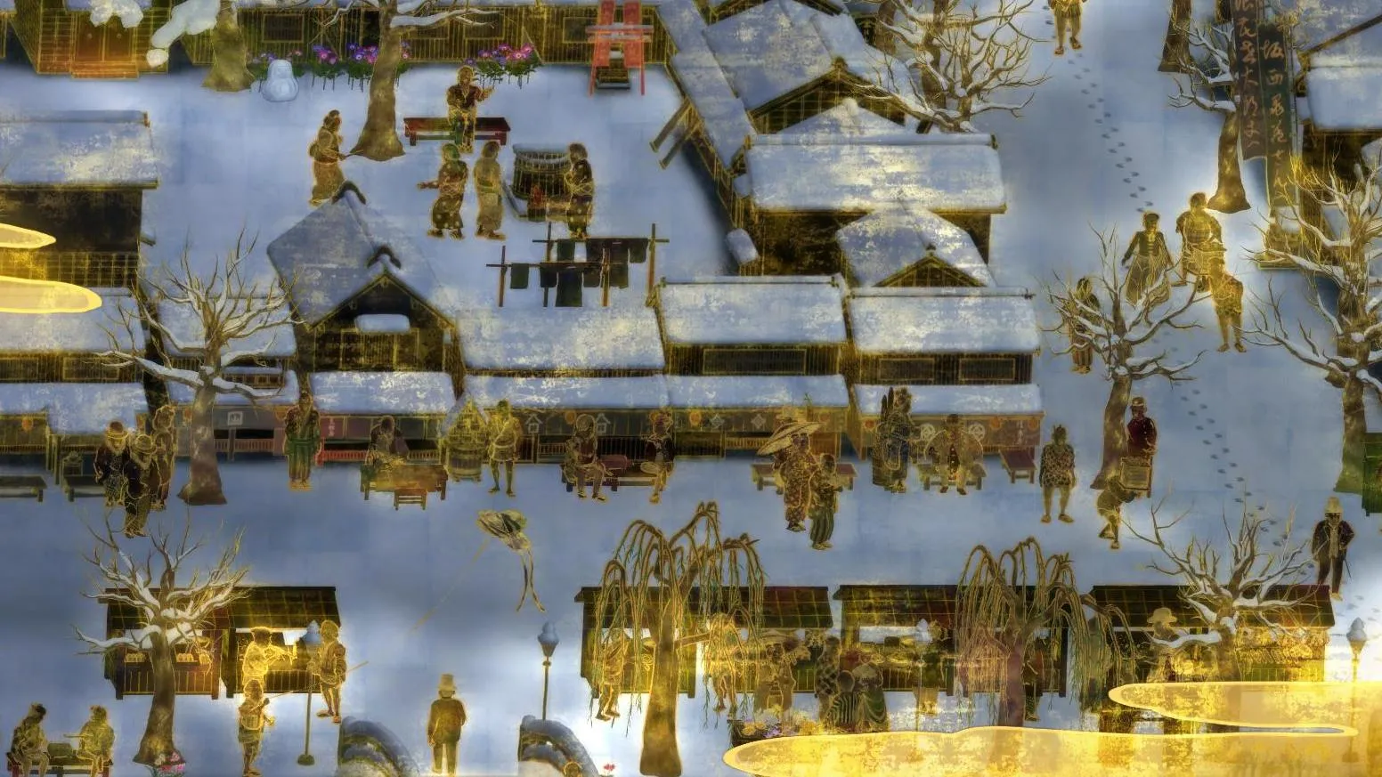 人々の生活も、現実の時間帯や天候によって常に変わりながら、季節とともに祭や行事が行われていく。日々、様々な物語が加わっていきながら、人々の営みが恒久的に続いていく。