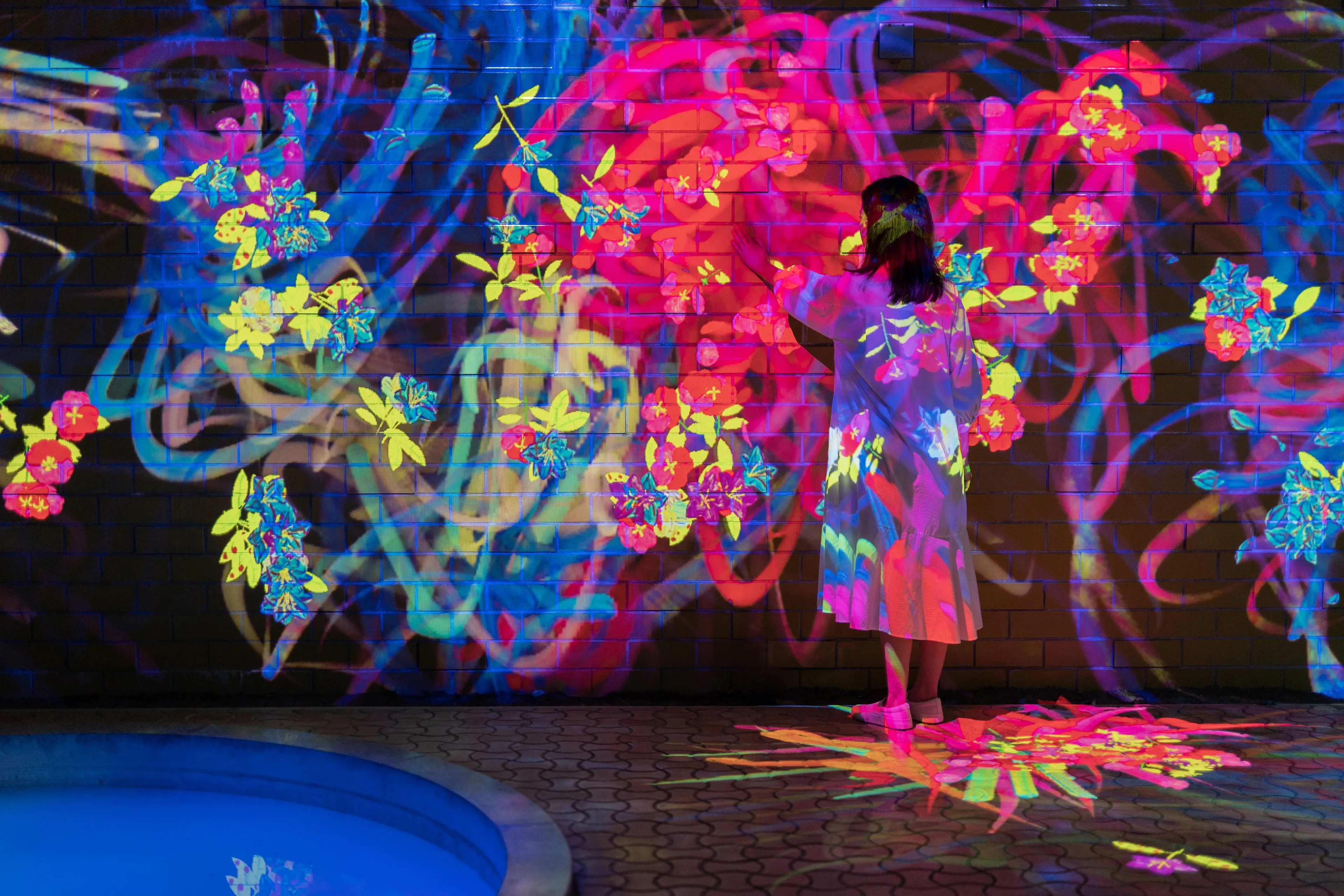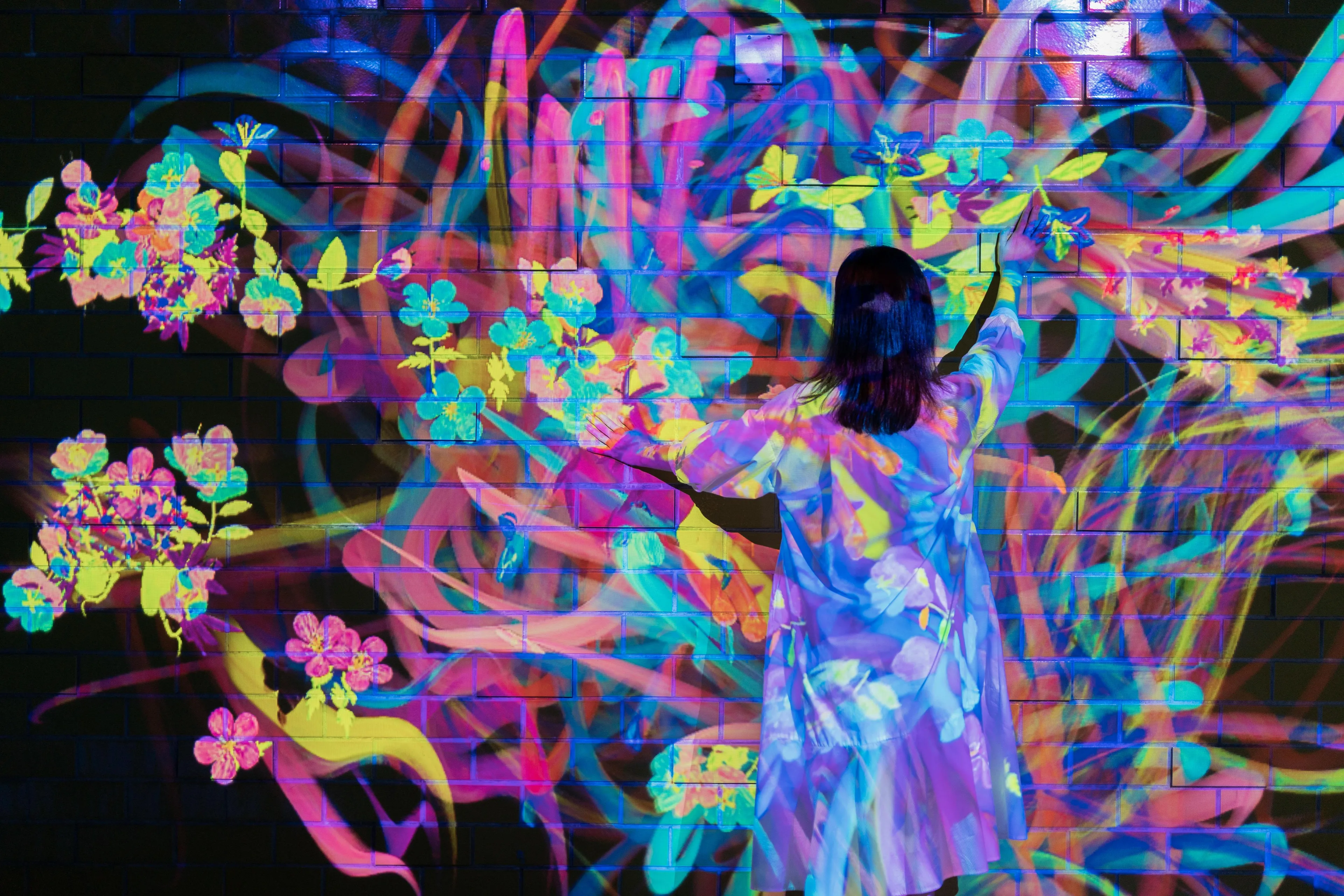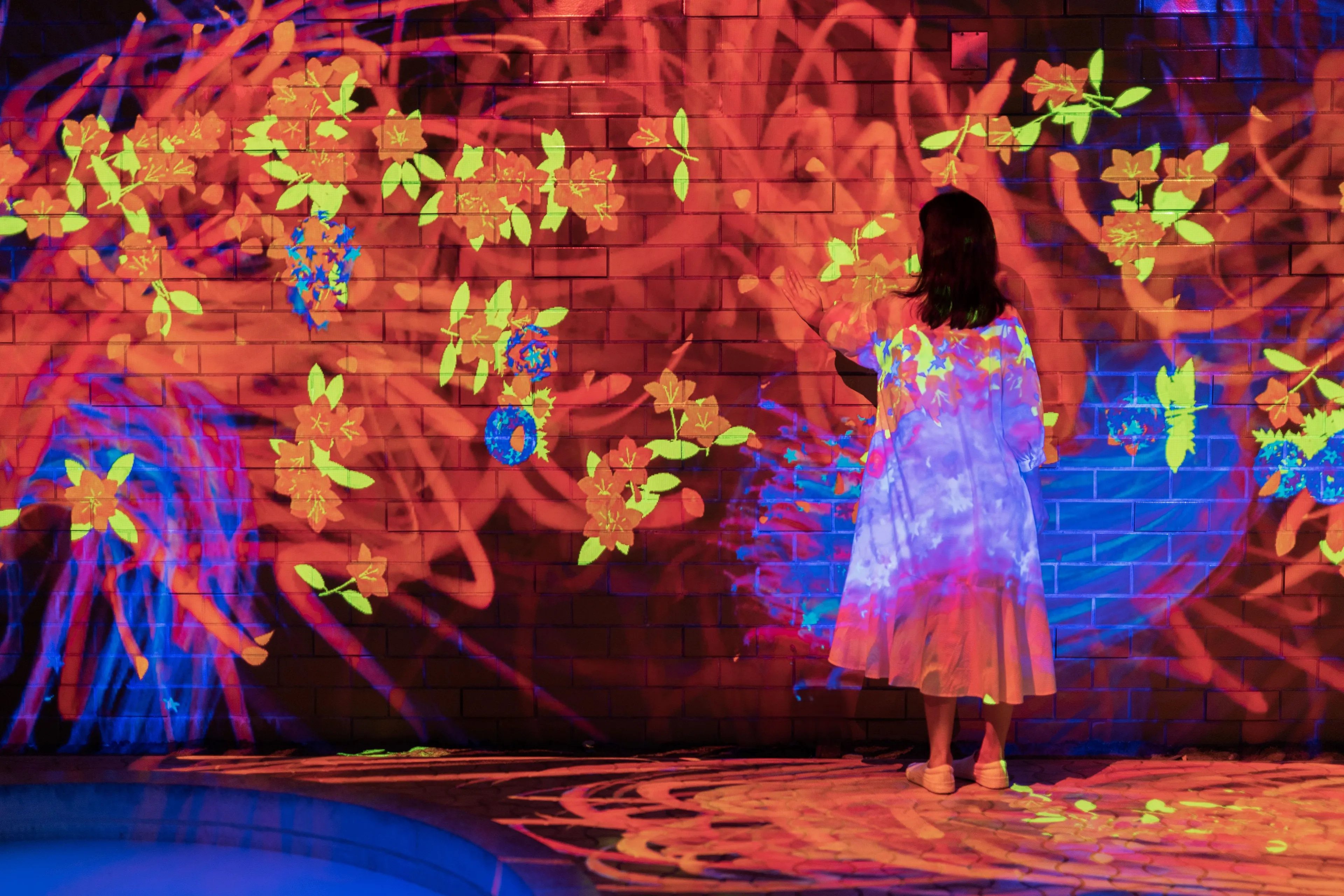 If people stand still or keep their hands on the walls without moving, more flowers bloom. If they move their hands or walk around, all of the flowers scatter in an instant.