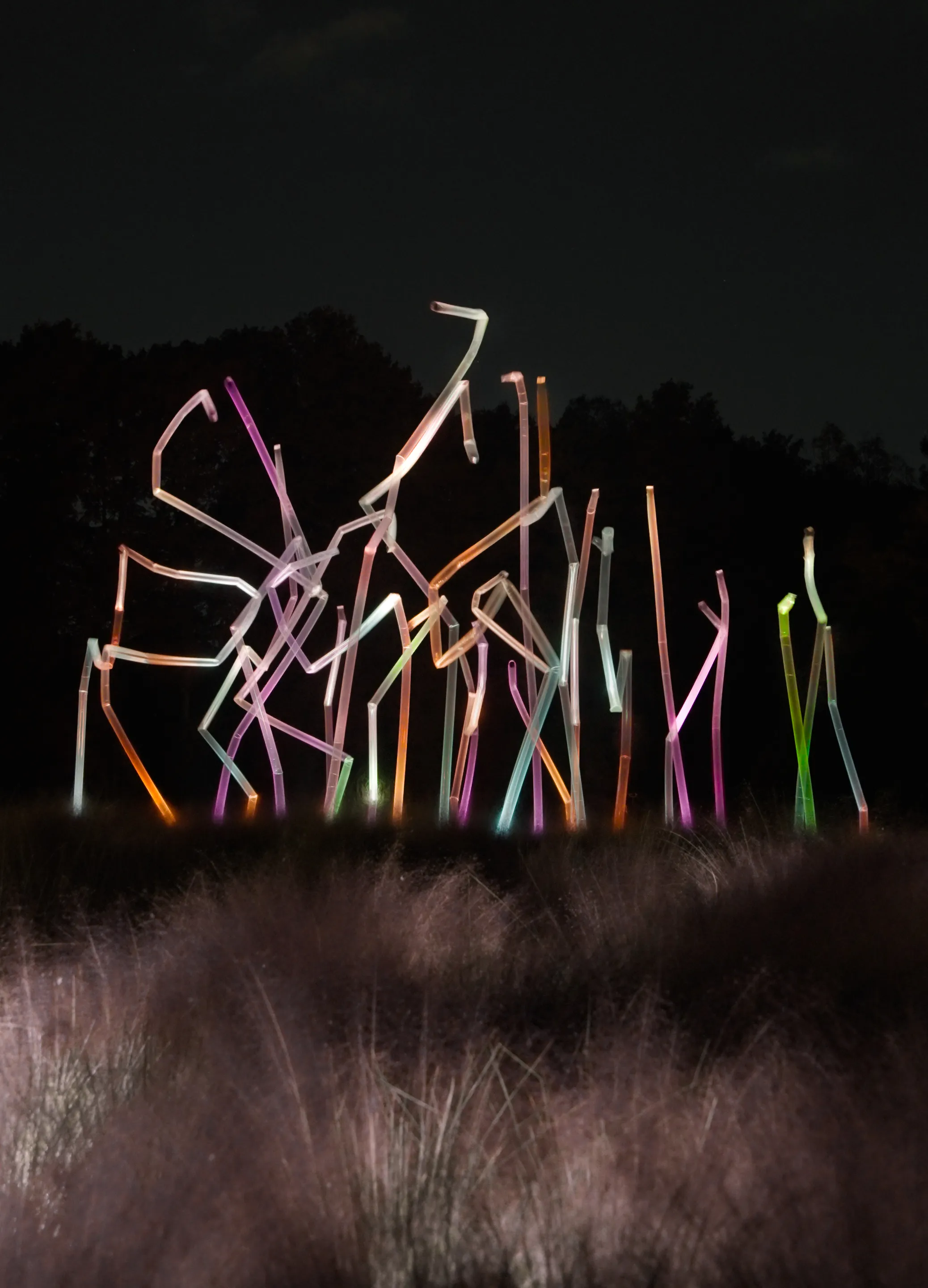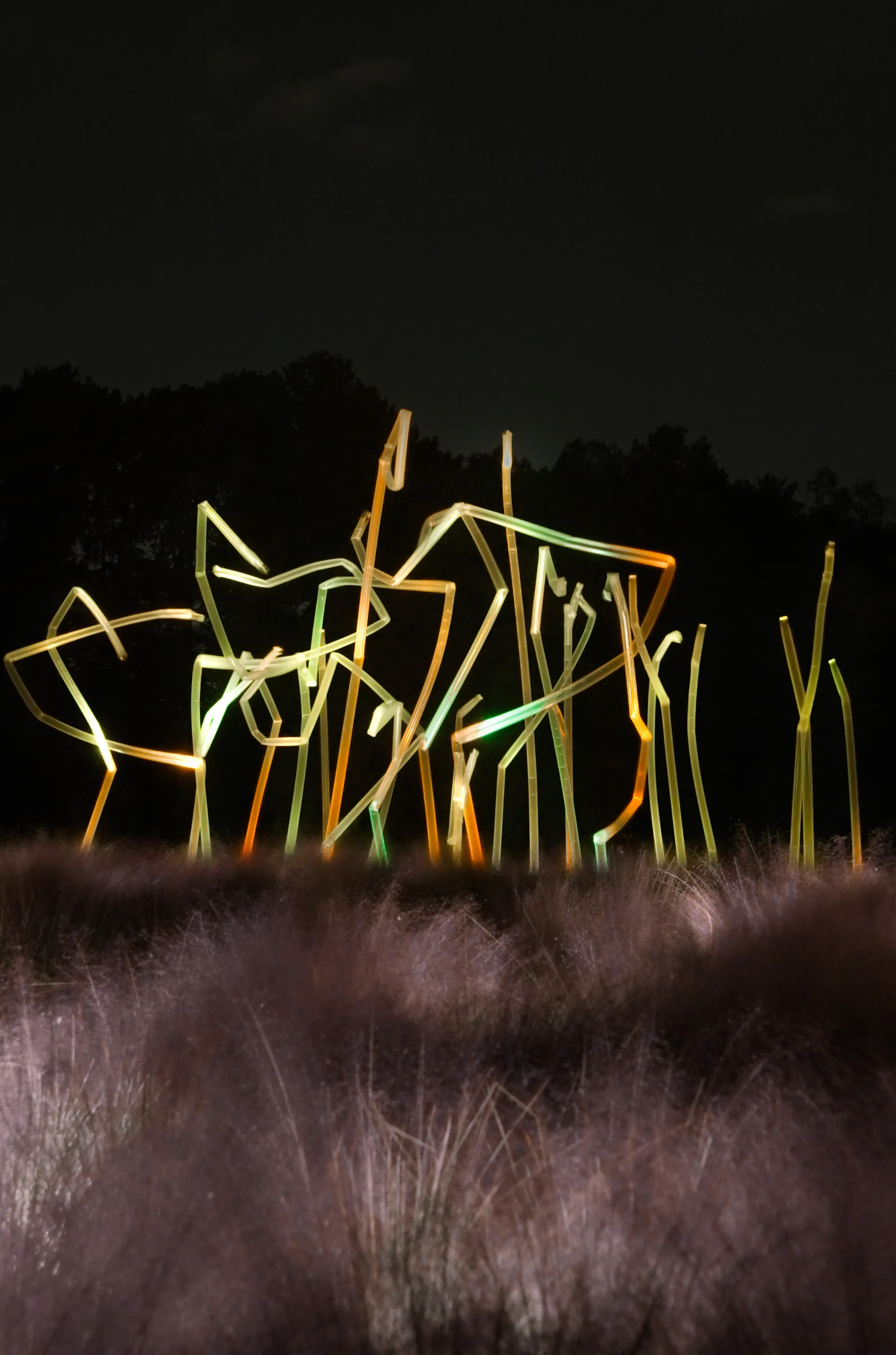 작품은 바람과 비, 습도 등 주변 환경의 영향을 많이 받아, 기둥의 수, 움직임, 높이와 크기가 크게 변화해 간다.