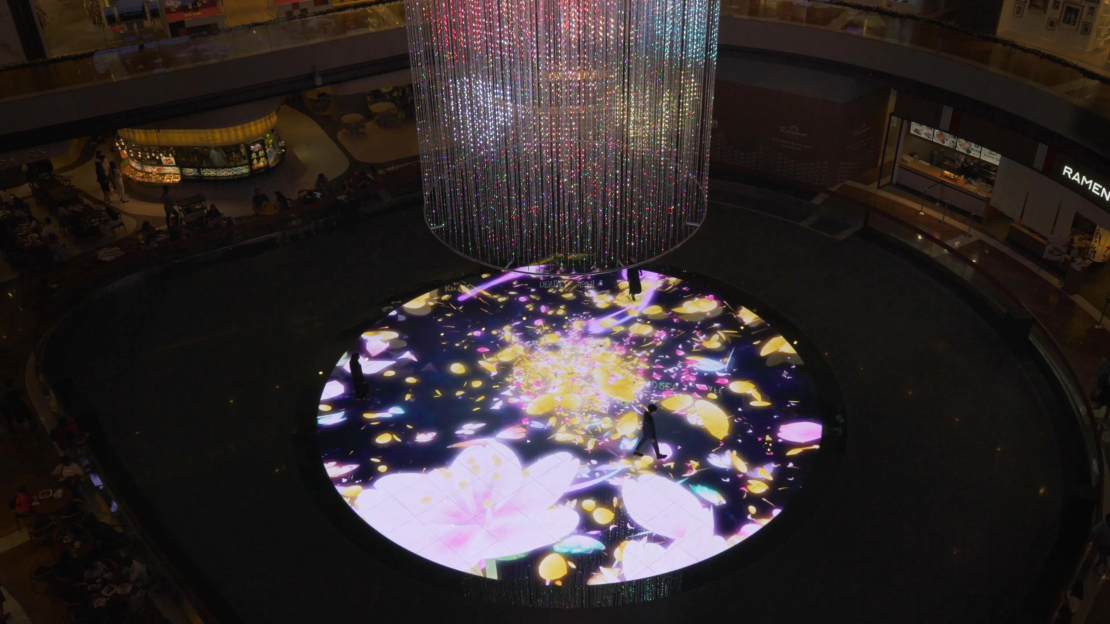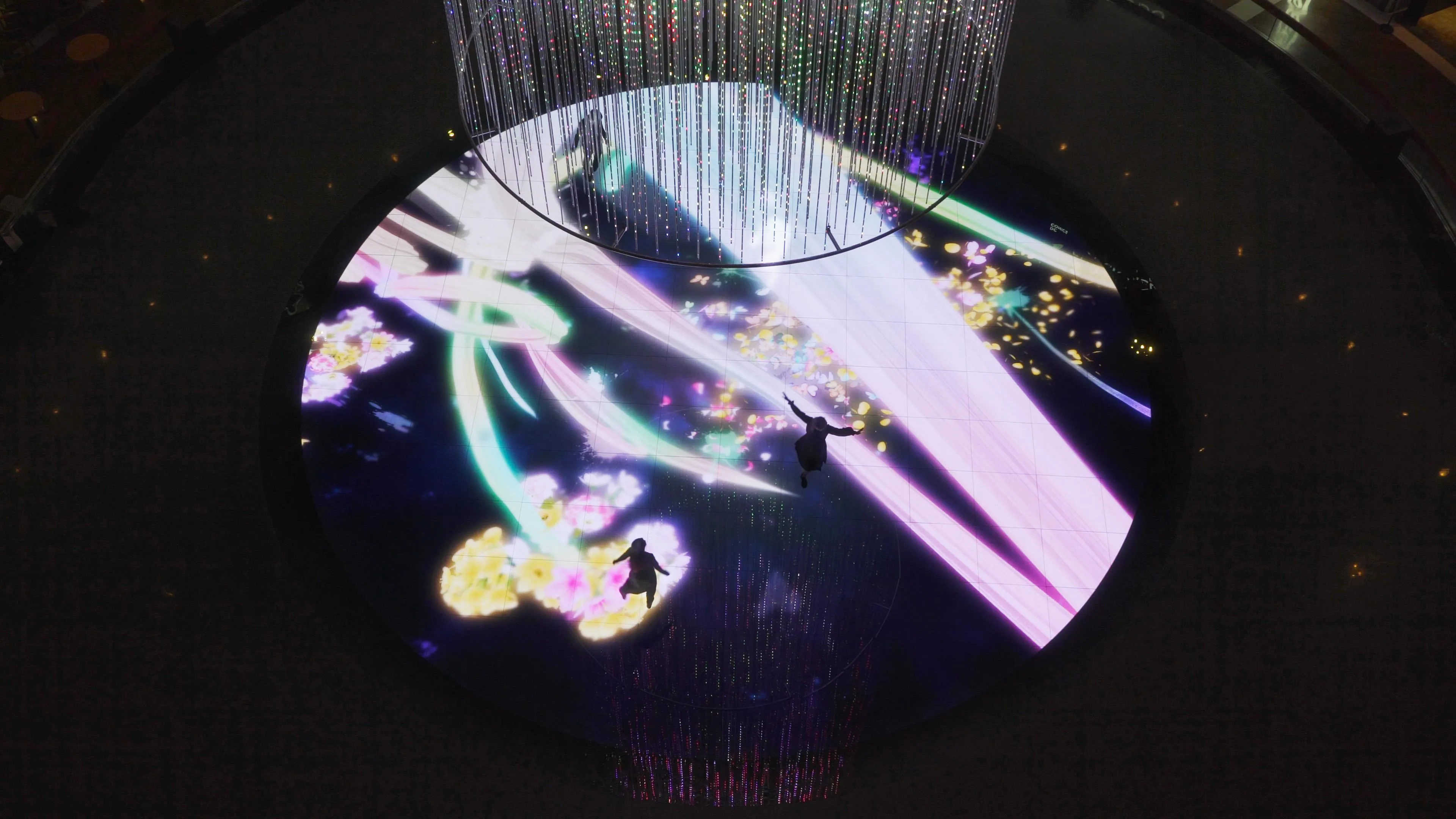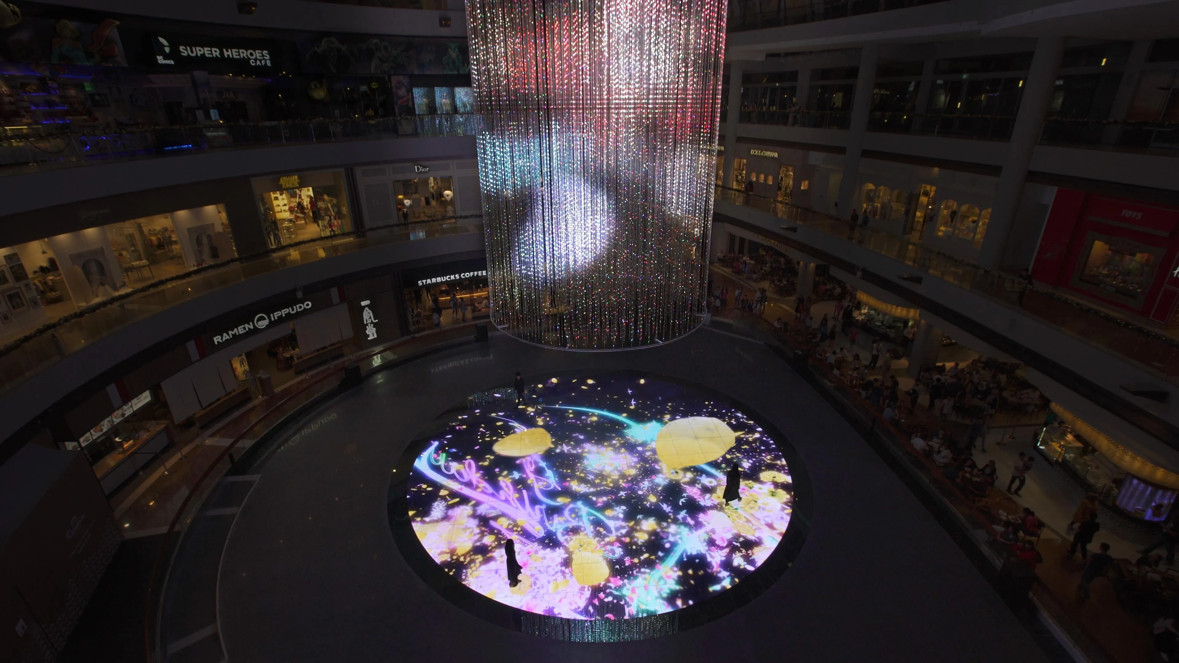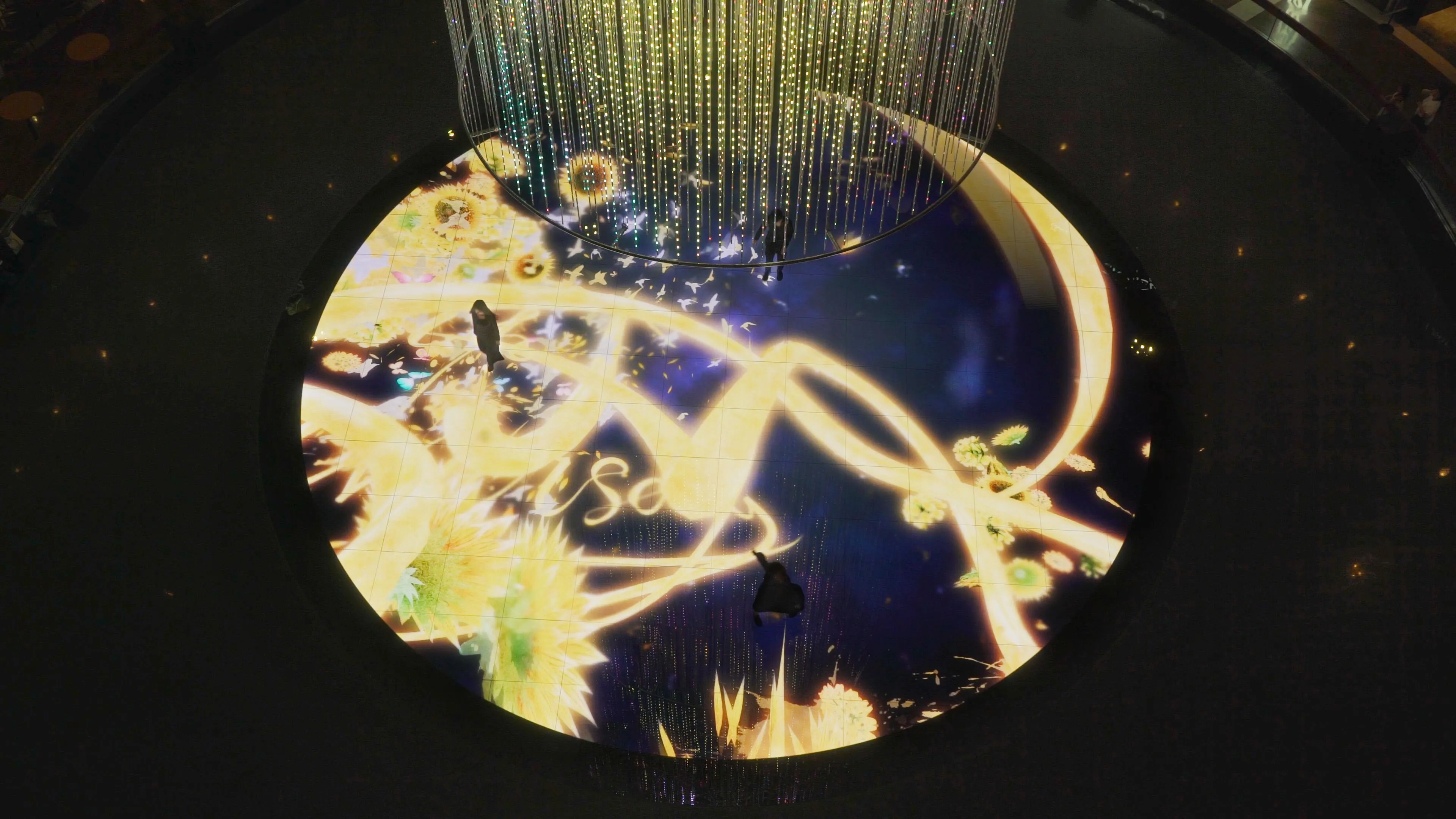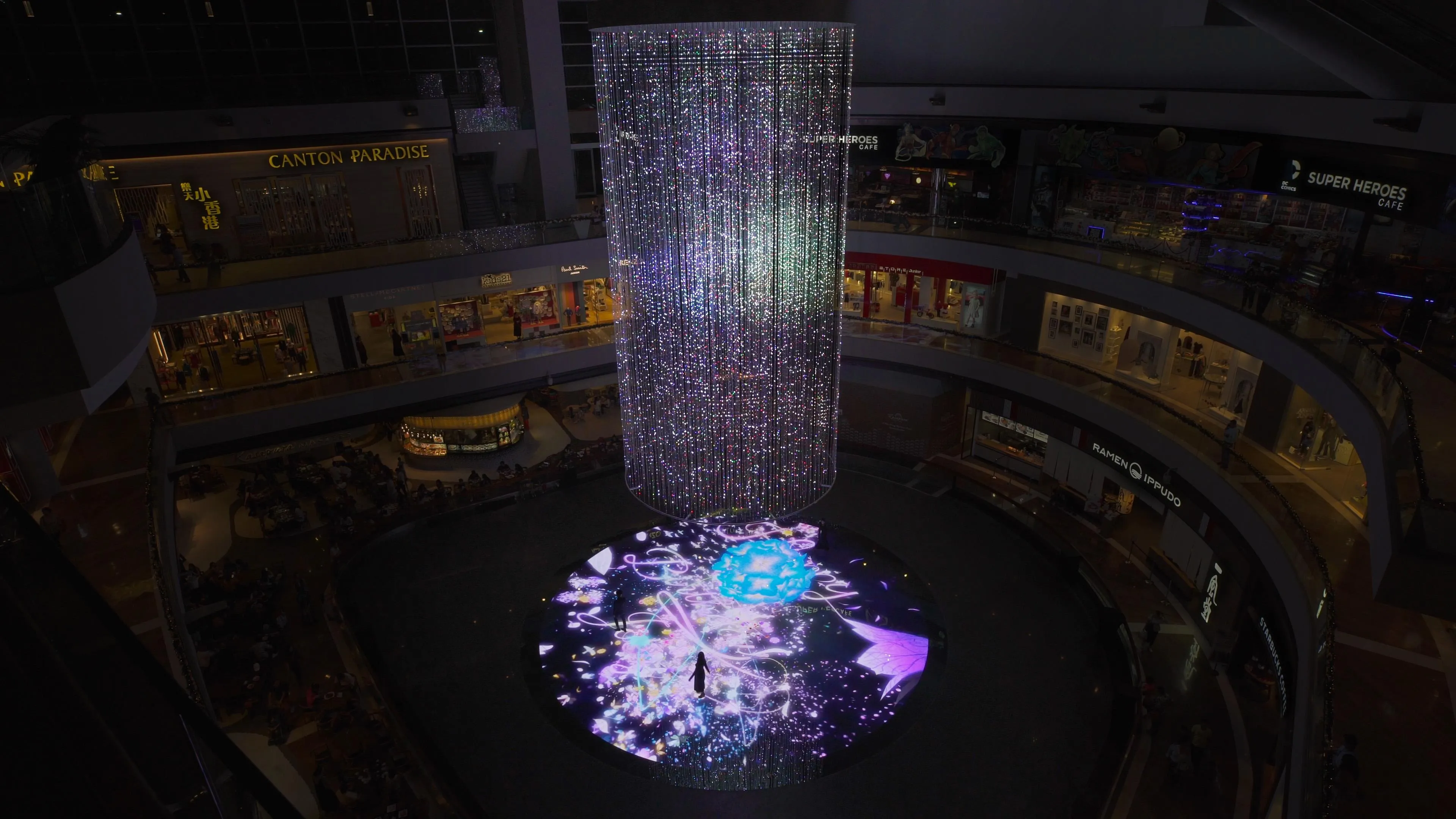 teamLab, 2017, Interactive Digital Installation + Light Sculpture, Happy Birthday:1 min 22 sec, Happy Anniversary / Will You Marry Me?: 1 min 44 sec, H: 19800 mm W: 15000 mm D: 15000 mm, Sound: DAISHI DANCE