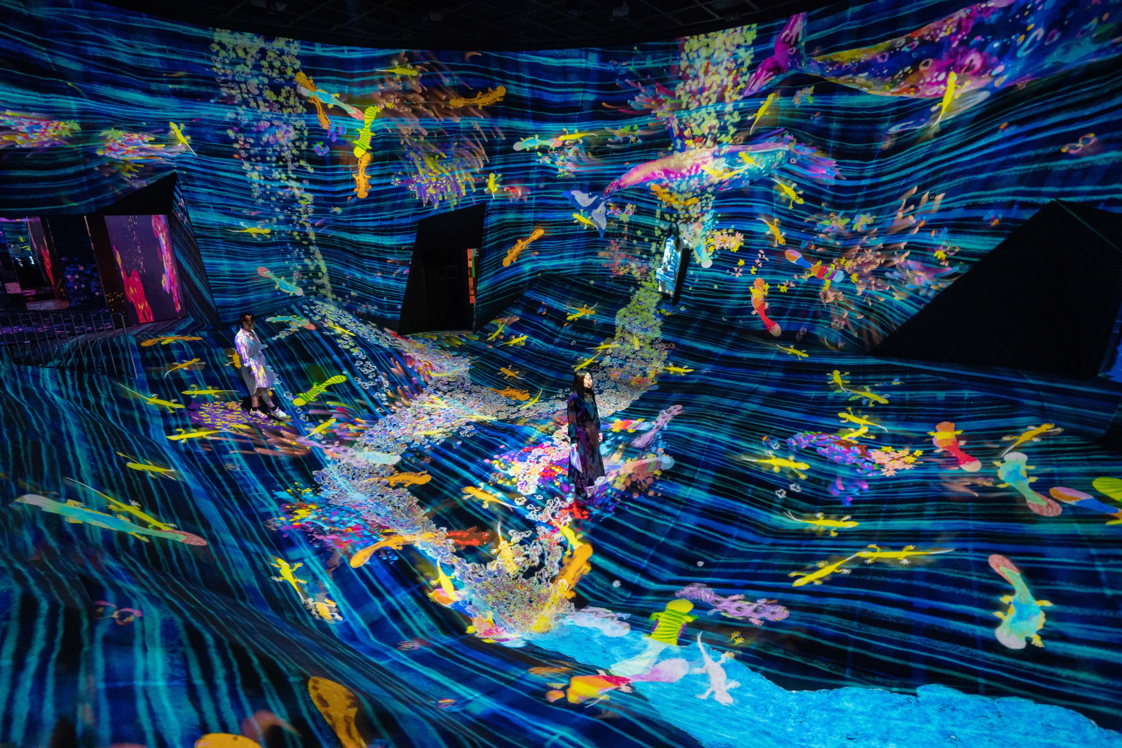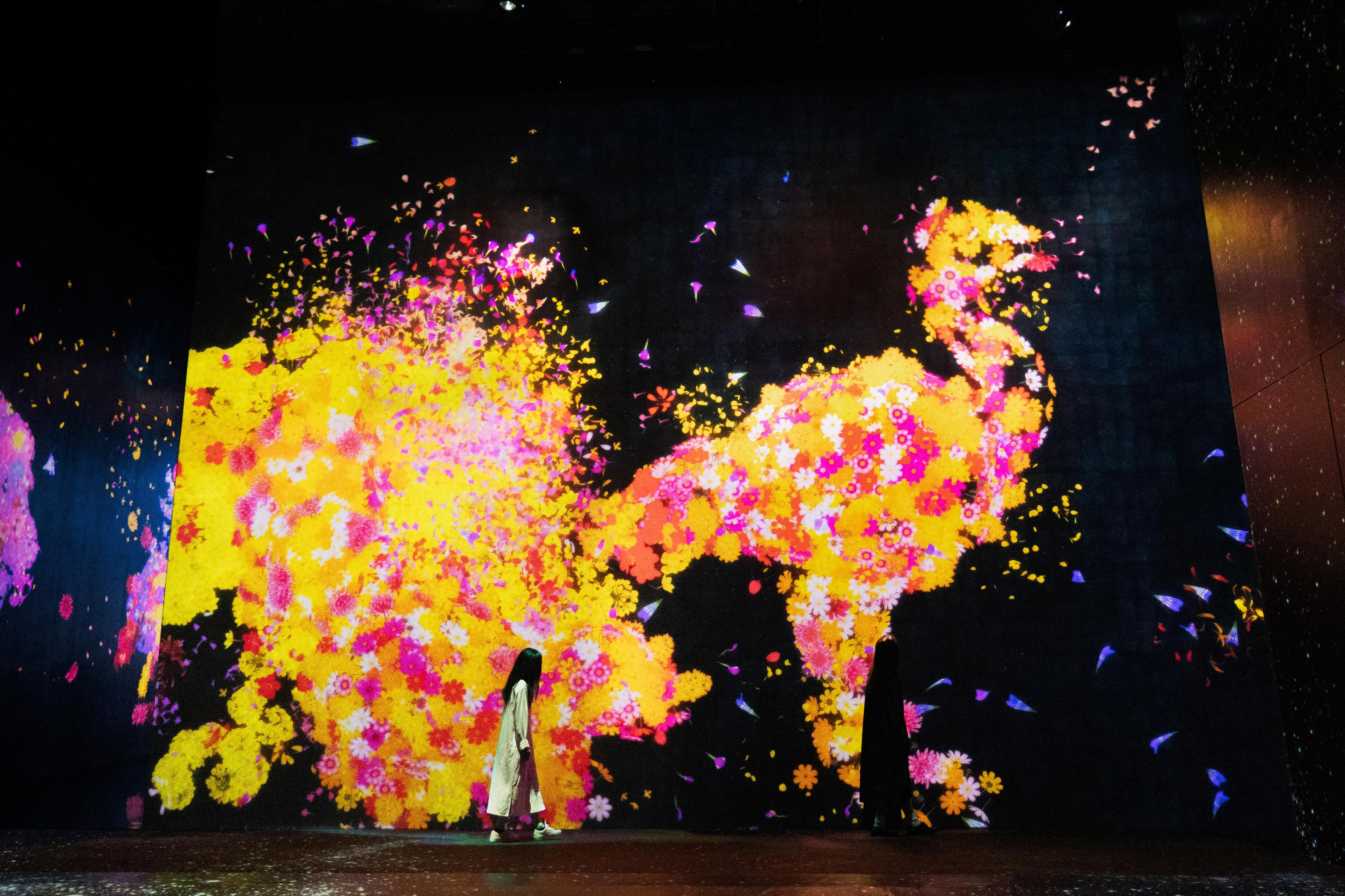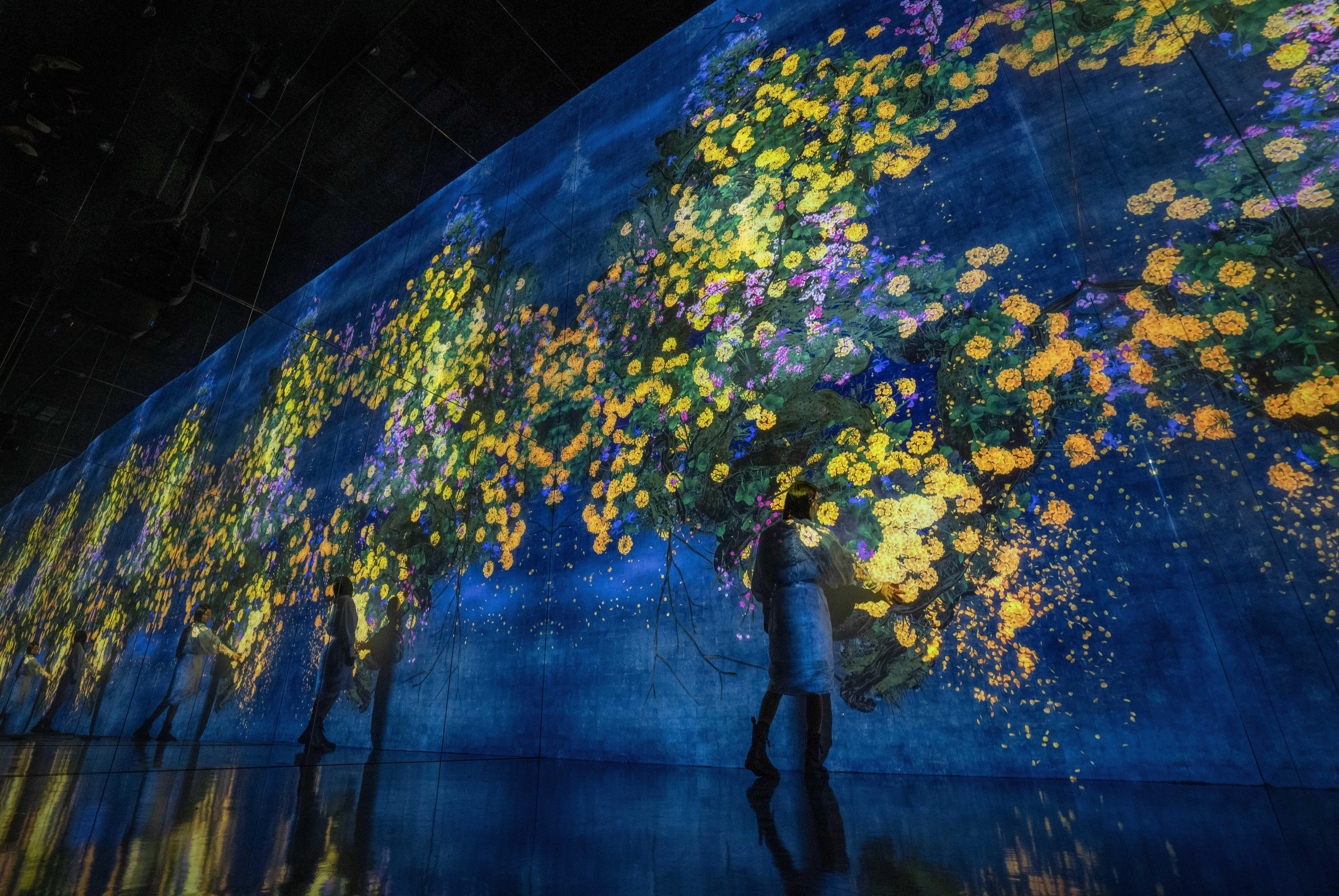 teamLab SuperNature is an extremely complex, three-dimensional interactive space with varying elevations that spans 5,000 square meters and is comprised of enormous 8-meter-tall works by art collective teamLab. It is a “body immersive” art space centered around a group of artworks that aim to explore new perceptions of the world and the continuity between humans and nature.