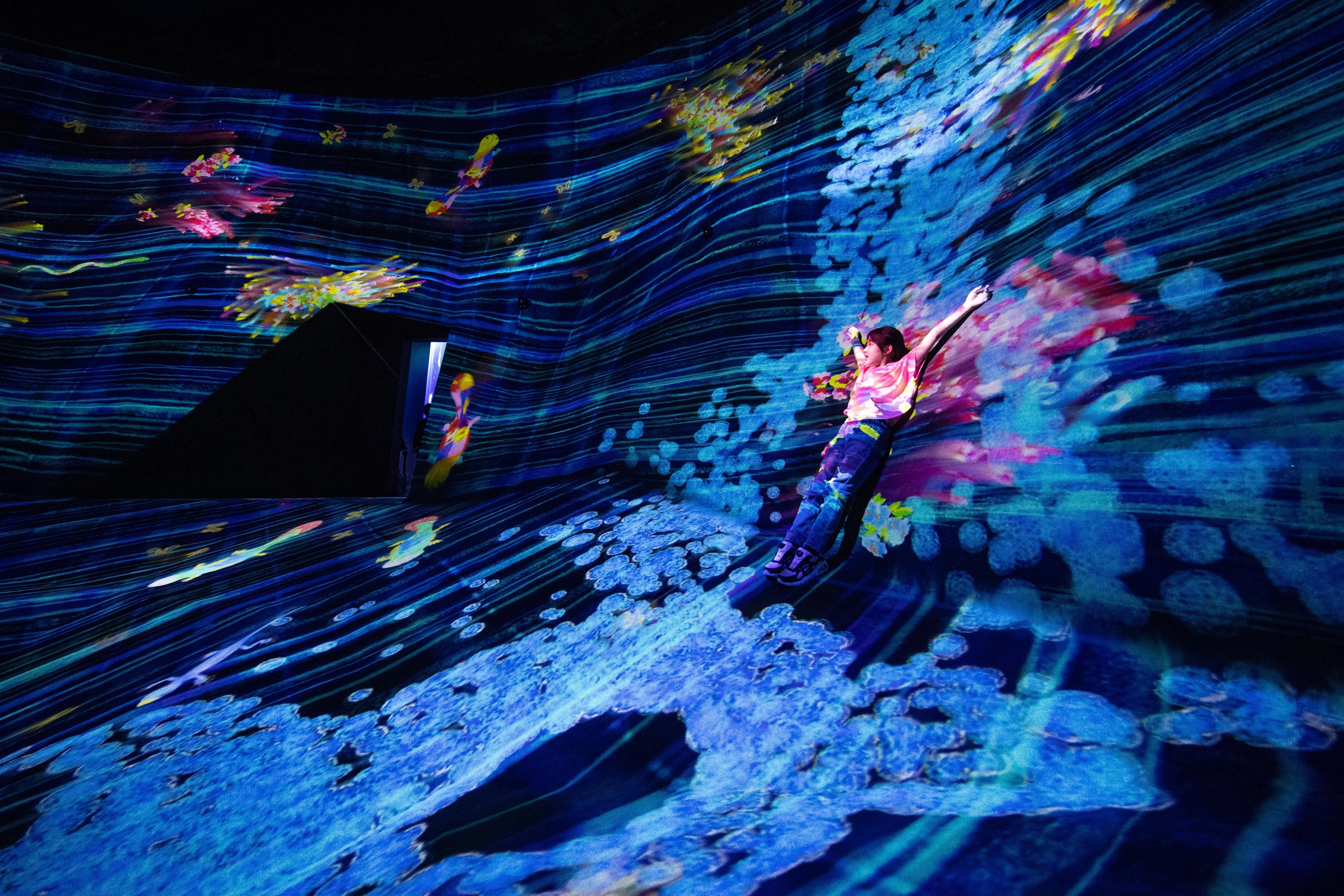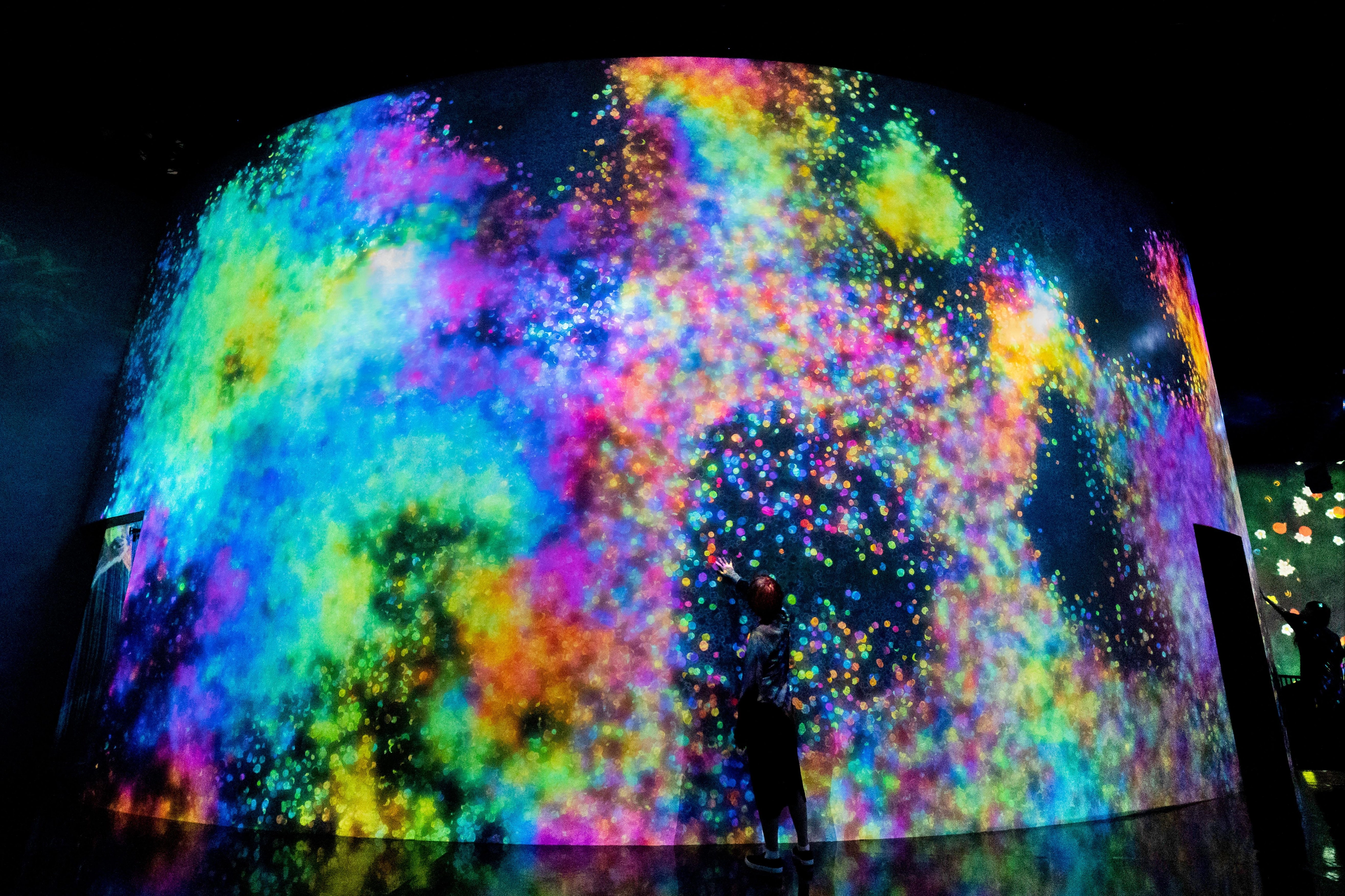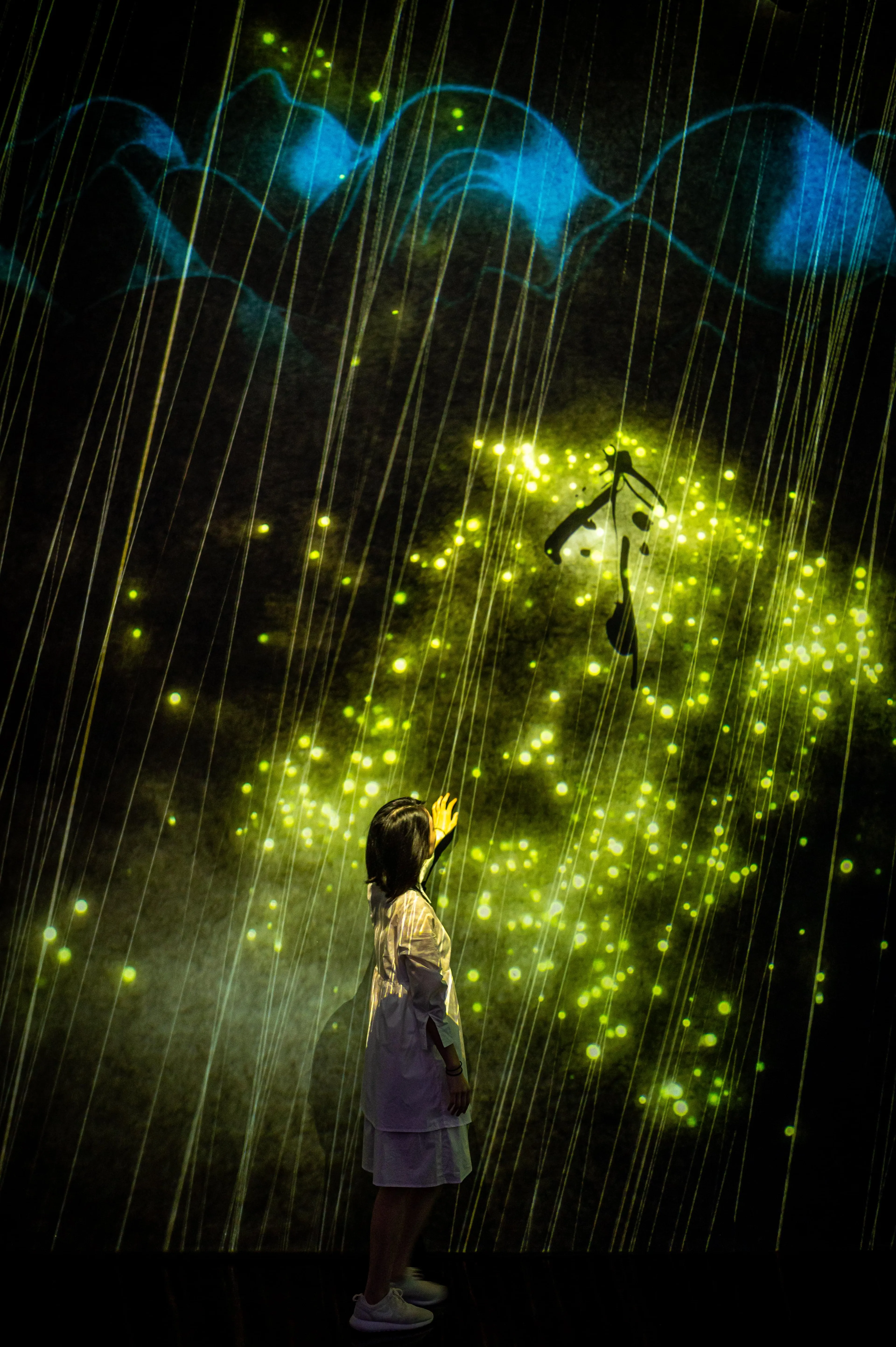 teamLab SuperNature is an extremely complex, three-dimensional interactive space with varying elevations that spans 5,000 square meters and is comprised of enormous 8-meter-tall works by art collective teamLab. It is a “body immersive” art space centered around a group of artworks that aim to explore new perceptions of the world and the continuity between humans and nature.