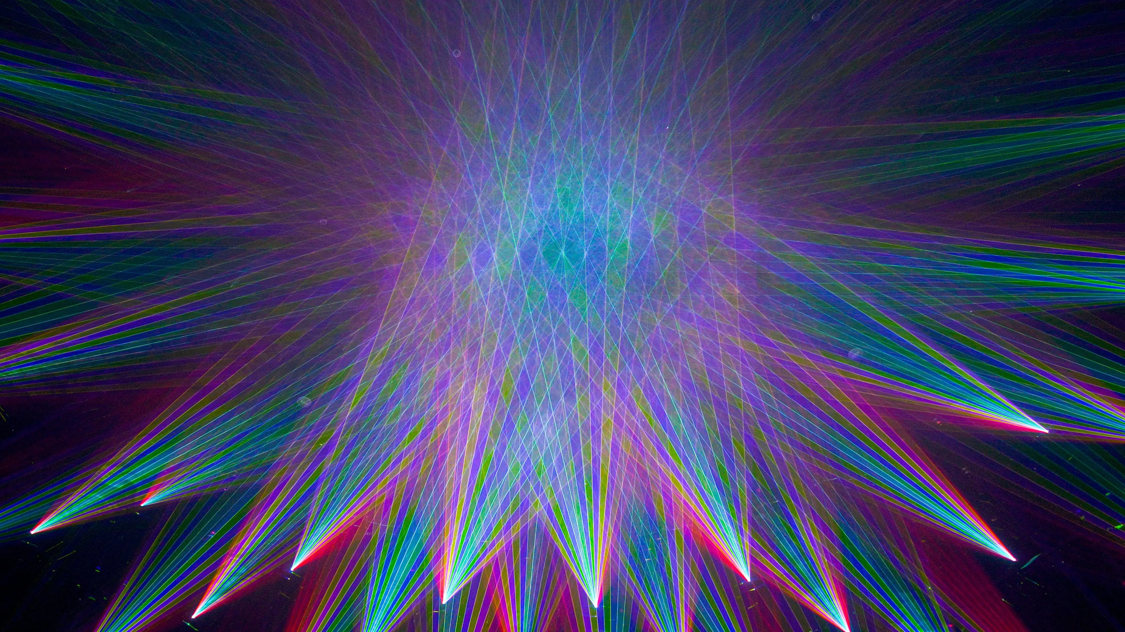 The space is filled with spheres of free floating light. People move through the spheres and enter the space. When people move through or strike them, the spheres change color, and that color resonates out. The spheres around that sphere change color tone and in turn resonate out the color in three-dimensions to nearby spheres.