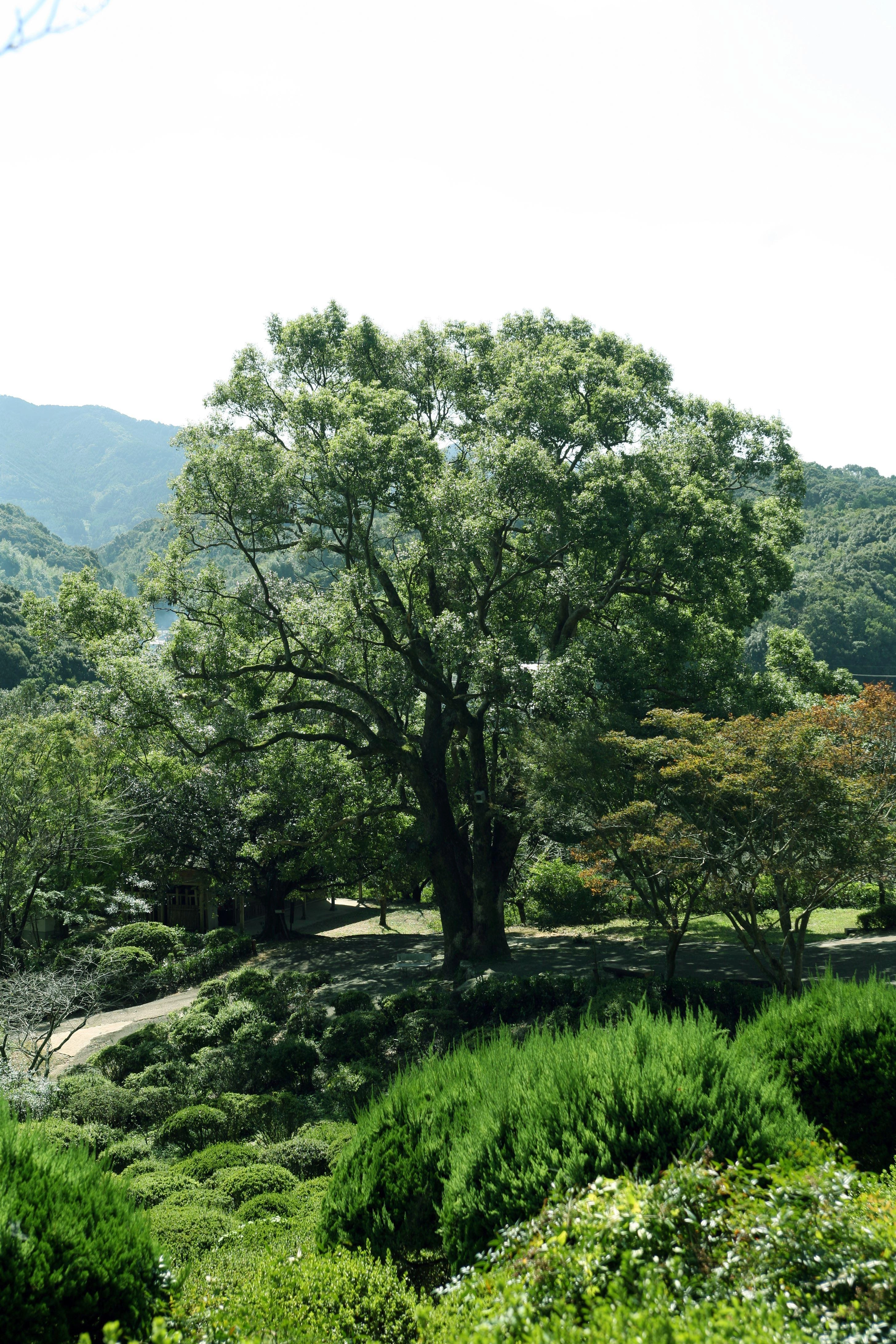 The 500,000 square meter Mifuneyama Rakuen Park was created in 1845, during the end of the Edo period. Sitting on the borderline of the park is the 3,000-year-old sacred Okusu tree of Takeo Shrine, which is Japan’s 7th largest. Also in the heart of the garden is another 300-year-old sacred tree. Knowing the significance of this, our forebears turned a portion of this forest into a garden, utilizing the trees of the natural forest. The border between the garden and the wild forest is ambiguous, and when wandering through the garden, before they know it, people will find themselves entering the woods and animal trails.