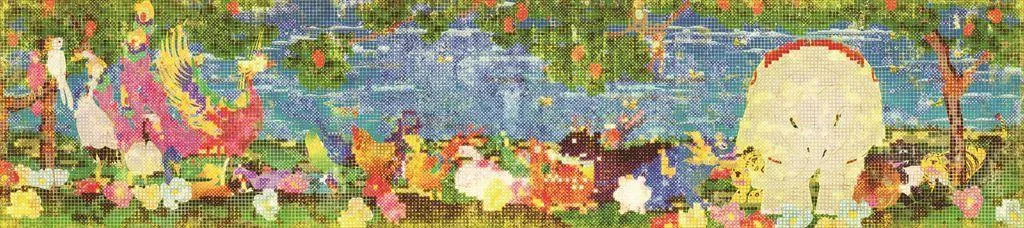 Itō Jakuchū (1716–1800) was an early modern Japanese painter who was active in Kyoto in the mid-Edo period. Jakuchū has left us with a unique style of painting in which the surface is made up of a grid of tens of thousands of squares that are individually colored. This work was inspired by the screen paintings Birds, Animals, and Flowering Plants and Trees, Flowers, Birds and Animals.