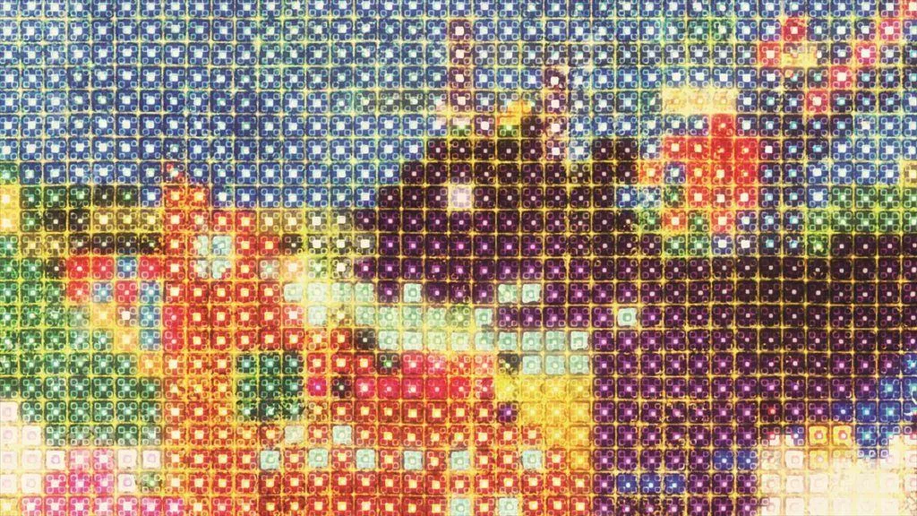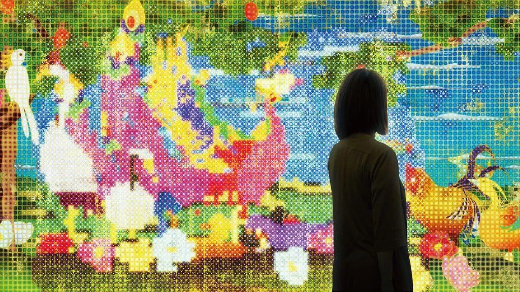 In addition, parts of the image squares are filled in with the most frequent color in the squares, forming an abstract world. Furthermore, when a visitor stands in front of the work, the squares near them are similarly painted. The plants and animals move in space, but are abstracted by the fixed squares on-screen, creating a new visual expression through pixel art.