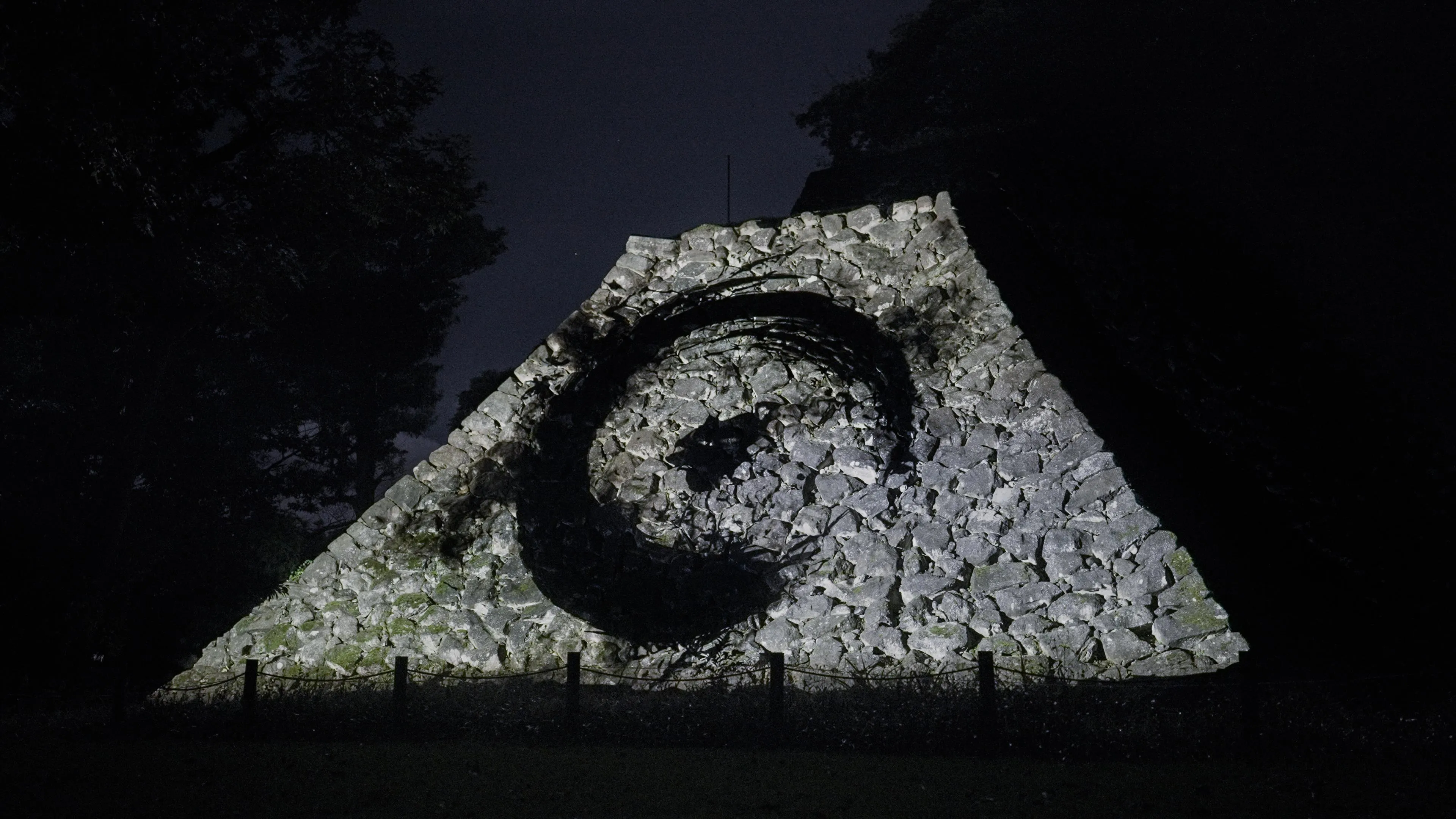 Among the stone walls of Kanazawa Castle there is a north-facing stone wall, Higashi no Maru (built around 1592-1595), that was constructed with the oldest technique of Nomenzumi (a method of stacking natural stones as they are). In this artwork, Enso is drawn infinitely on this Stone Wall.