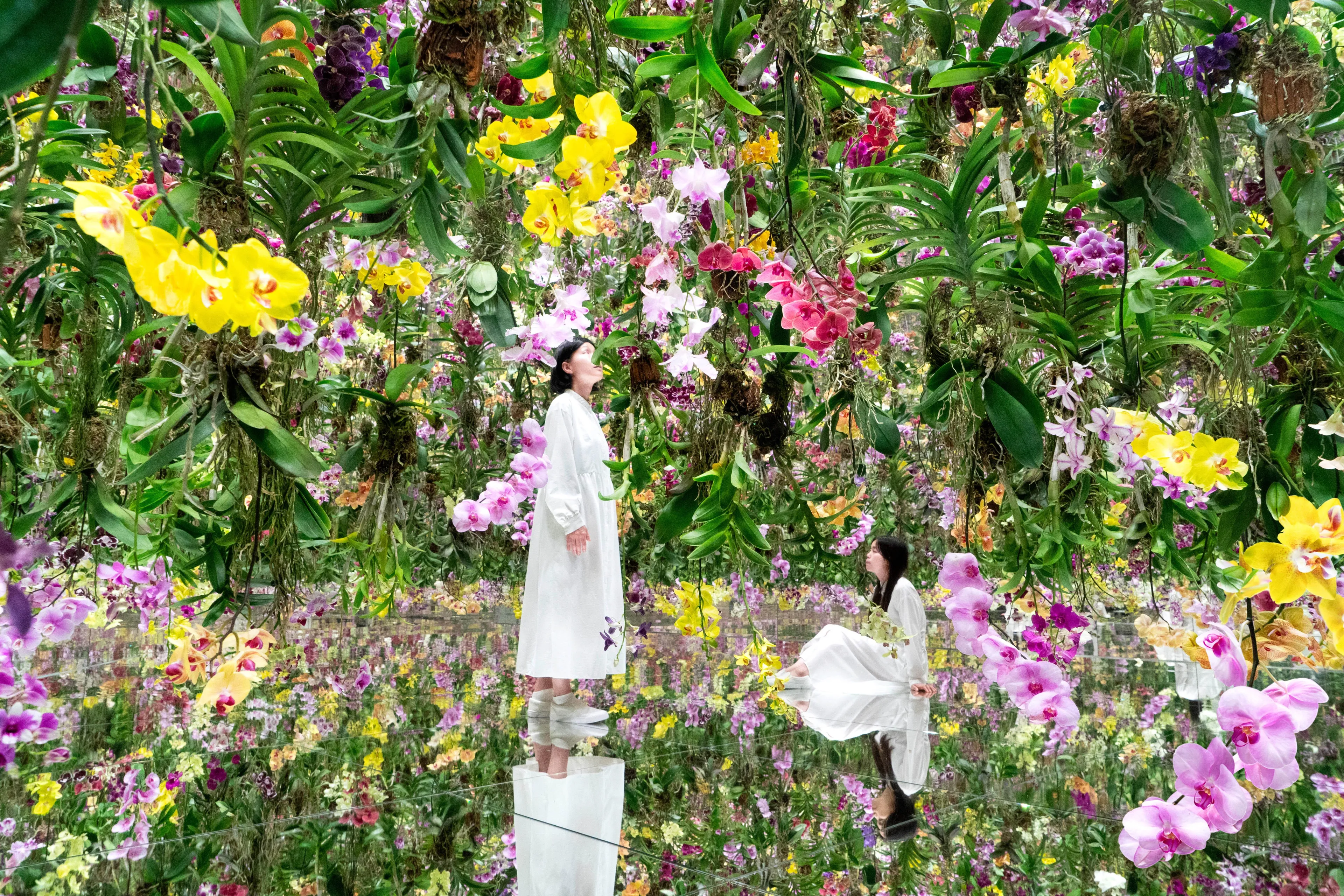 Orchids are known to have co-evolved with certain pollen-carrying insects. The flowers’ aromas become stronger at the time of day when the partner insects are active. Because of this, the scent of the artwork space changes each moment between morning, day, evening, and night. Since many of the orchids in this work are partnered with nocturnal insects, the tightly-packed orchids produce a powerful fragrance at night.