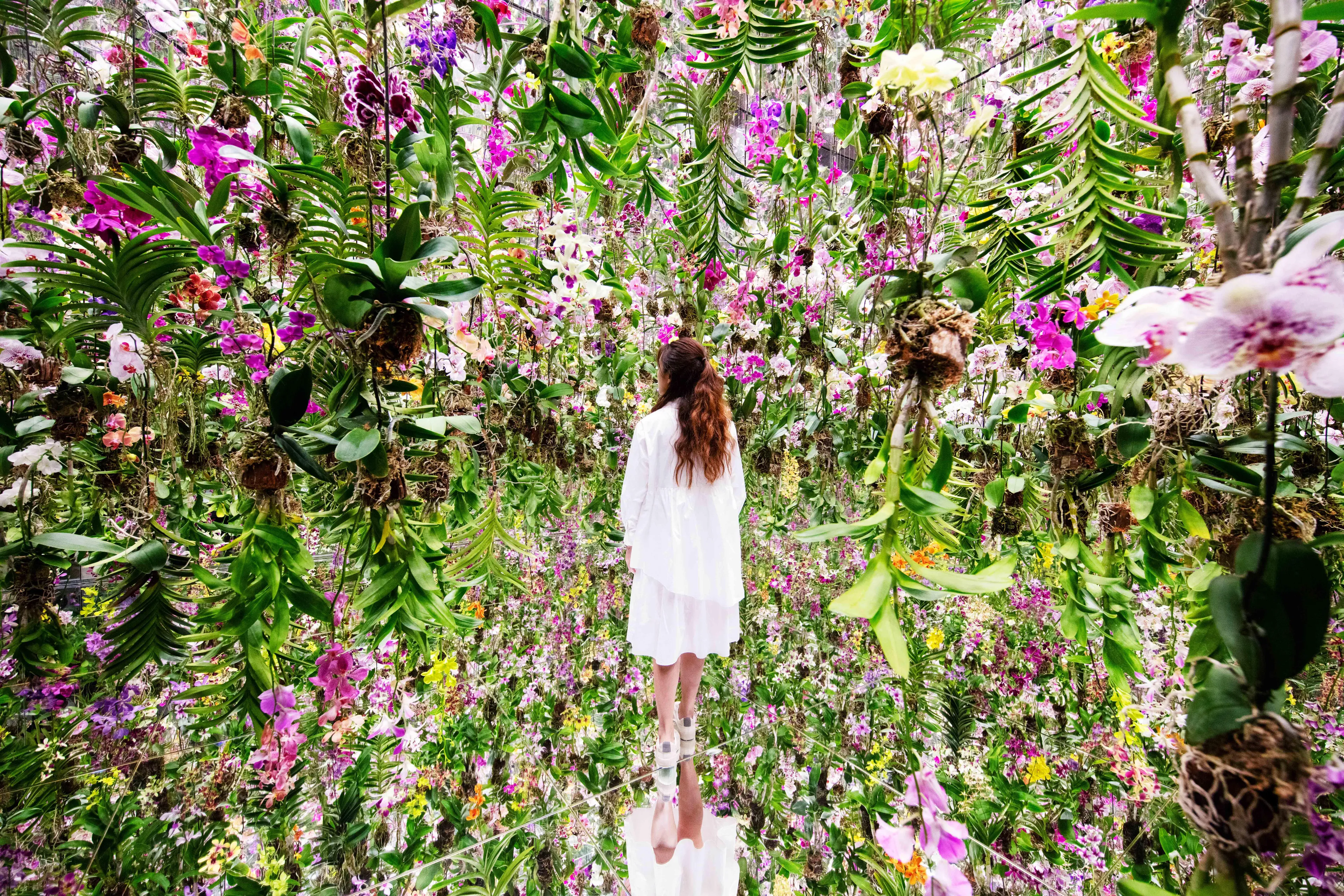 In this work, people immerse themselves in flowers, becoming one with the garden. When someone continues to look at a flower closely, the flower looks back. At that moment, they become one with the flower and may truly see flowers for the first time.