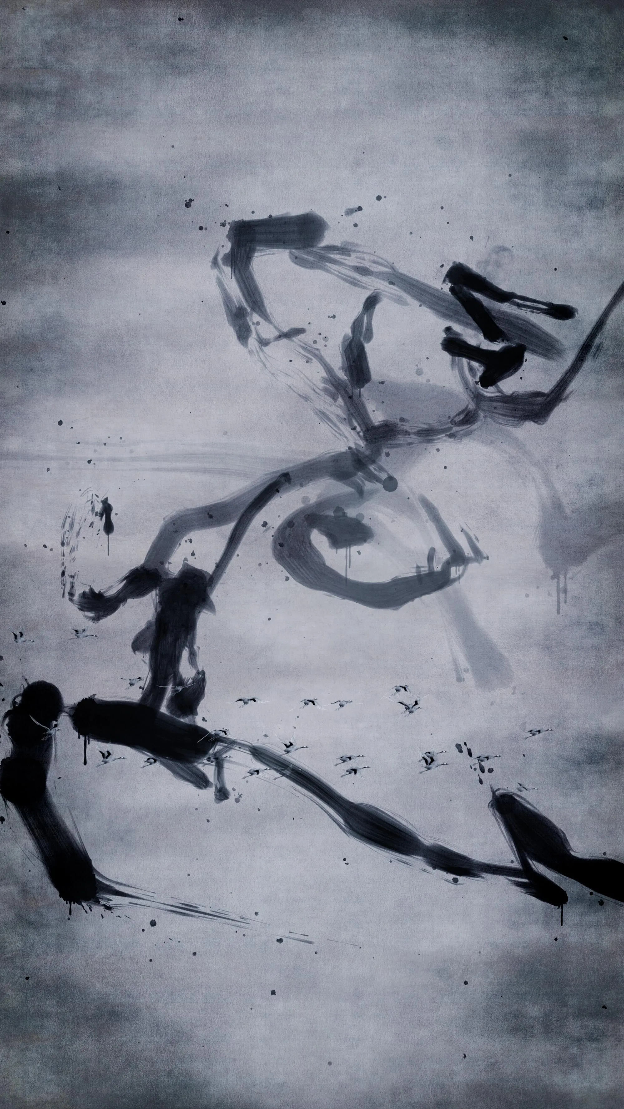 Spatial Calligraphy is calligraphy drawn in space, a form of calligraphy that teamLab has been exploring since it was founded. The artwork reconstructs calligraphy in three dimensional space to express the depth, speed and power of the brush stroke, and that calligraphy is then flattened using the logical structure of space that teamLab calls Ultrasubjective Space. The calligraphy shifts between two and three dimensions.