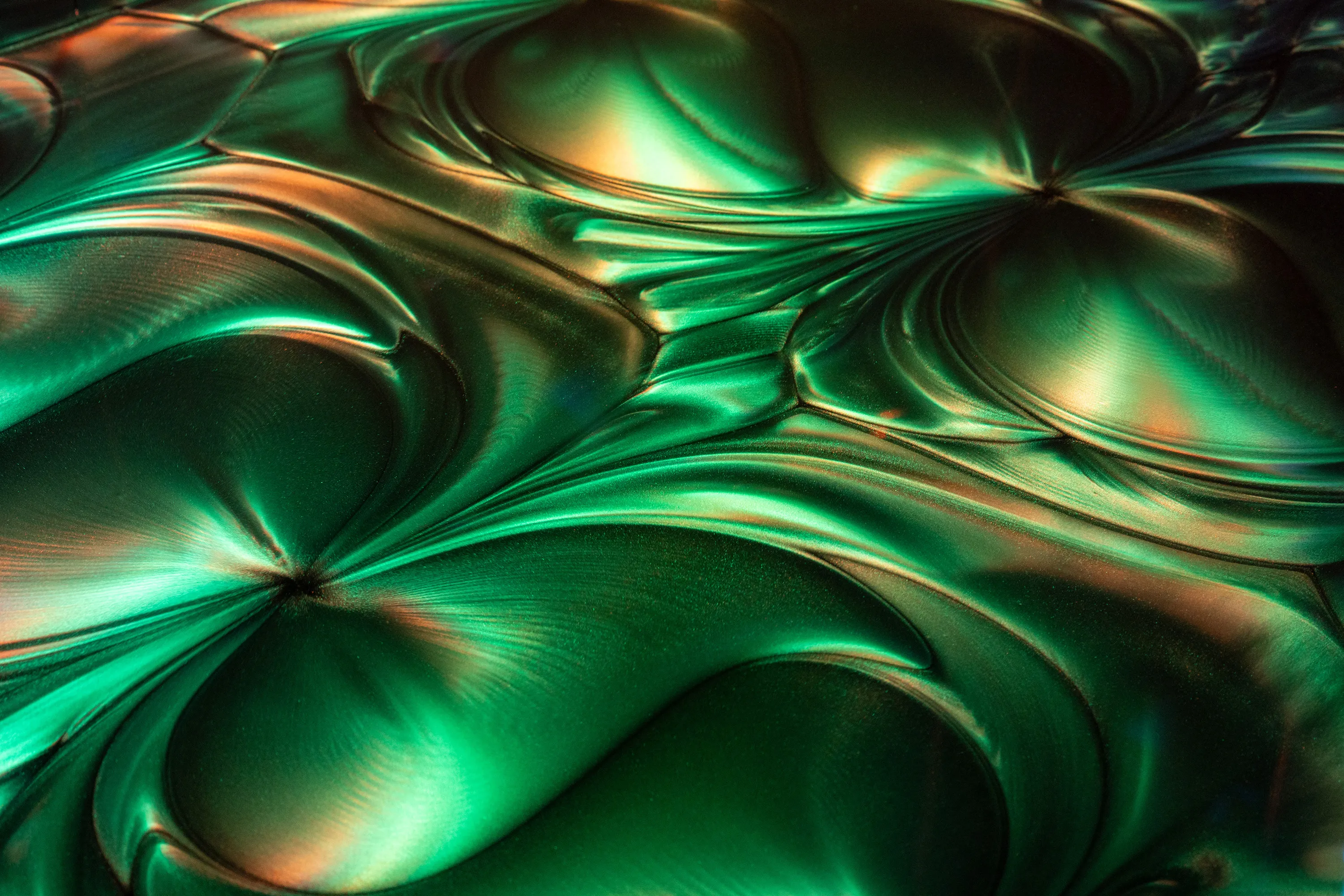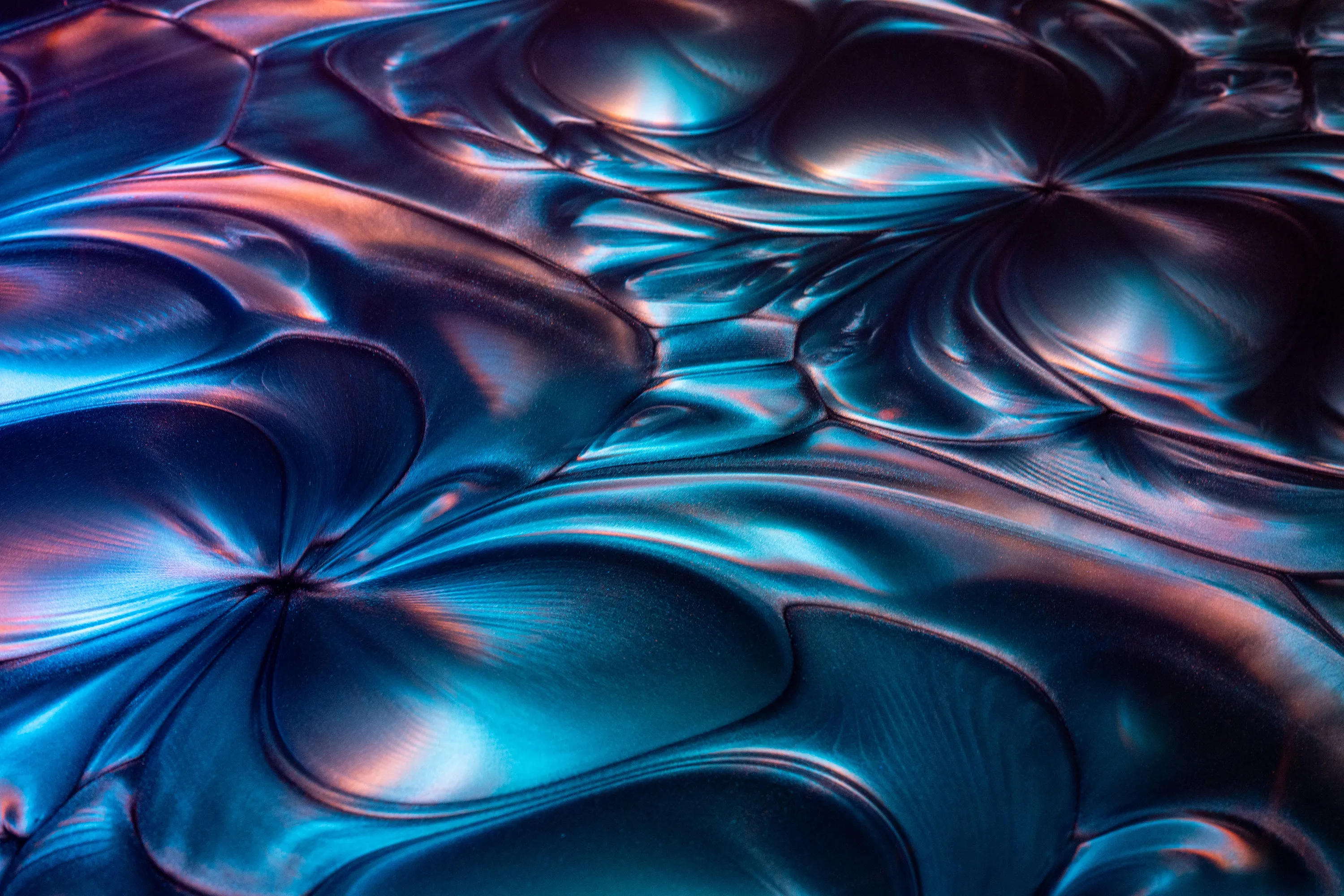 An abstract painting is drawn by countless cell-like existences that are destroyed by artificial intervention.