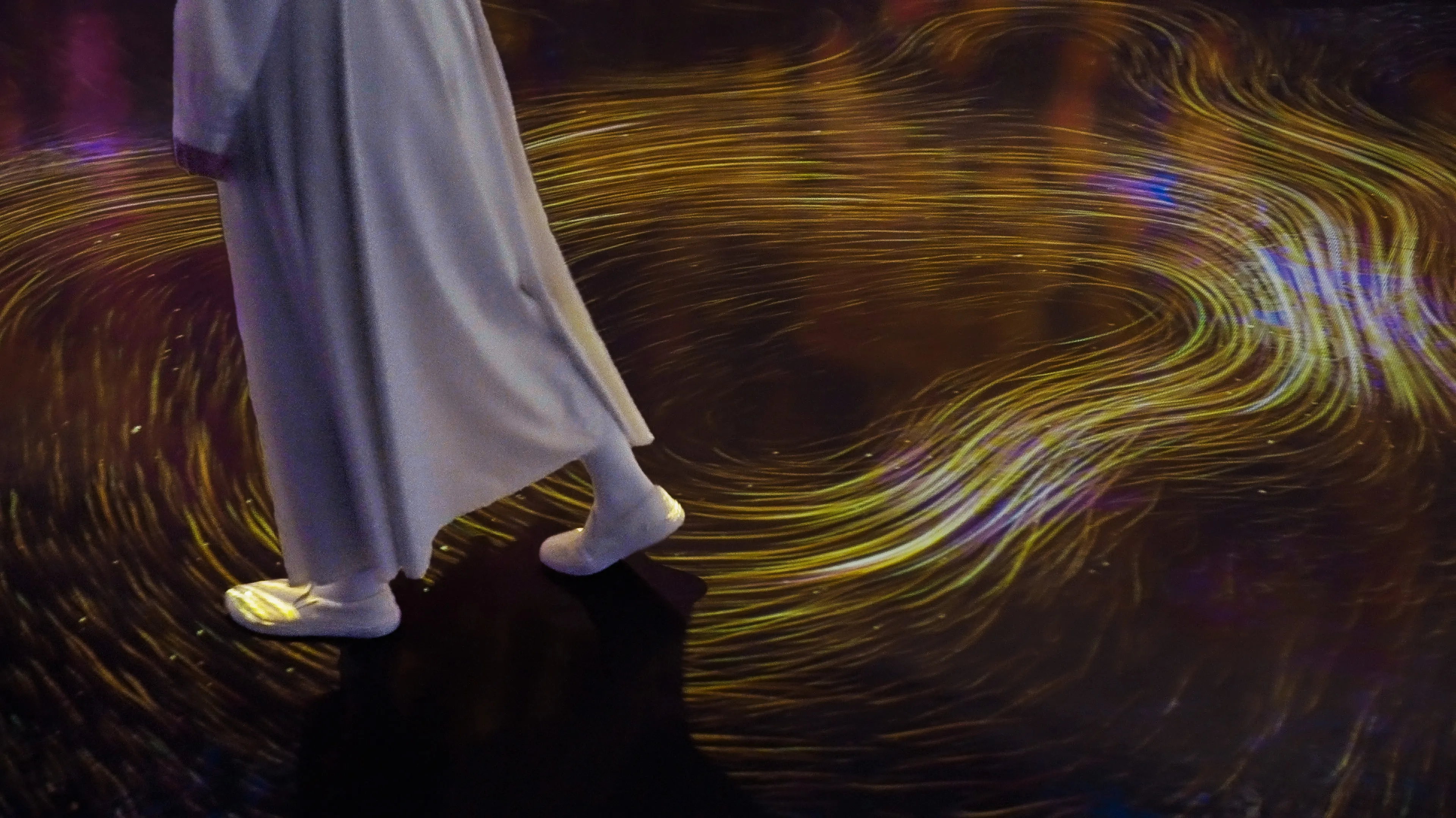 teamLab, 2025, from the series Moving Creates Vortices and Vortices Create Movement, 2017-, Interactive Installation, Endless, Relational Sound: teamLab
