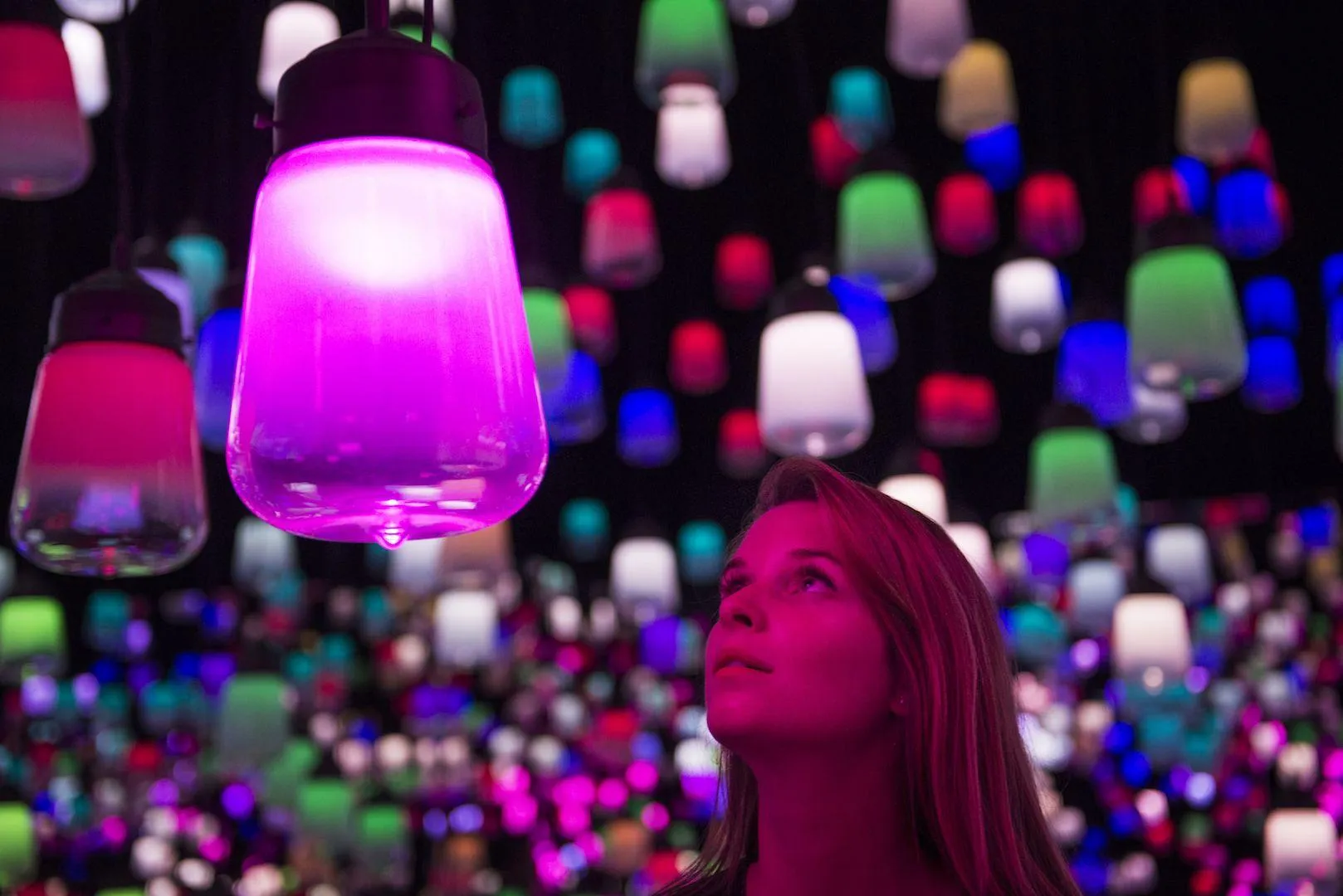 This is an artwork about the continuity of light, which is generated as people move around freely and interact with the lamps.
