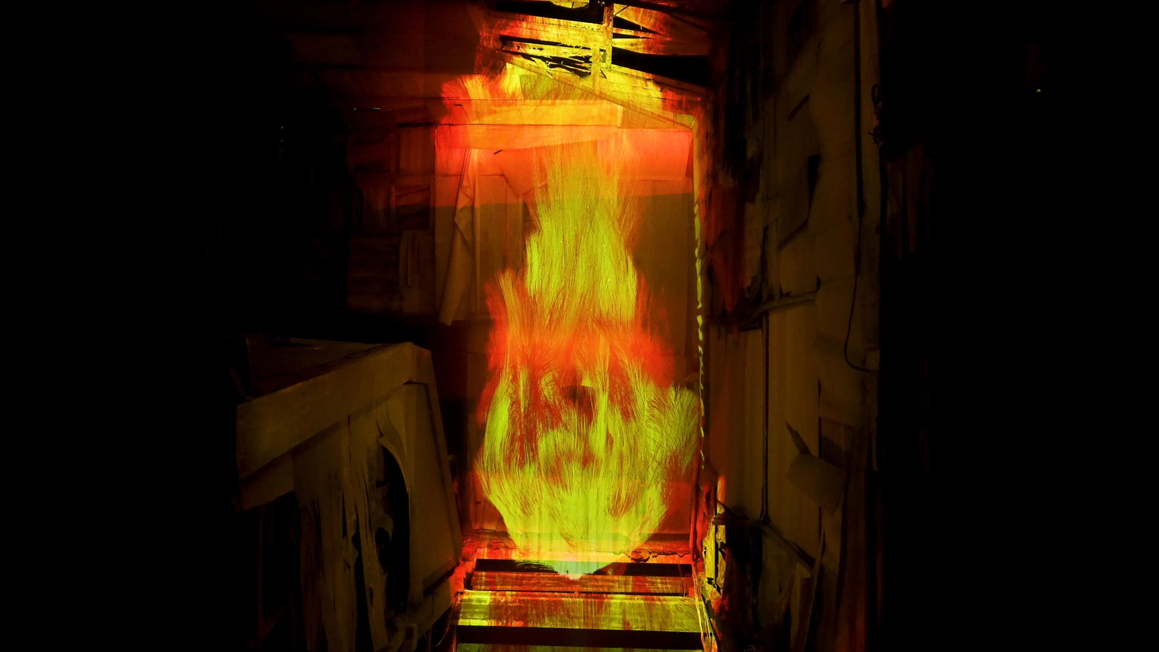 Lines are drawn in relation to the flow of combusting gas, and the flames are created by the accumulation of those lines in three-dimensions. The lines are then “flattened” using what teamLab considers to be Ultrasubjective Space to represent the flames.