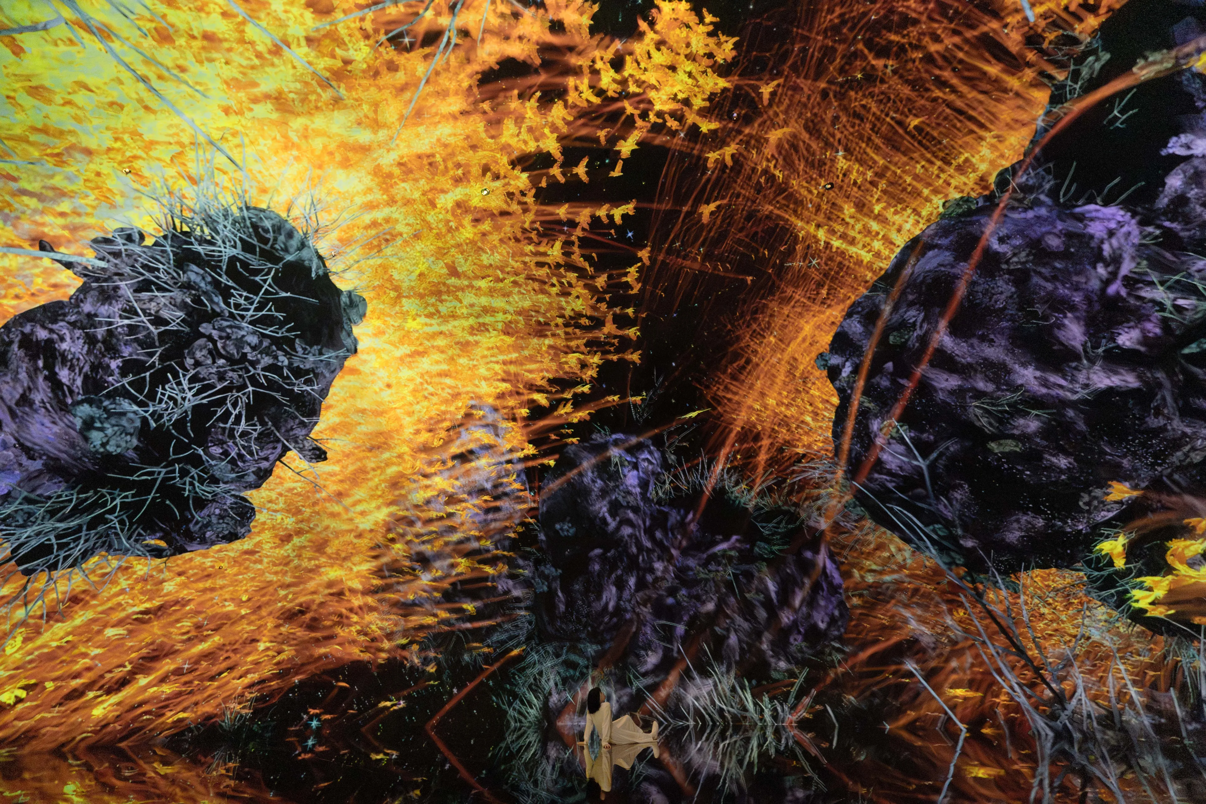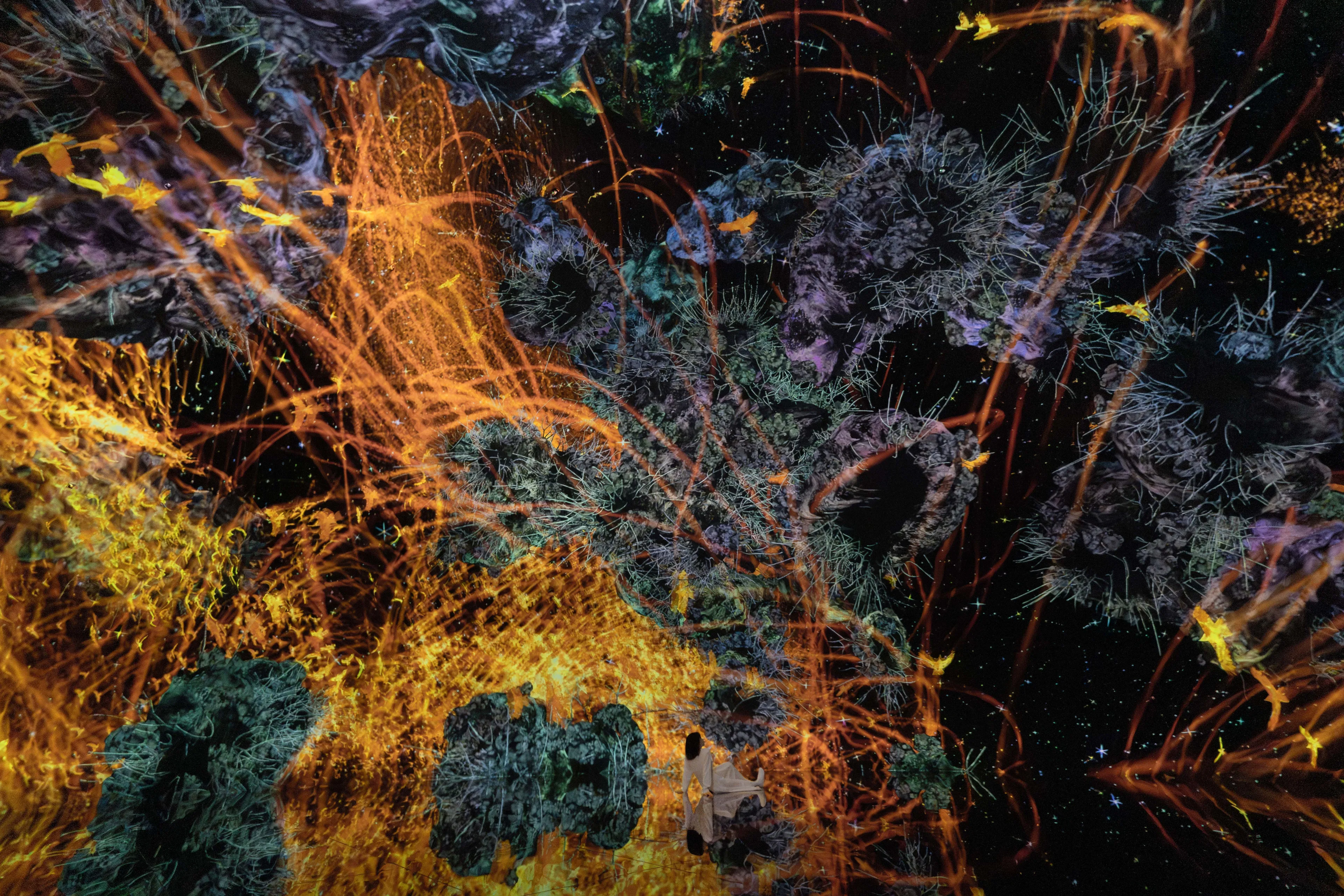 teamLab, 2025, from the series The Way of Birds - Seated Contemplation, 2017-, Installation, Sound: Hideaki Takahashi