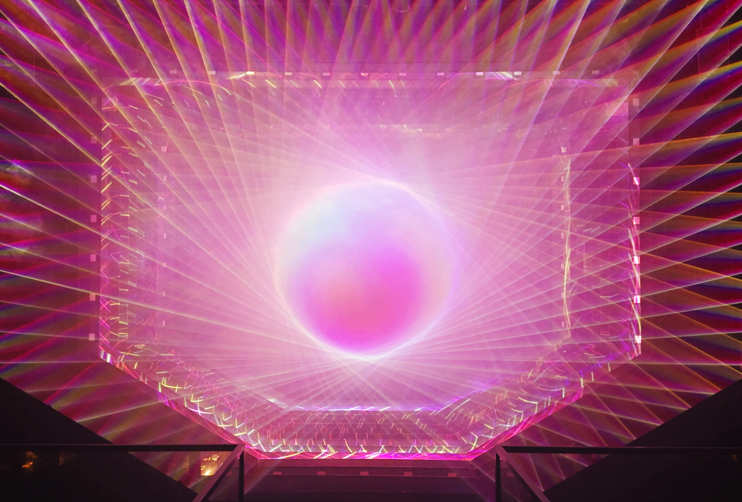 Light Sculpture - Flow is a sculpture composed of an order formed by a collection of light that flows continuously from the outside to the inside and from the inside to the outside.