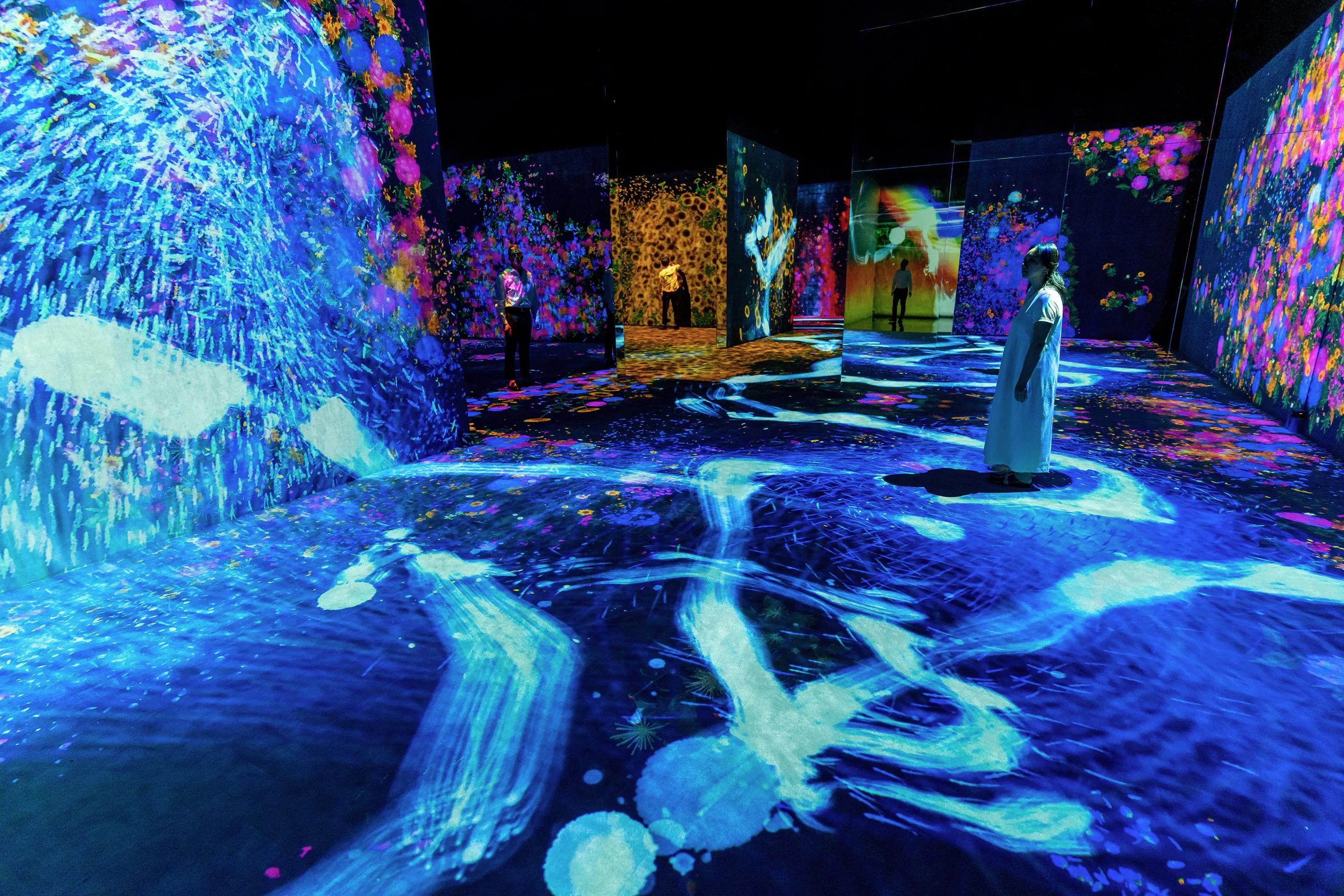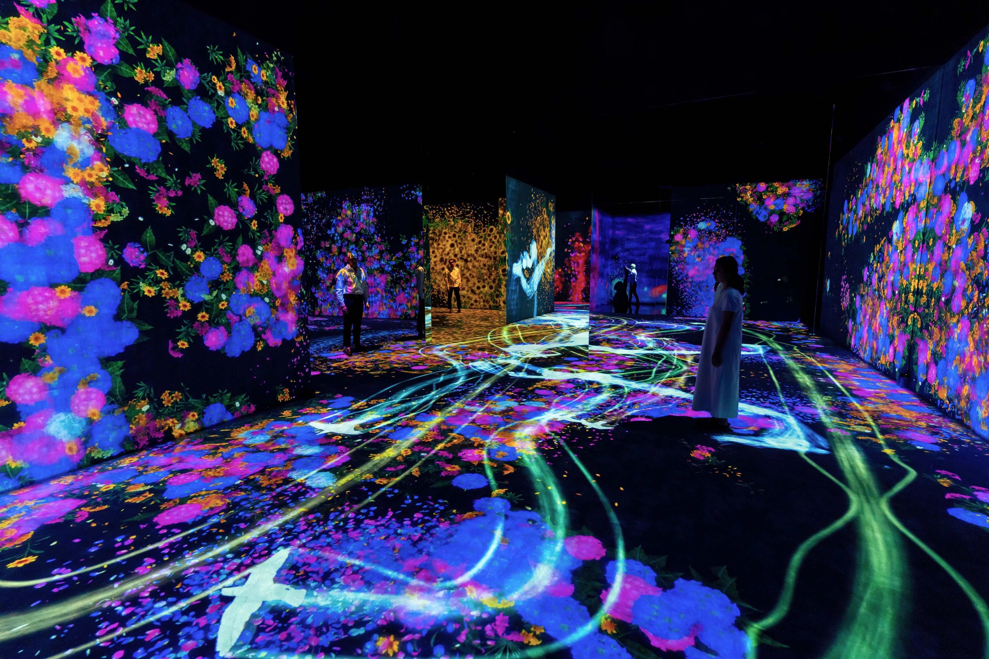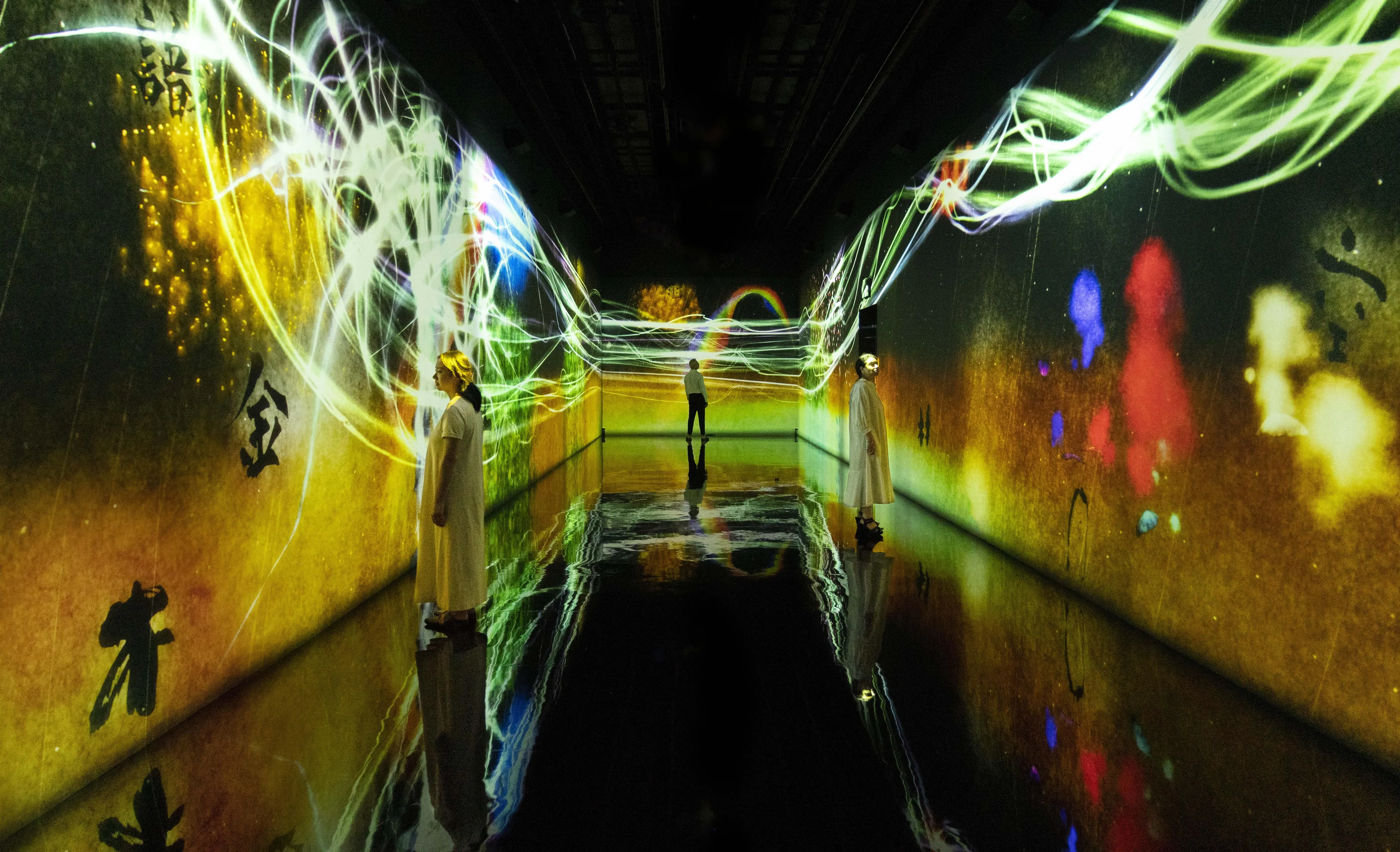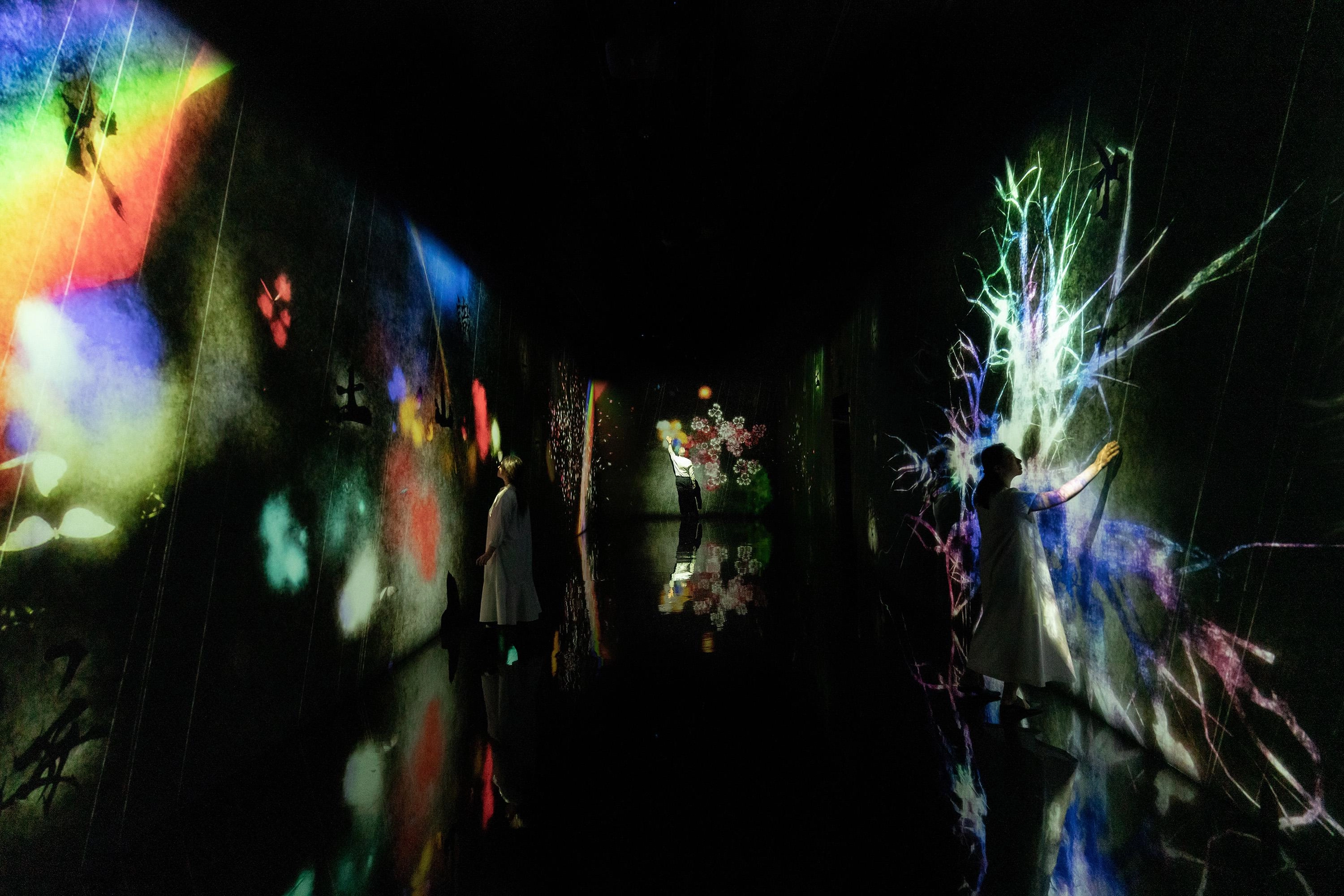"teamLab: Continuity" is a different approach to an art exhibition experience based on teamLab’s core concepts that the digital domain can expand art, and that within the digital domain, art can transcend both physical and conceptual boundaries. Instead of offering a selection of objects plucked from the world around us, presented in clusters or in sequence, it offers a world of dynamic artworks without distinct boundaries, and without a map. The interactive digital installations are neither a prerecorded animation nor on a loop—the work is rendered in real time. The interaction between the viewer and the installation causes continuous change in the artwork; previous visual states can never be replicated and will never reoccur. Artworks fly beyond borders, expand, influence, and sometimes intermingle with each other.