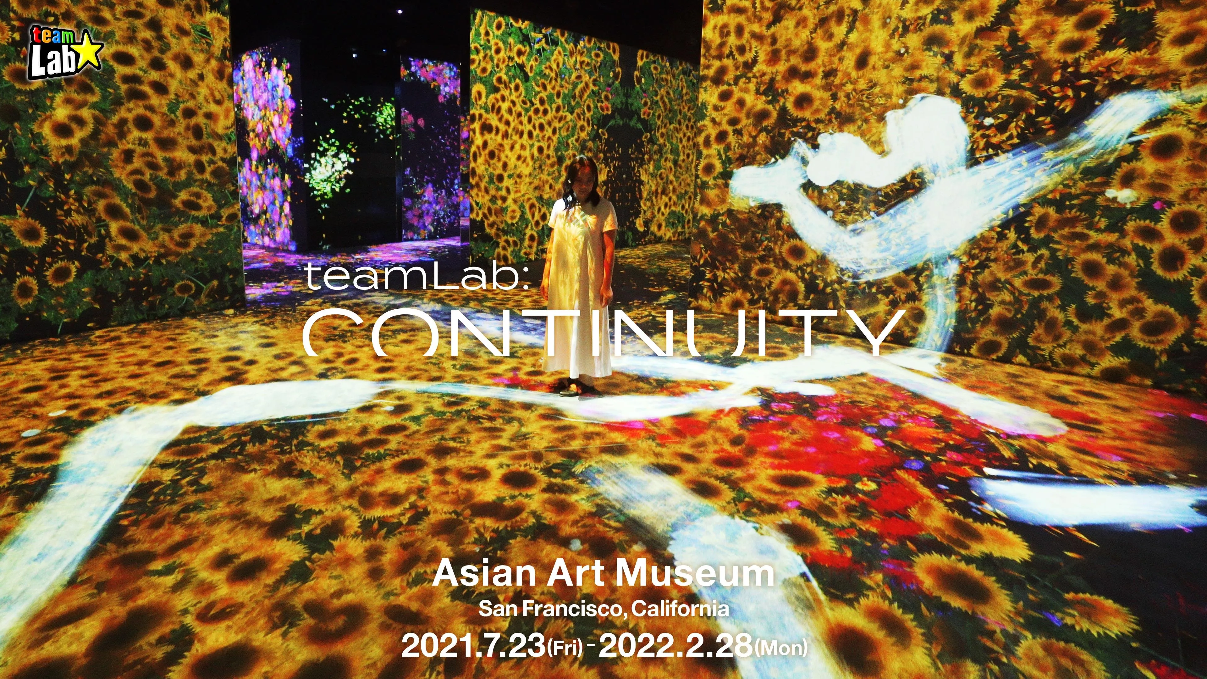 Contemporary museums often require visitors to balance their interest in attending the special event that is the temporary art exhibition, a fundamentally social event shared by both friends and strangers, with the desire to contemplate and examine art as a personal, if not solitary, experience. In "teamLab: Continuity", immersive works of art react to each other and to the people in the space, making the presence of others a fundamental and positive part of the experience. Explore with intention, discover, and create a new world with others.