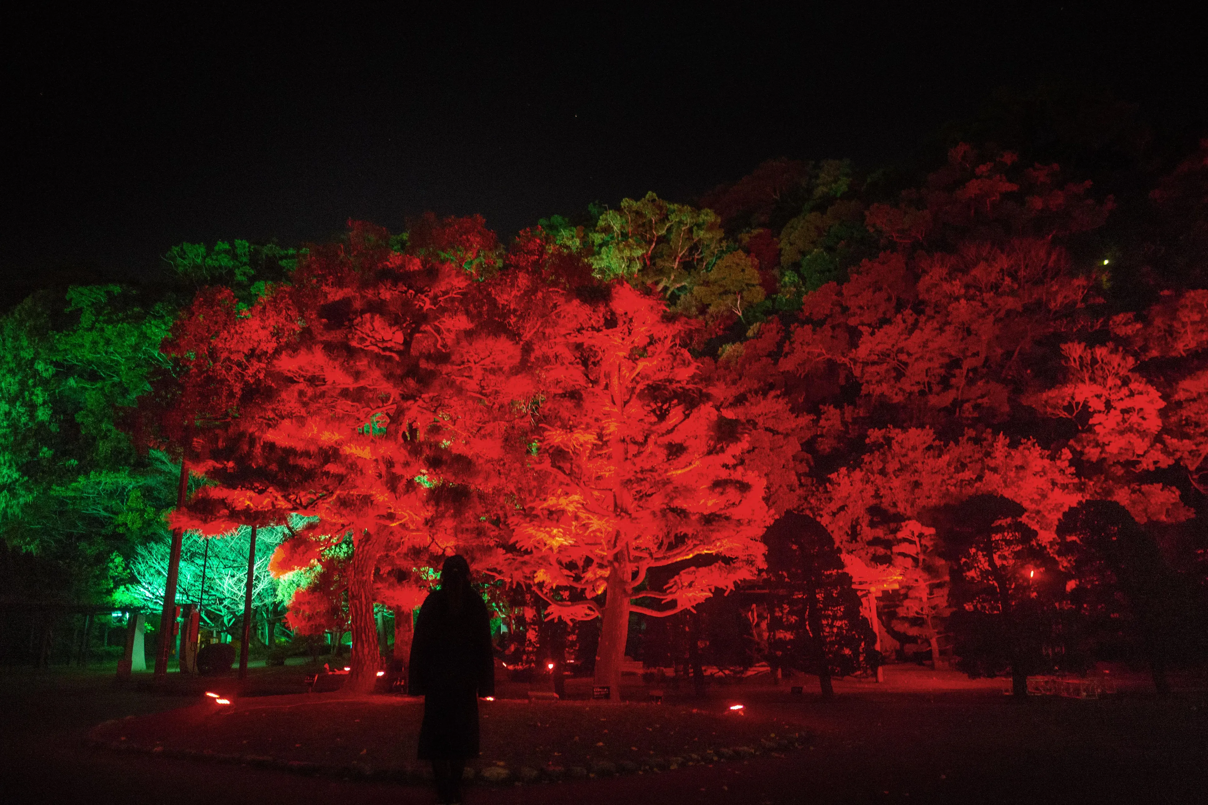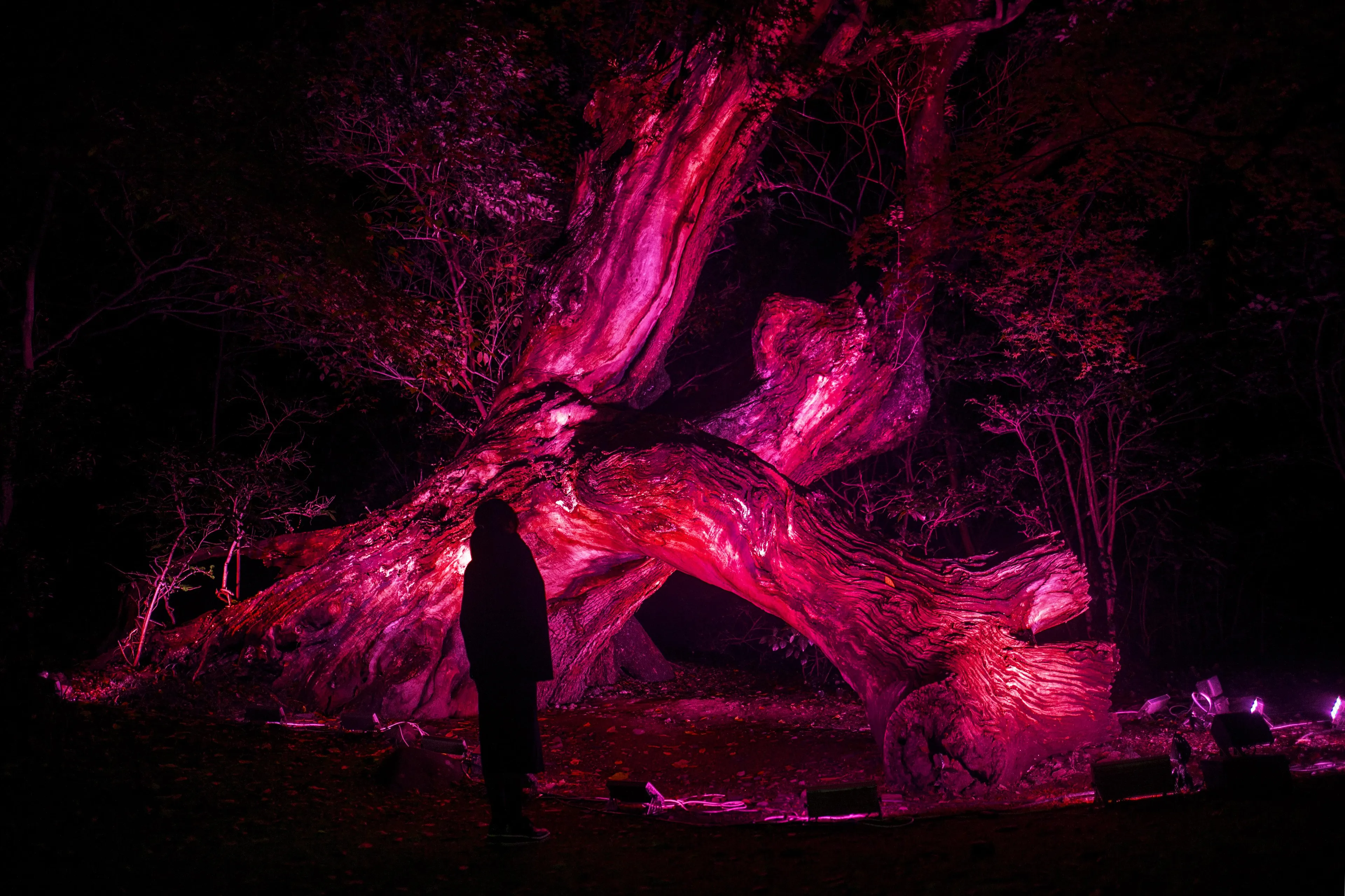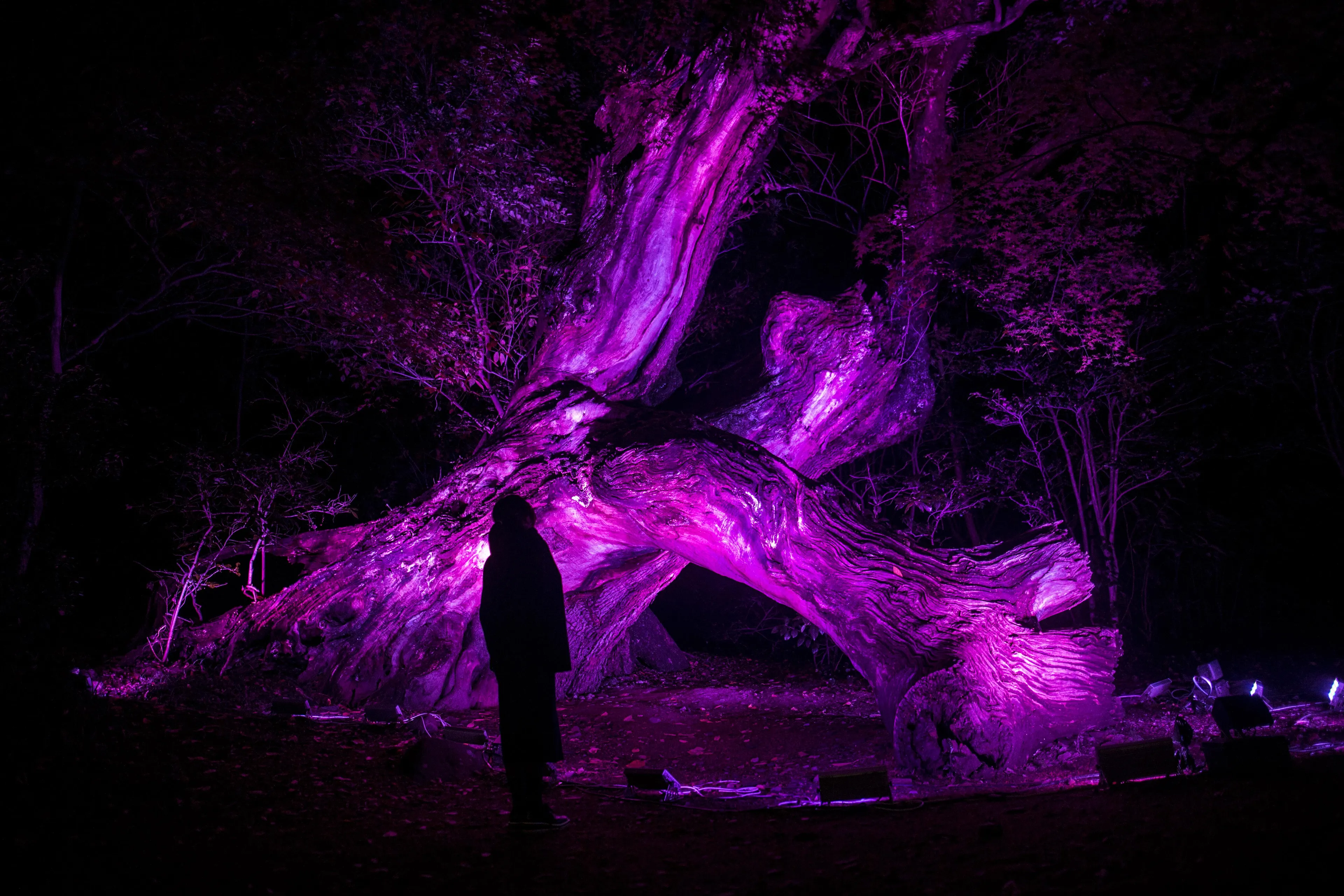 Taking advantage of Tokushima City's natural beauty, we use light, sound, and digital technology, to transform the river and the forest in the center of the city into a digital art space that changes according to the existence of people.