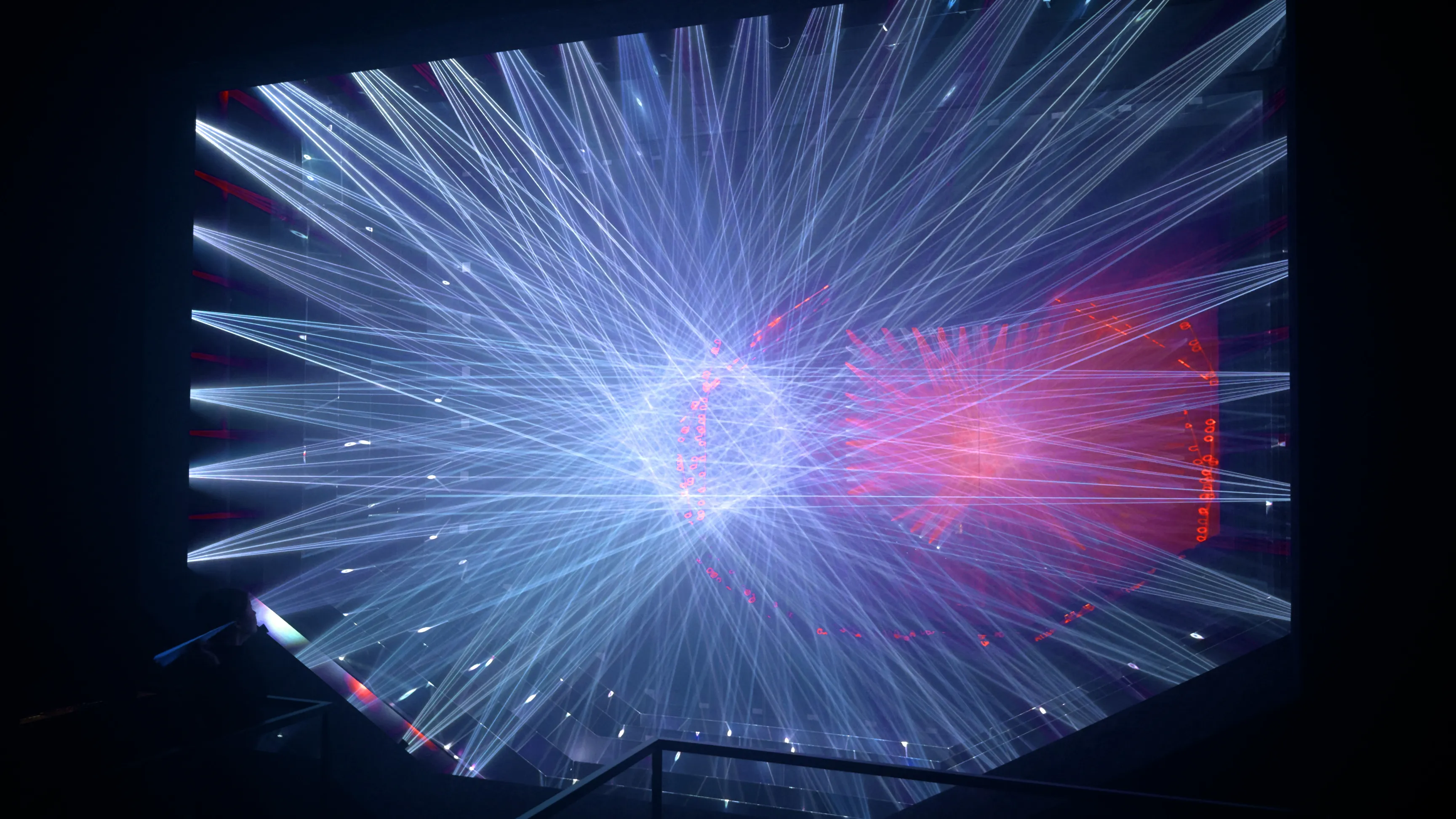 This Light Sculpture exists differently, in an asymmetrical form, both in the real space and in the mirrored world.