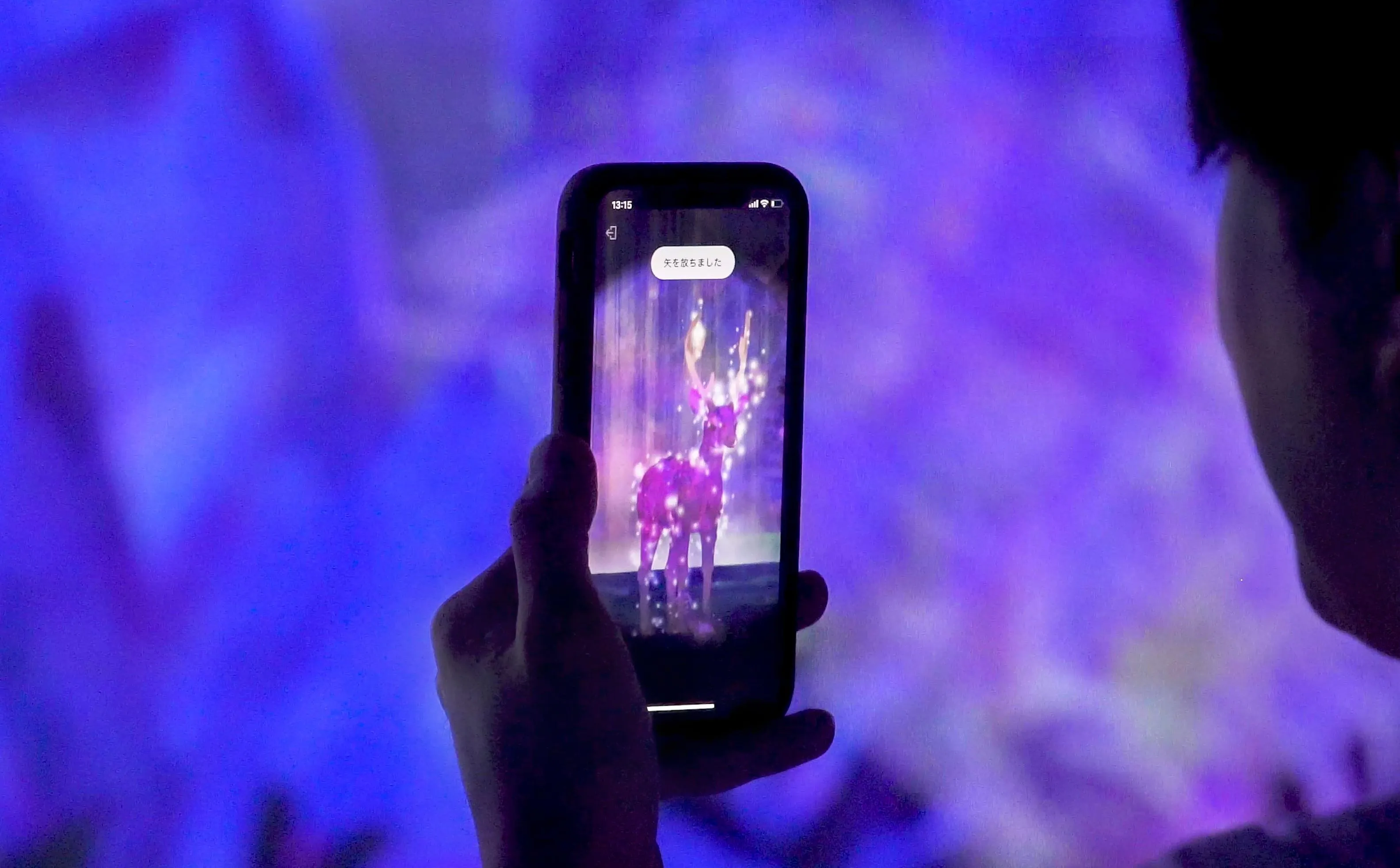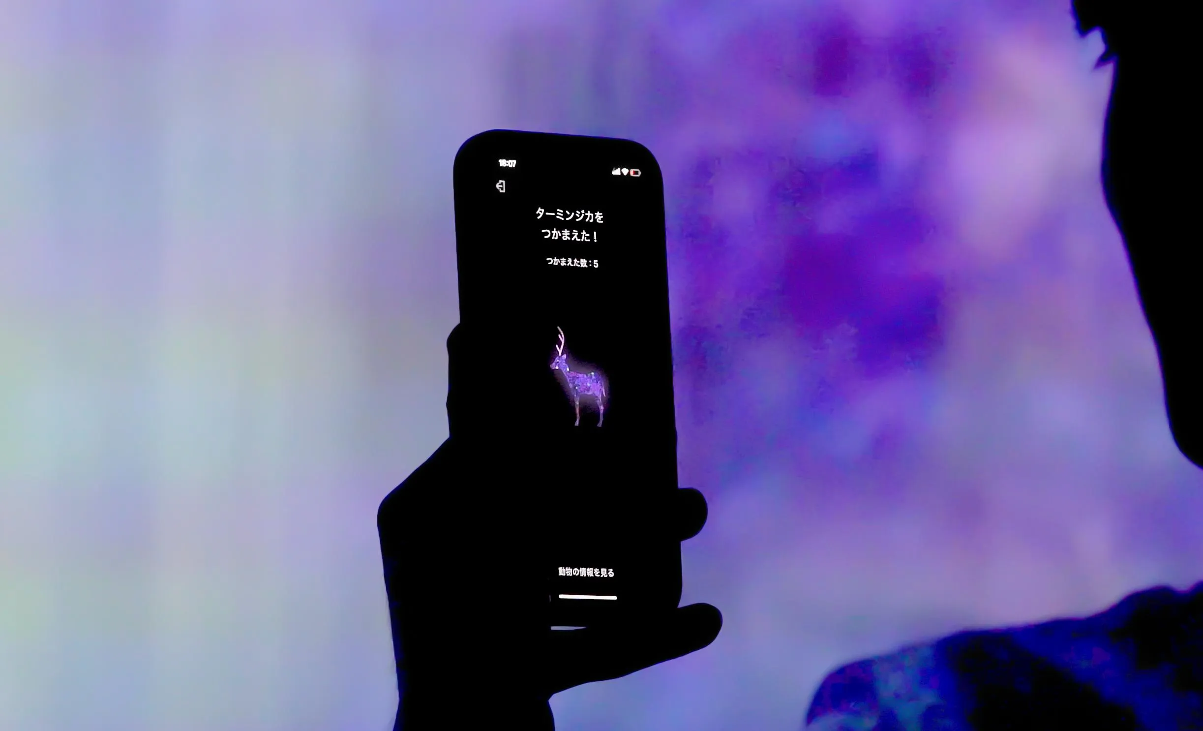 When you use your smartphone's camera to look at an animal moving in the space and release a Research Eye at the animal in the camera’s view, the eye flies out from your phone into the real space. When the Research Eye reaches the animal, it disappears from the space and is added to your smartphone’s collection. Information about the animals you catch will be stored in the app's collection book.
